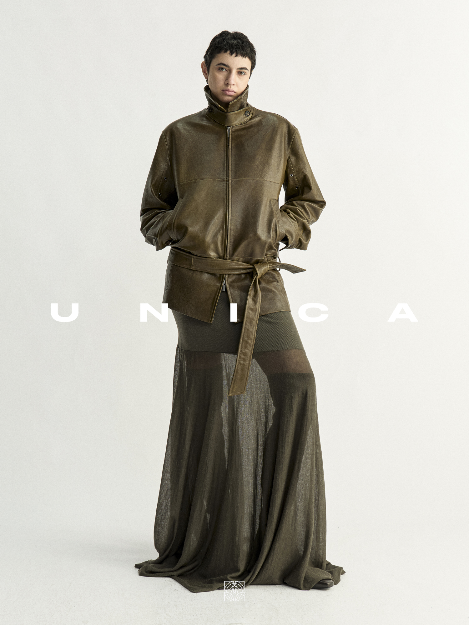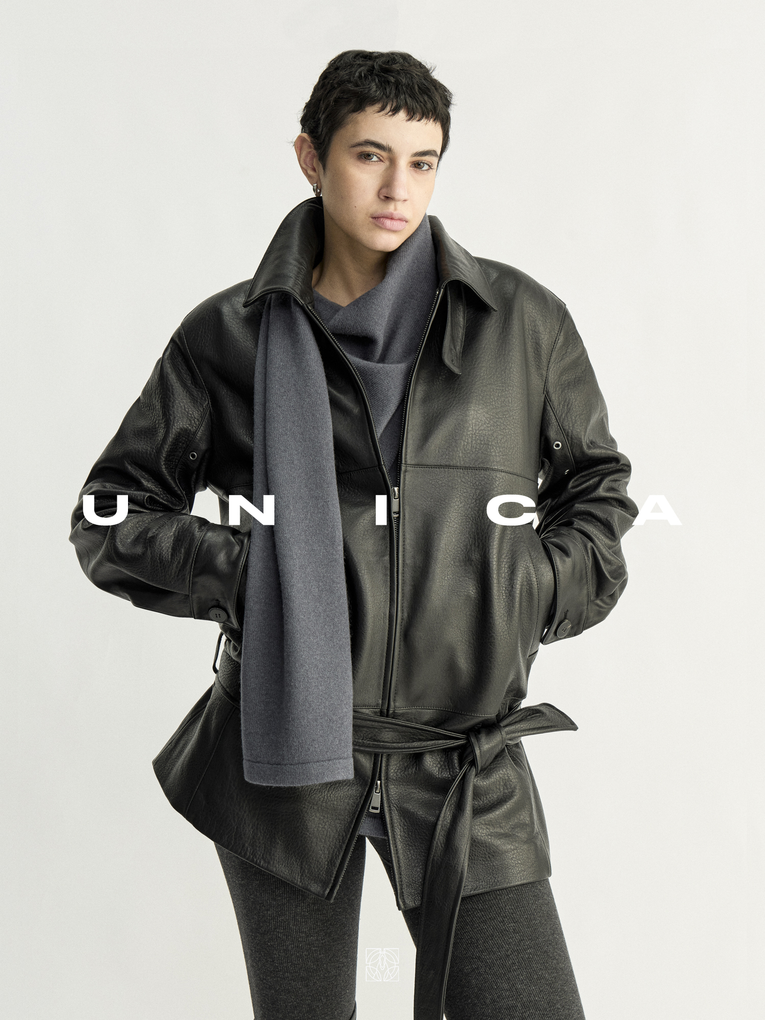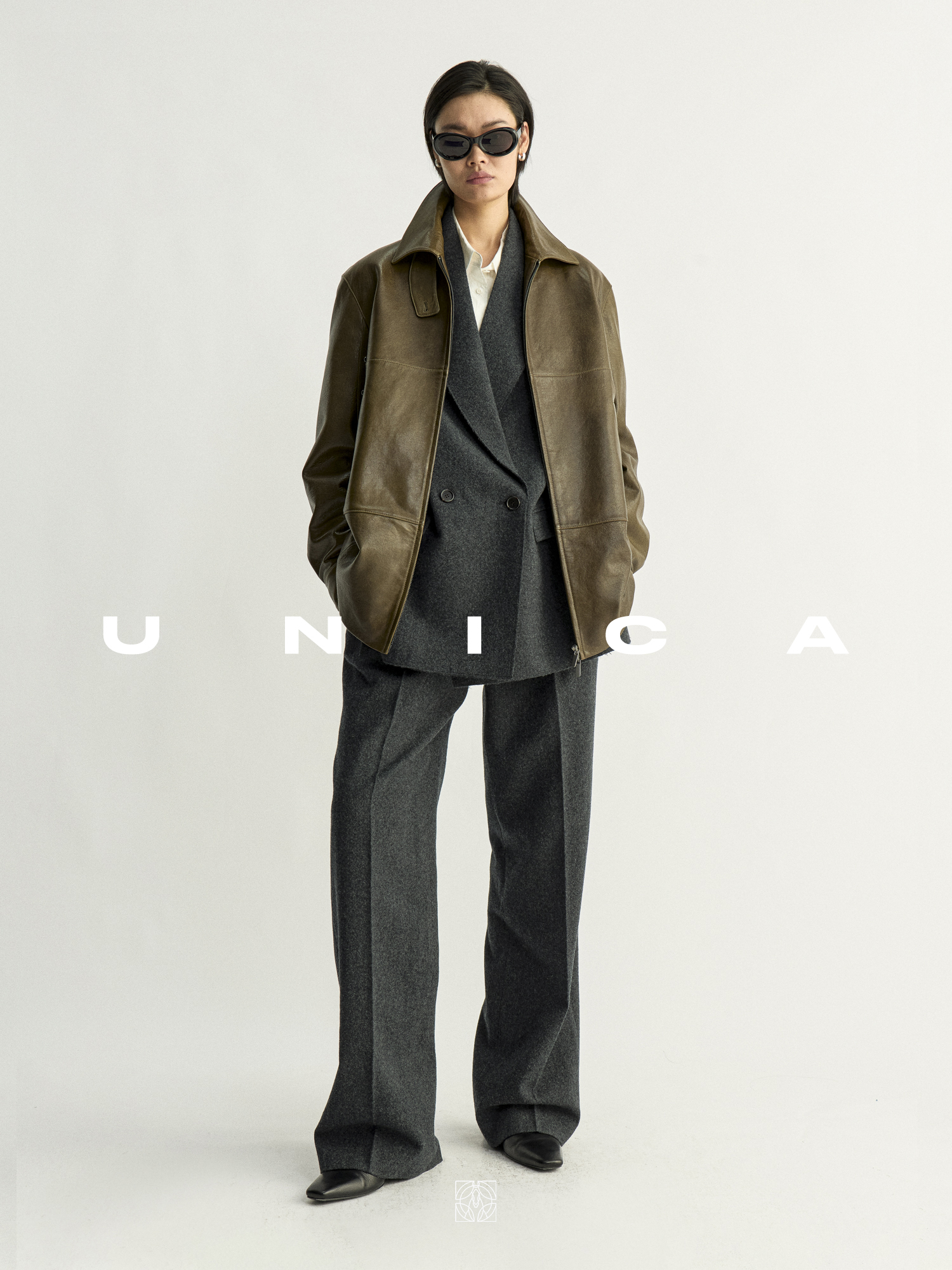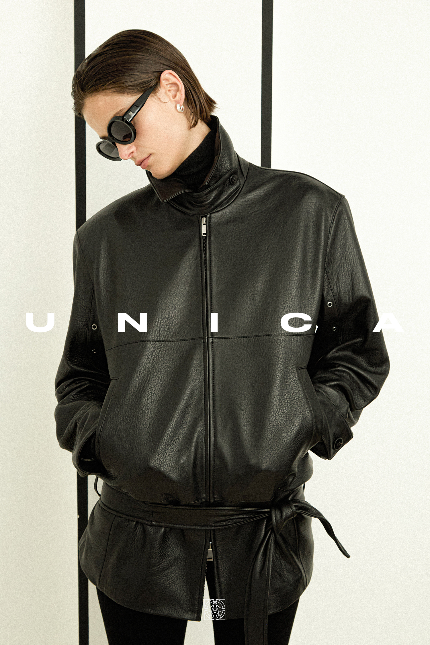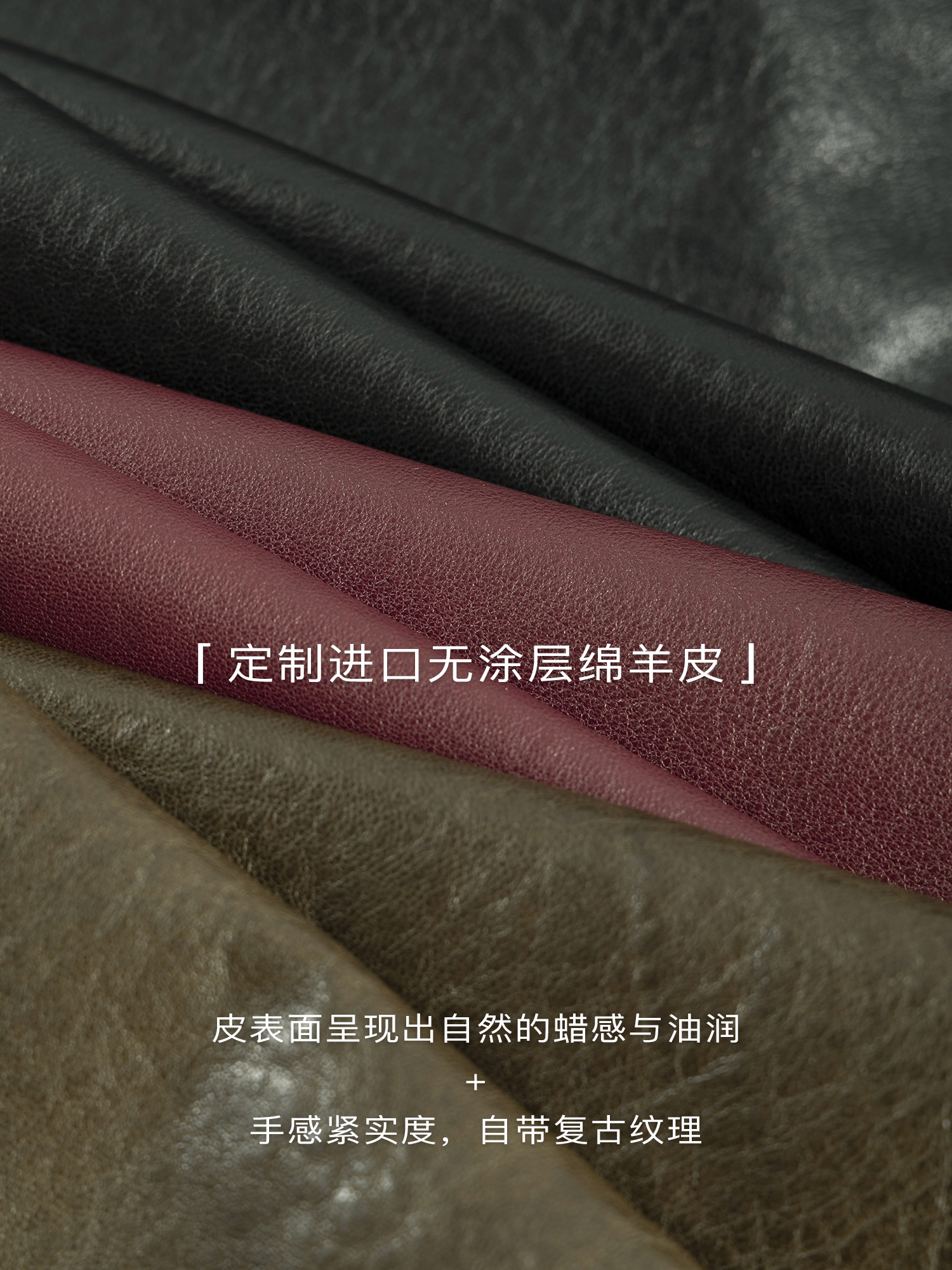 Unica/Ys*L Retro Wide-Shoulder Two-Way Collar Low-Waist Belt European Imported Uncoated Leather Jacket