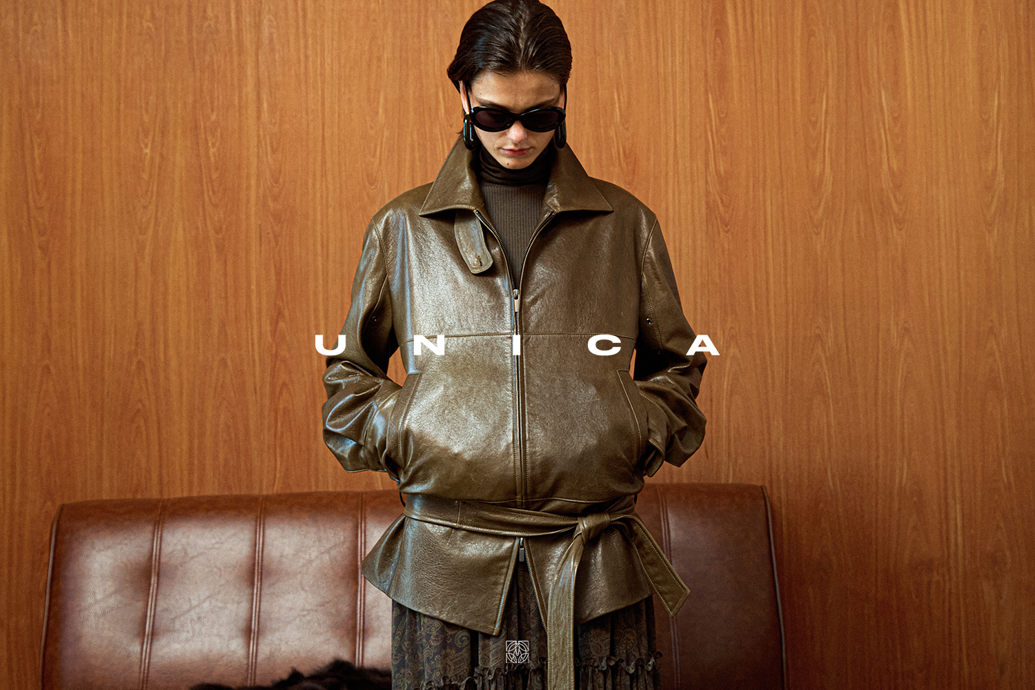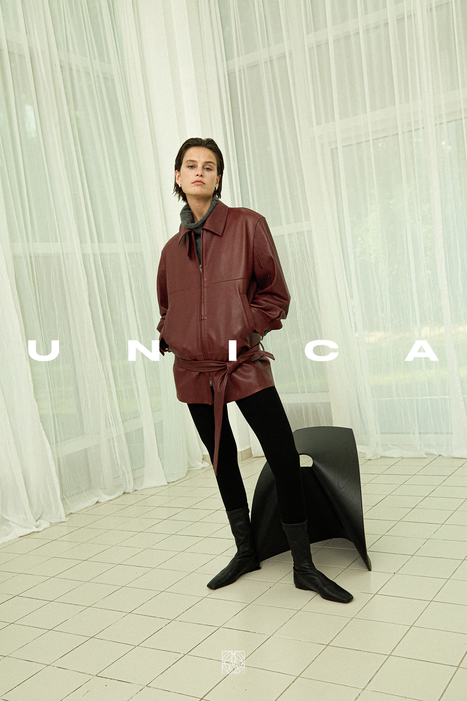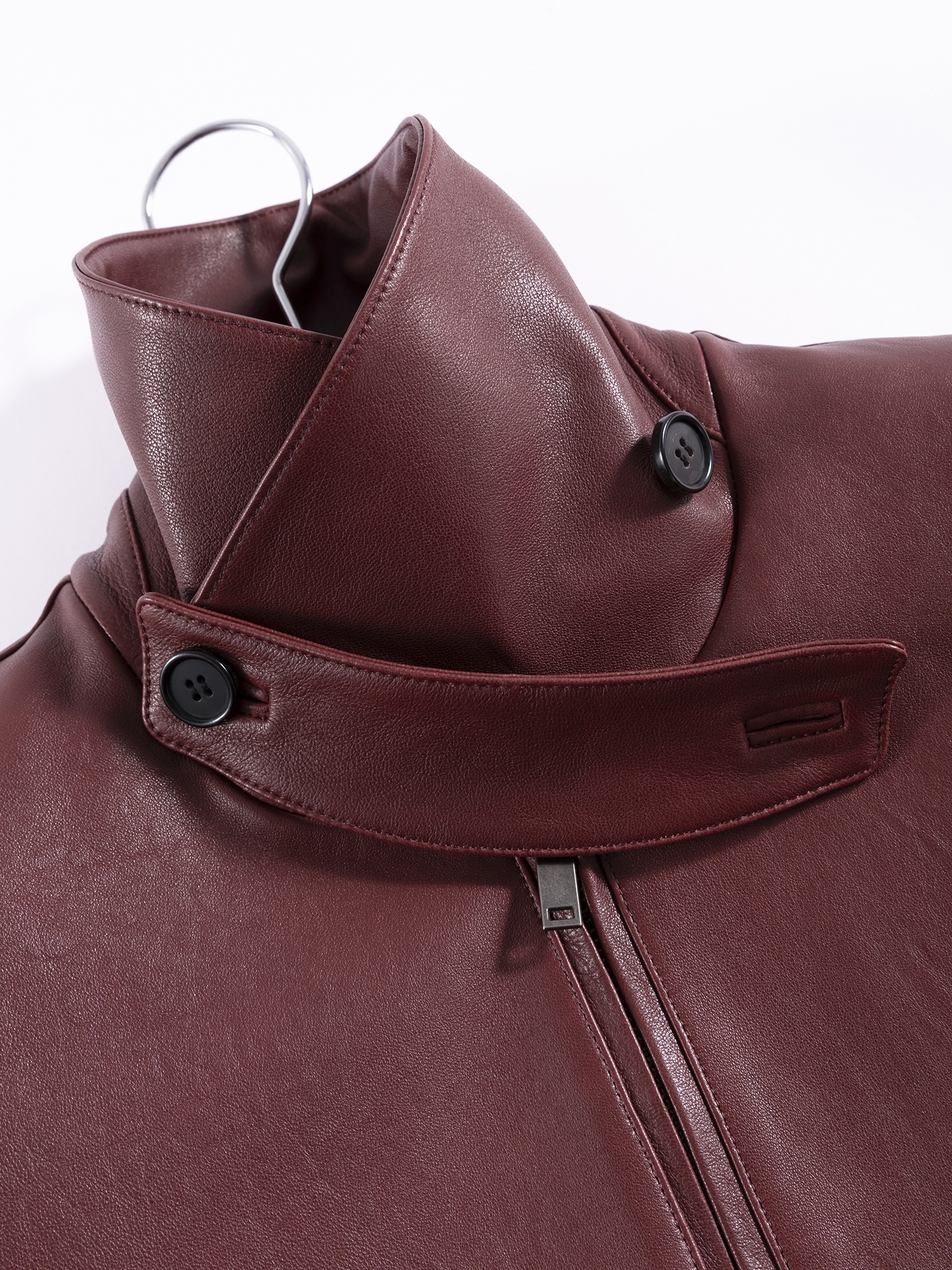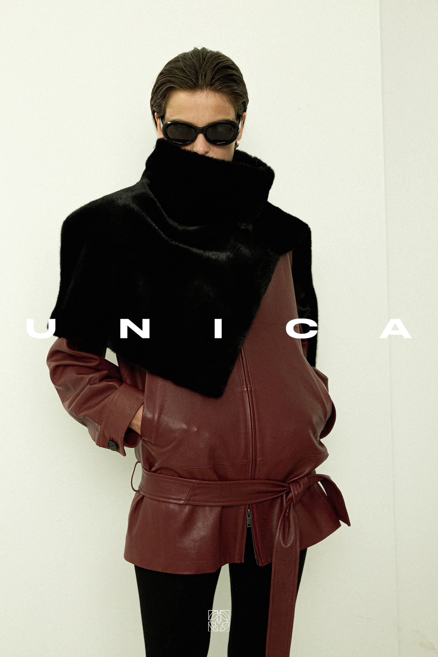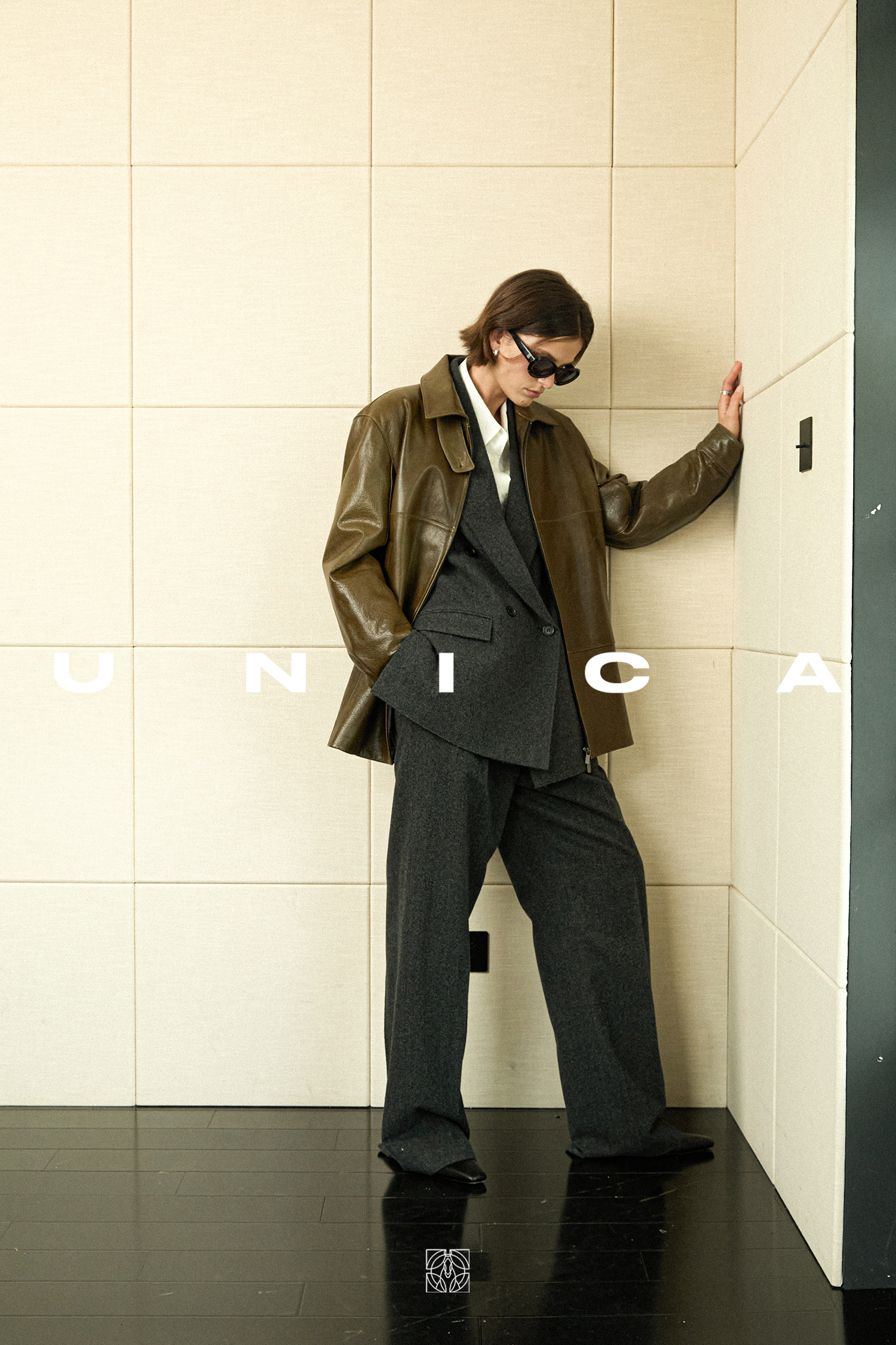 Unica/Ys*L Retro Wide-Shoulder Two-Way Collar Low-Waist Belt European Imported Uncoated Leather Jacket