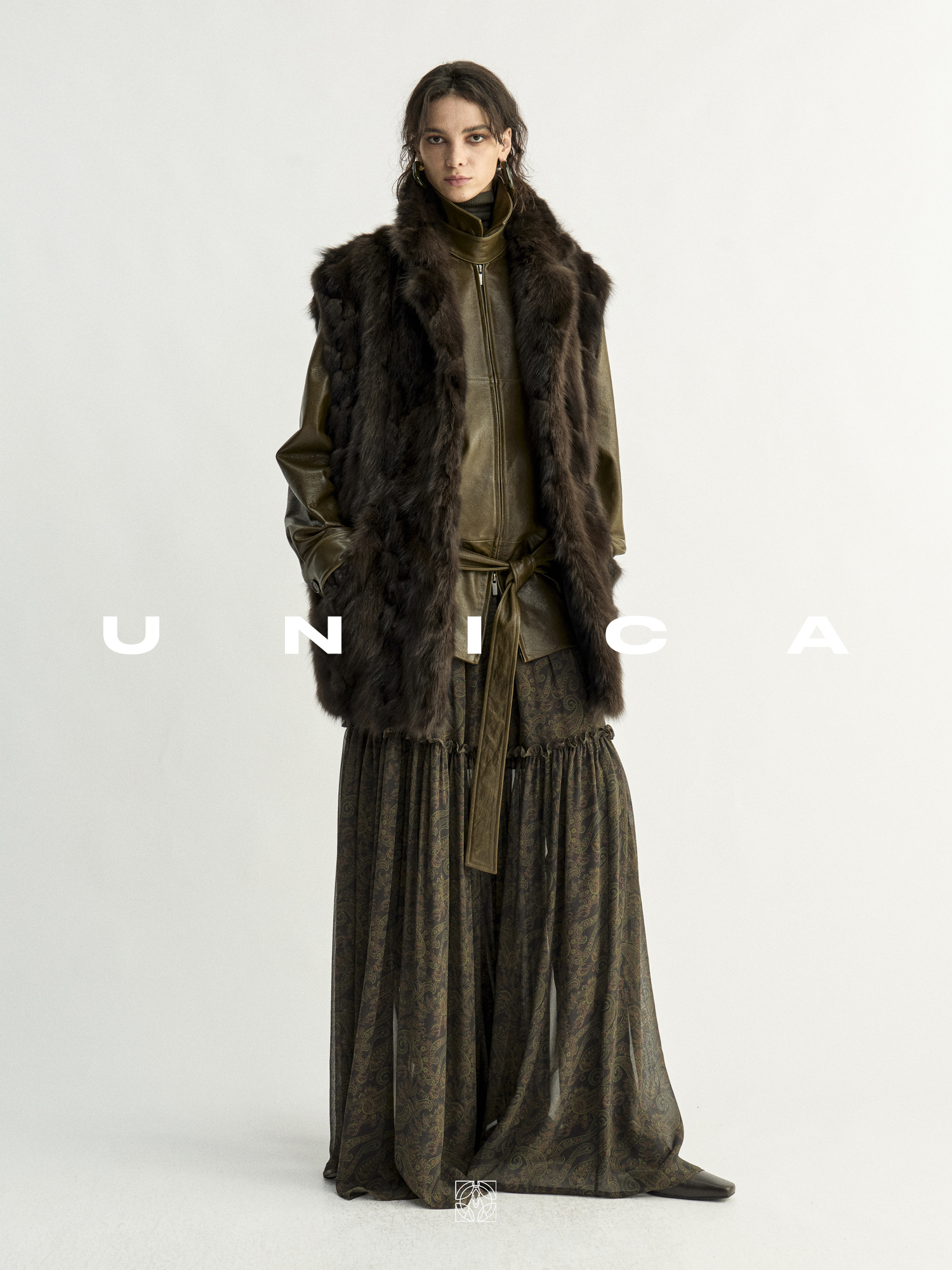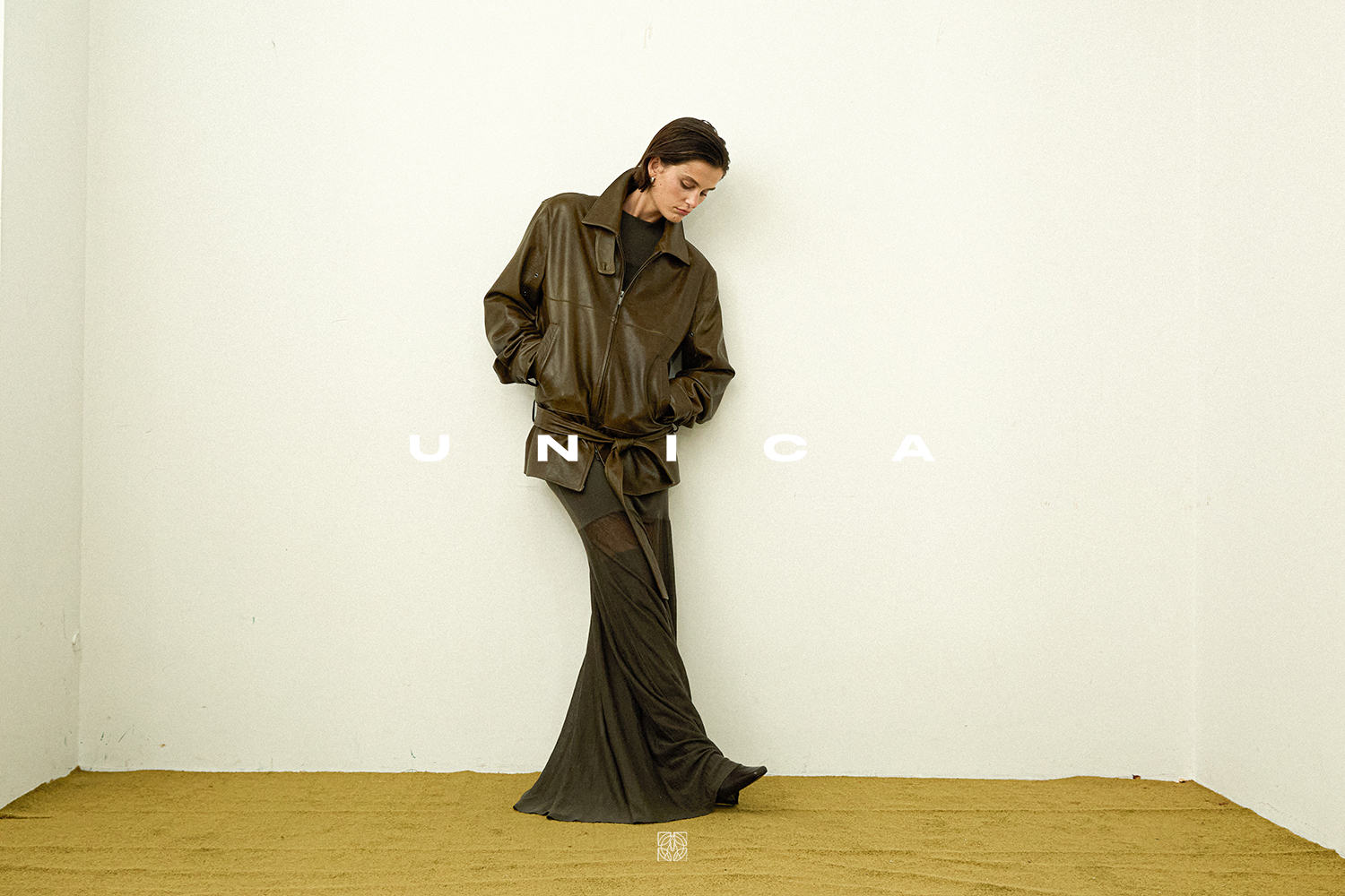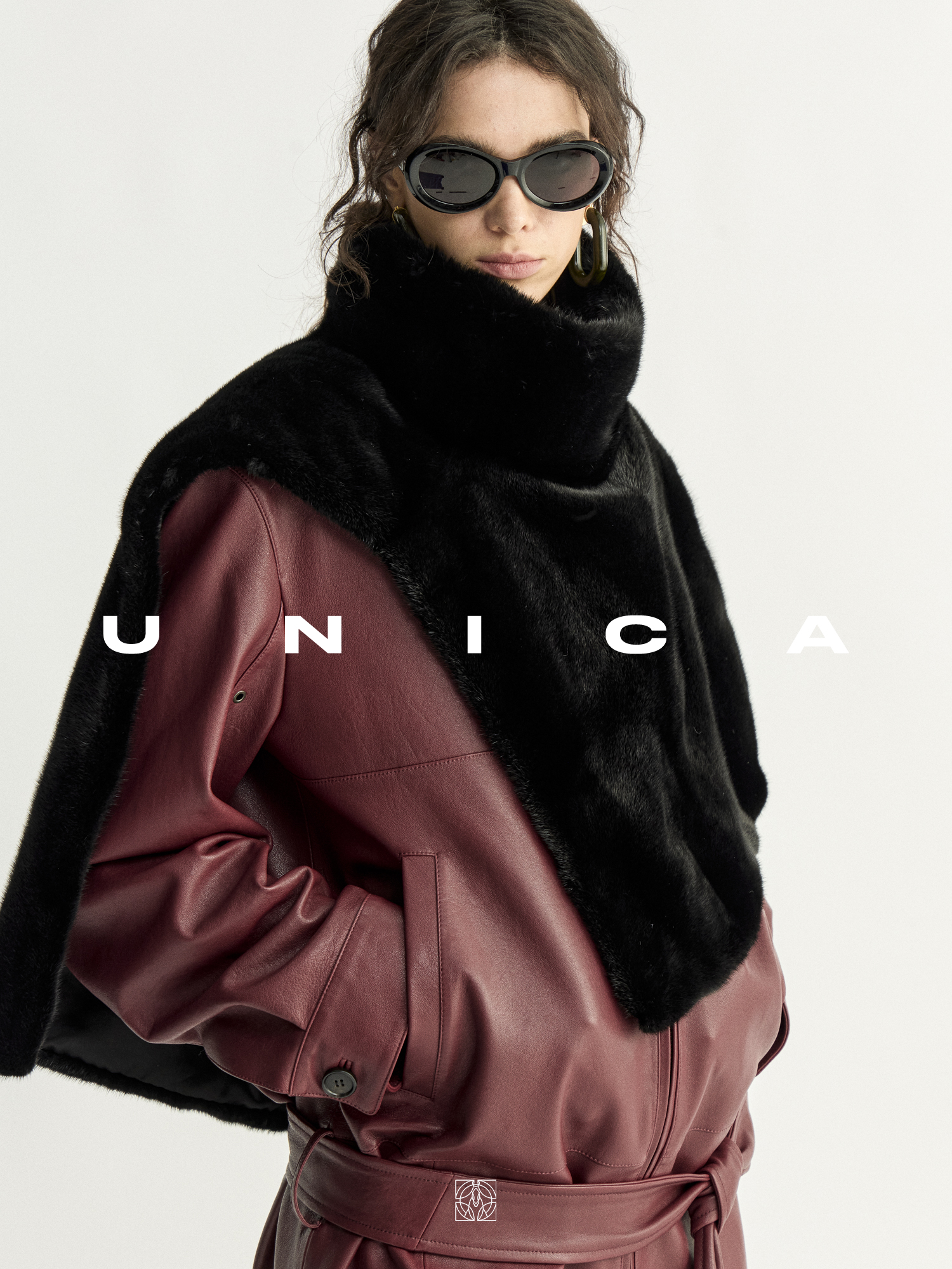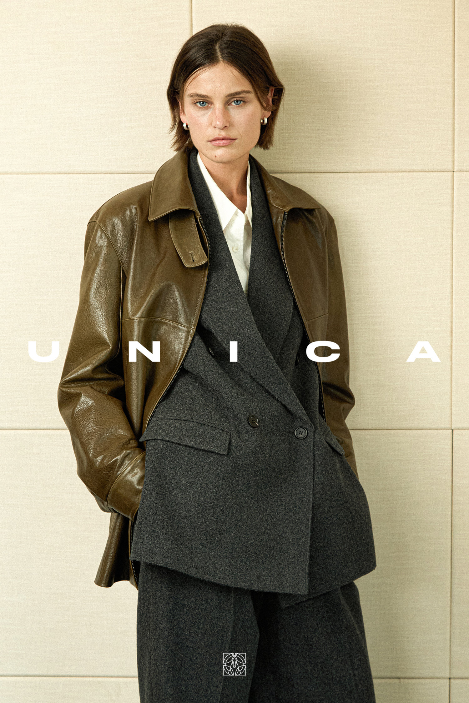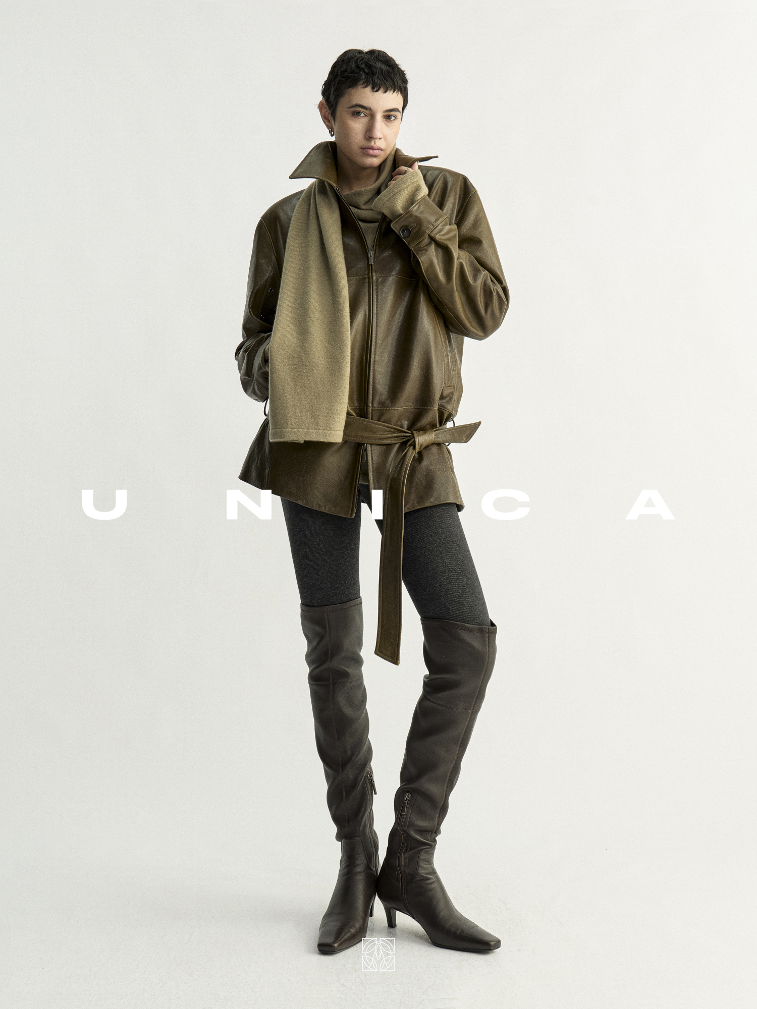 Unica/Ys*L Retro Wide-Shoulder Two-Way Collar Low-Waist Belt European Imported Uncoated Leather Jacket