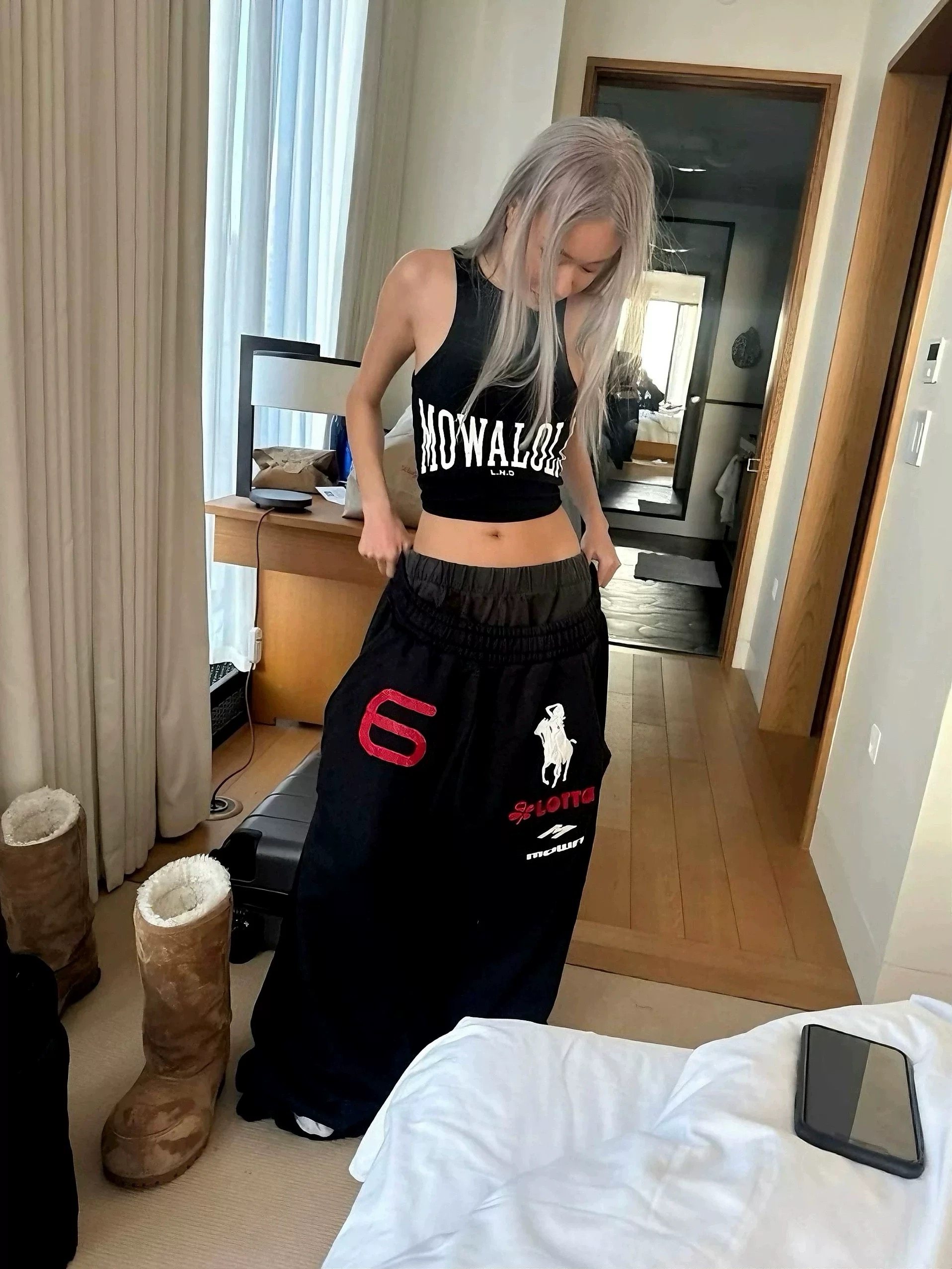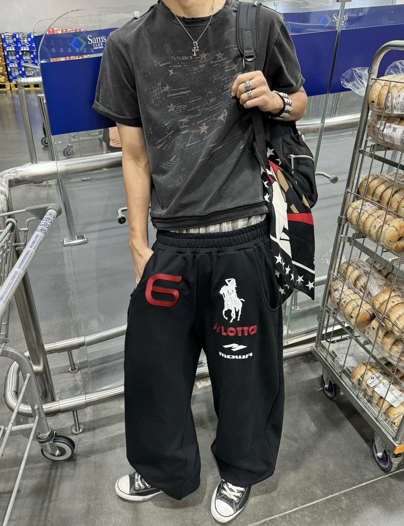 Mowalola Angel War Horse Embroidered Heavyweight American Style Wide-Leg Pants Baggy Unisex Loose Casual Sports Sweatpants