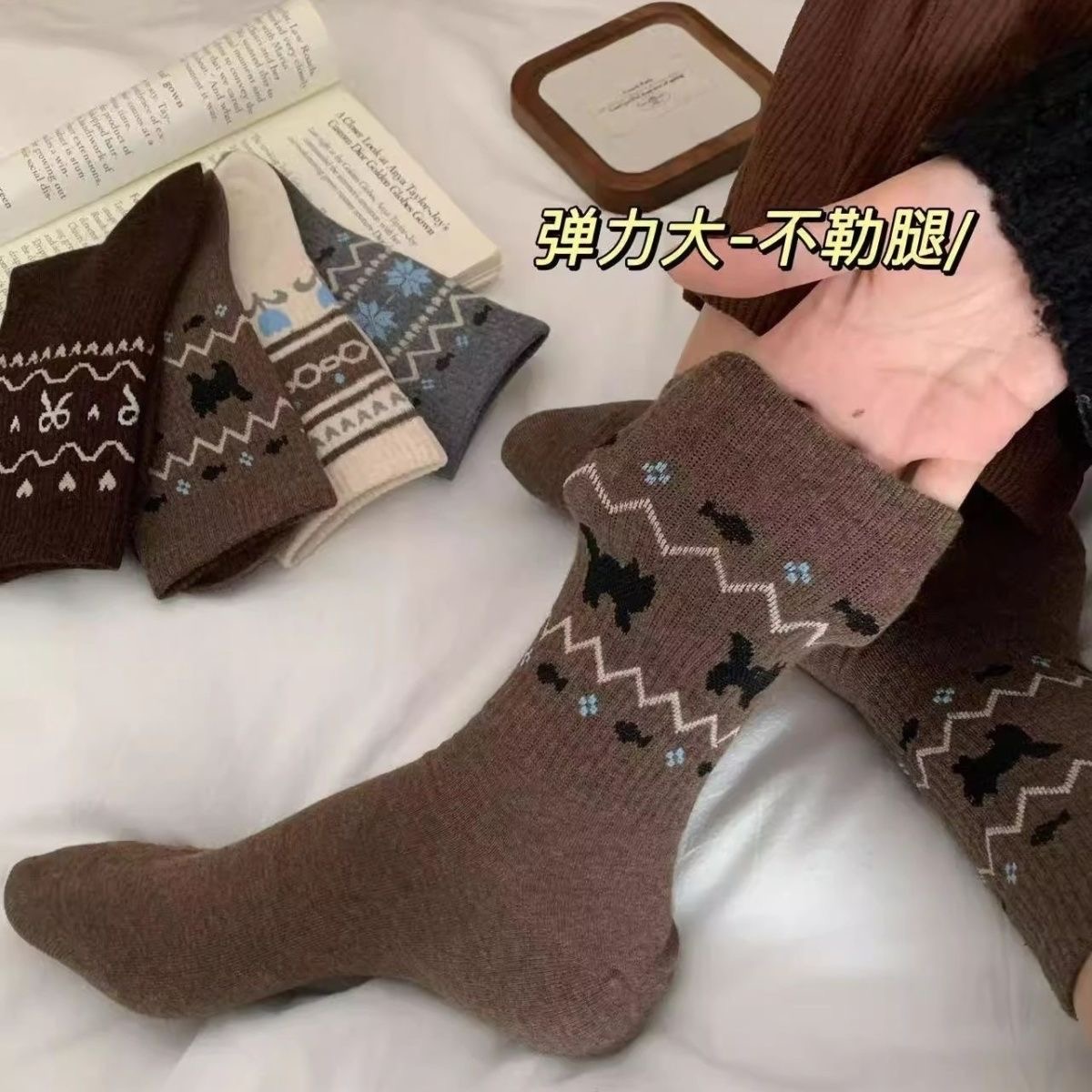 Women's Fair Isle Socks, Mid-Calf, Cute, Warm, Retro, Japanese Style, ins Christmas Trendy Long Socks, Hot Item