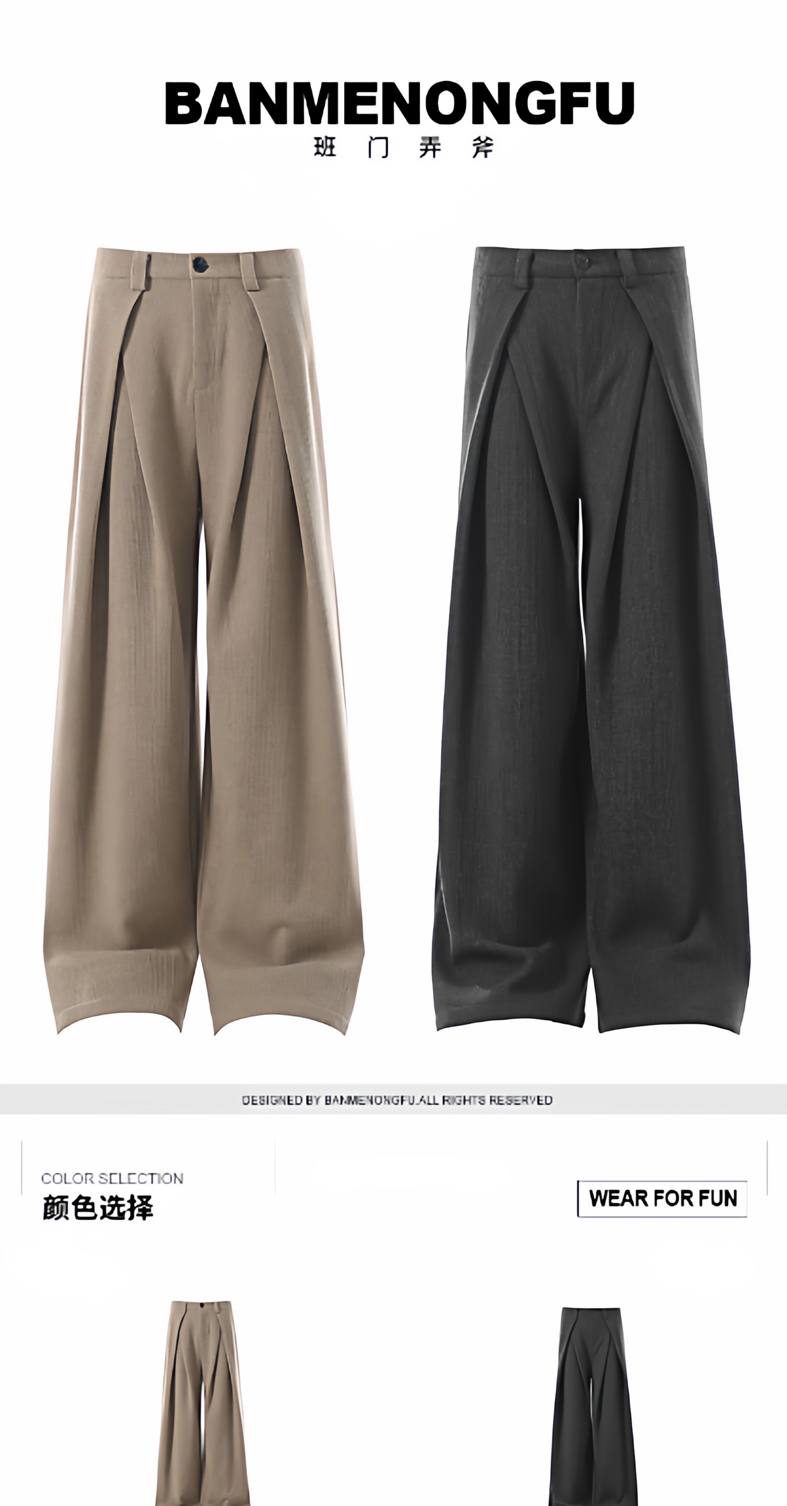 Bmnf (Brave Man in a Fool's Paradise) Autumn/Winter Old Money Style Thick Wool Pleated A-Line Wide-Leg Slightly Flared Casual Trousers/Casual Pants