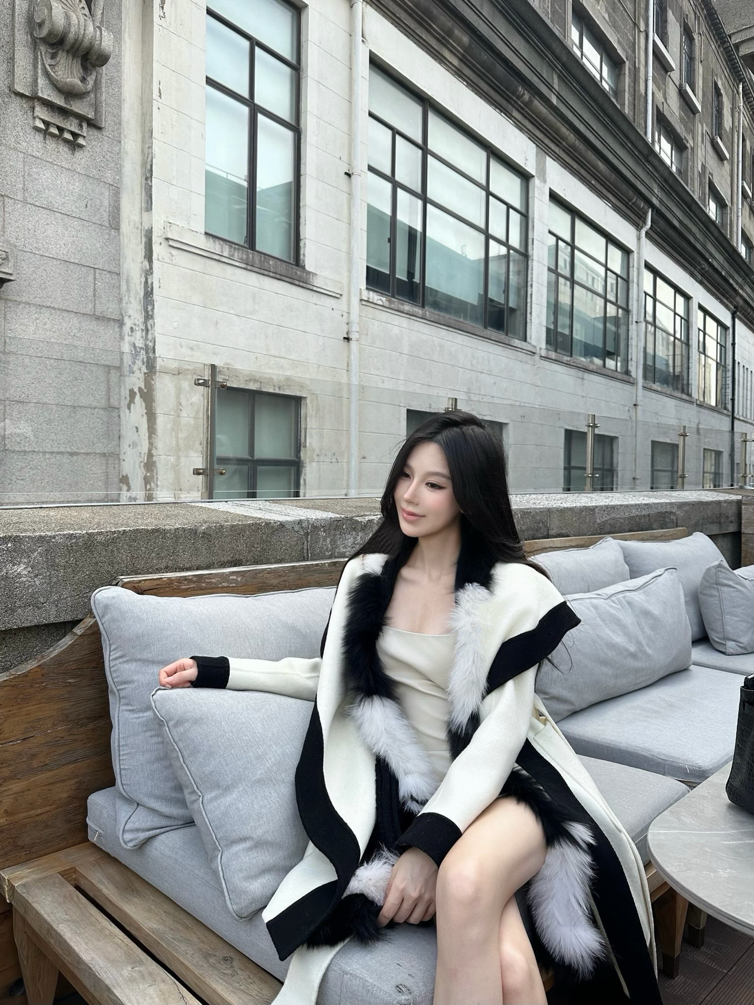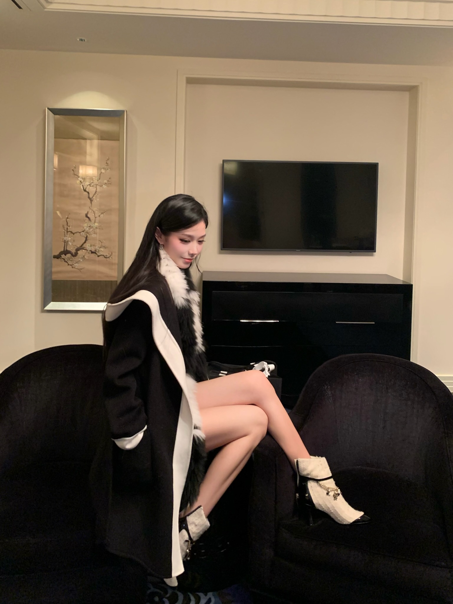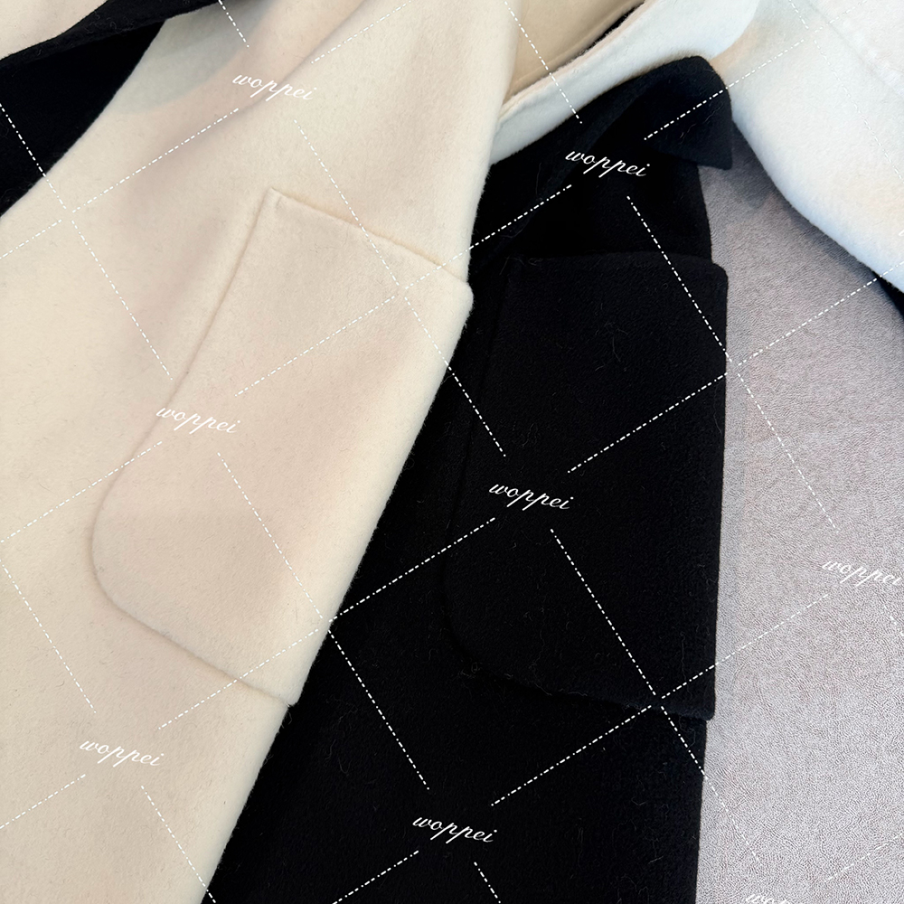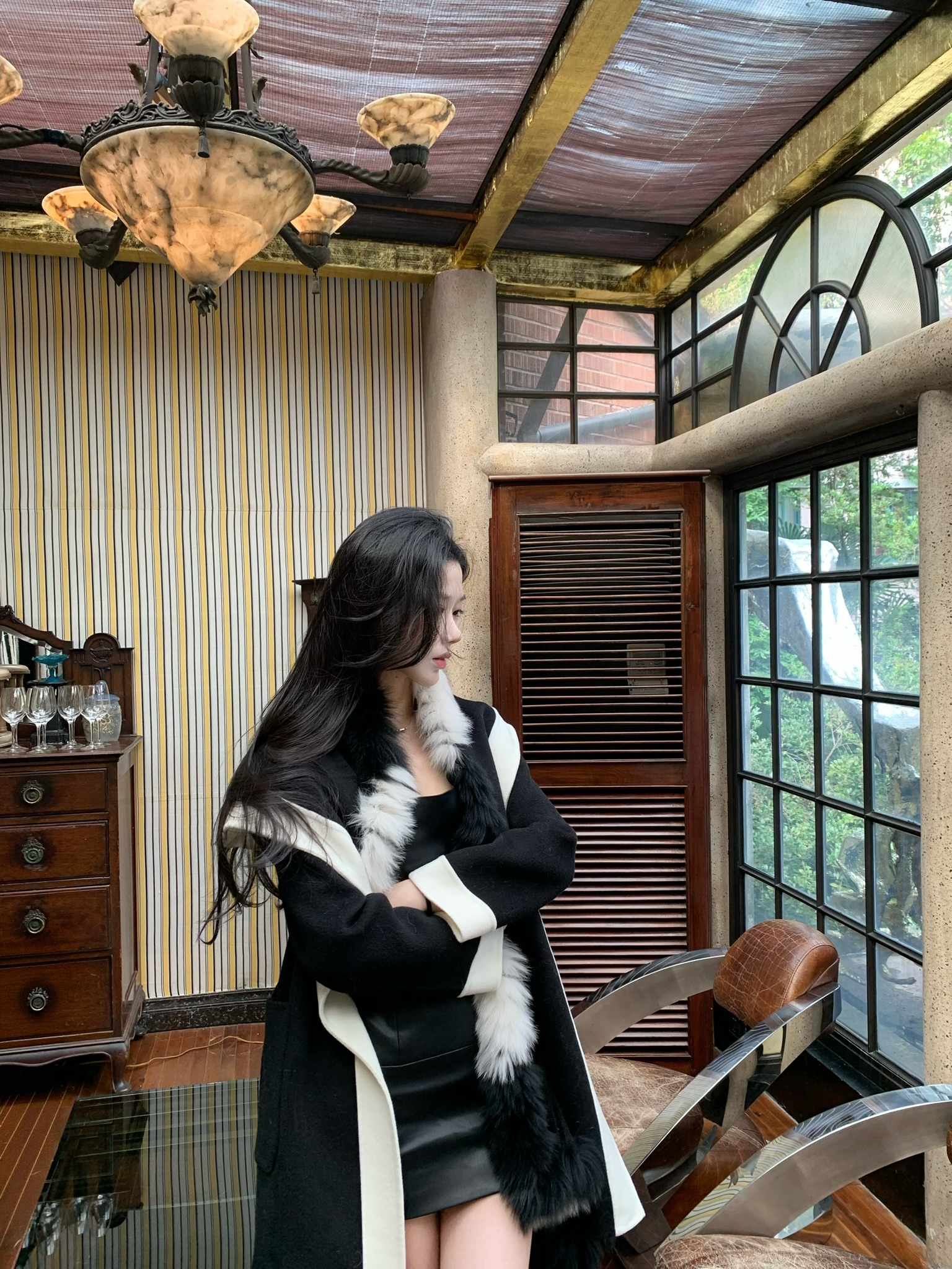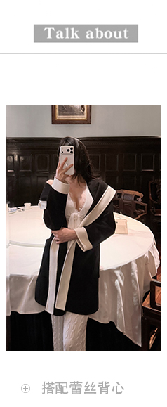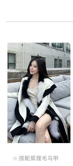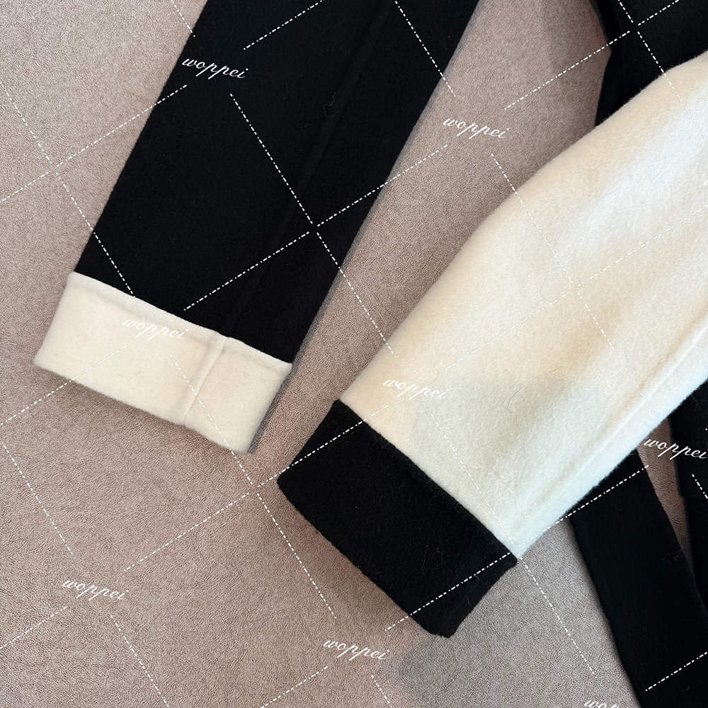 经典的黑白色拼色设计是这款大衣的的一个亮点所在