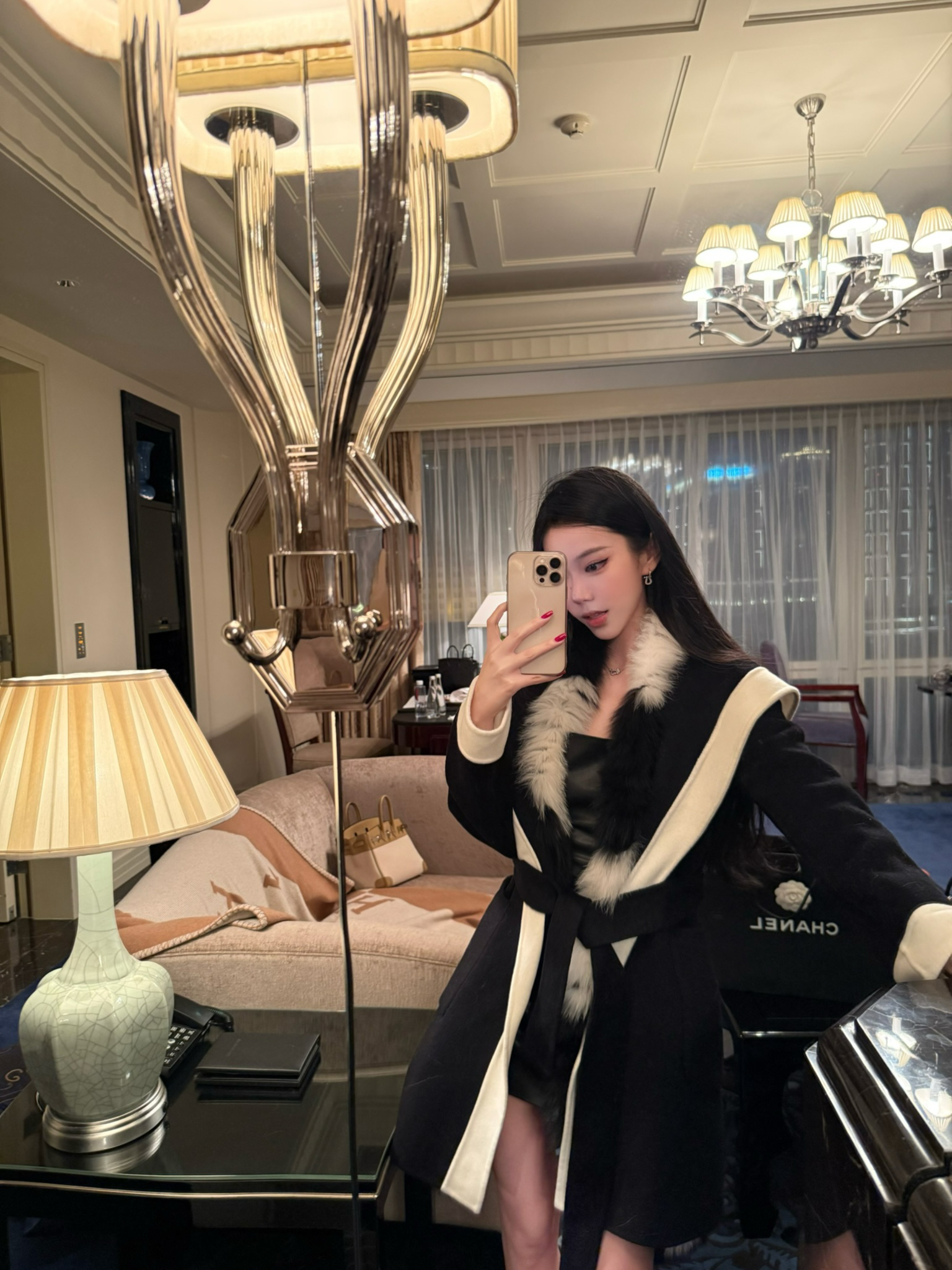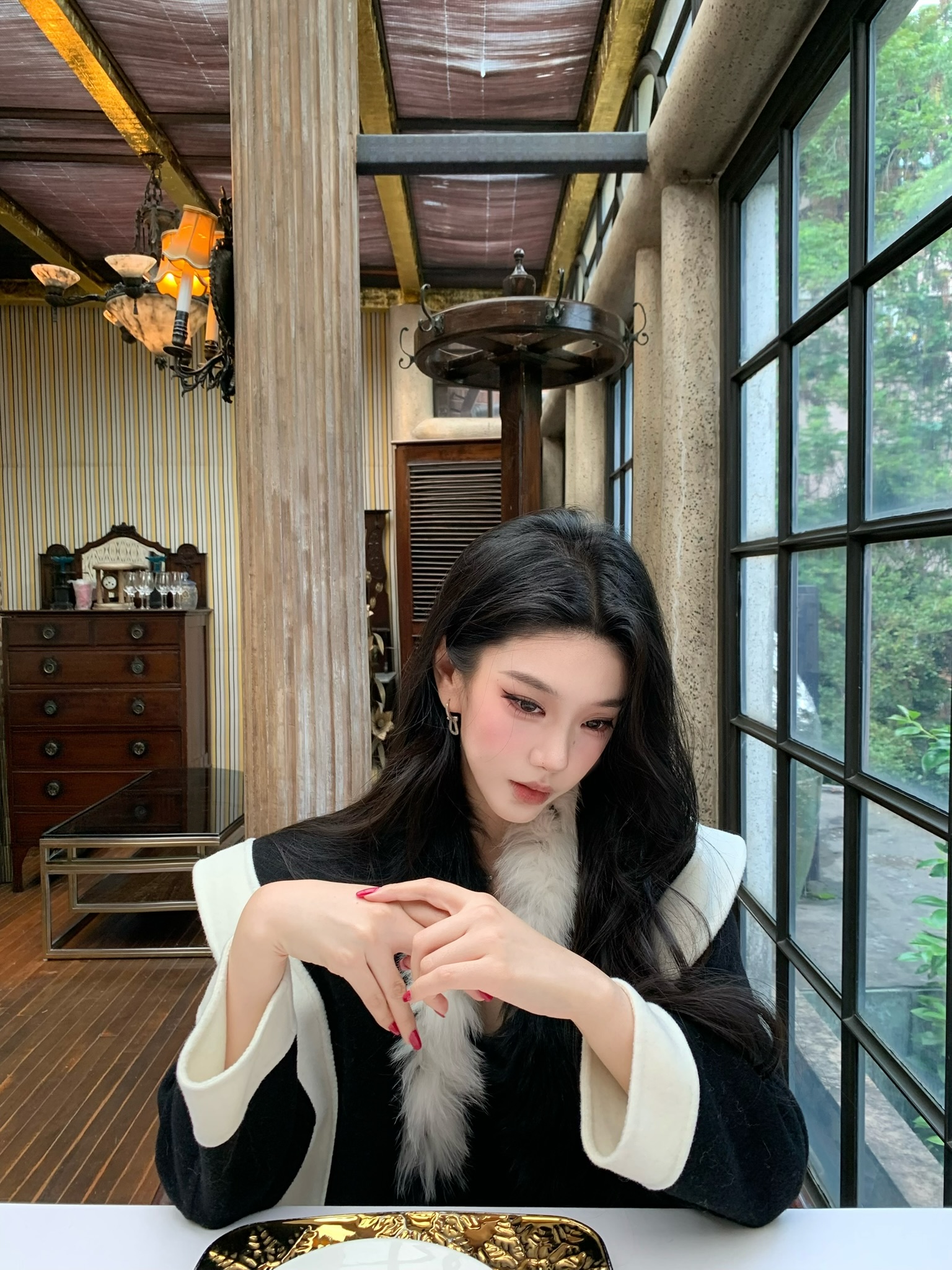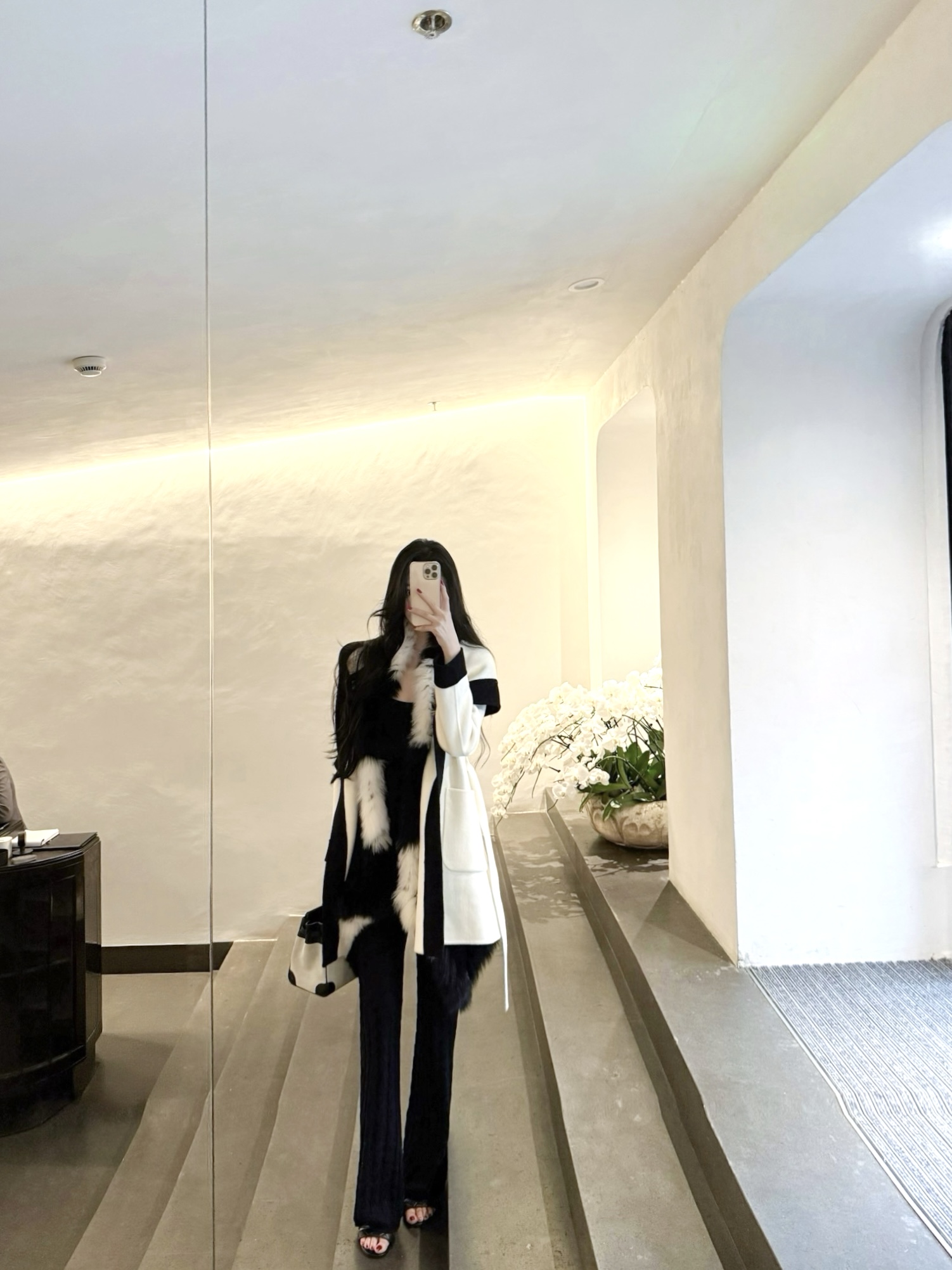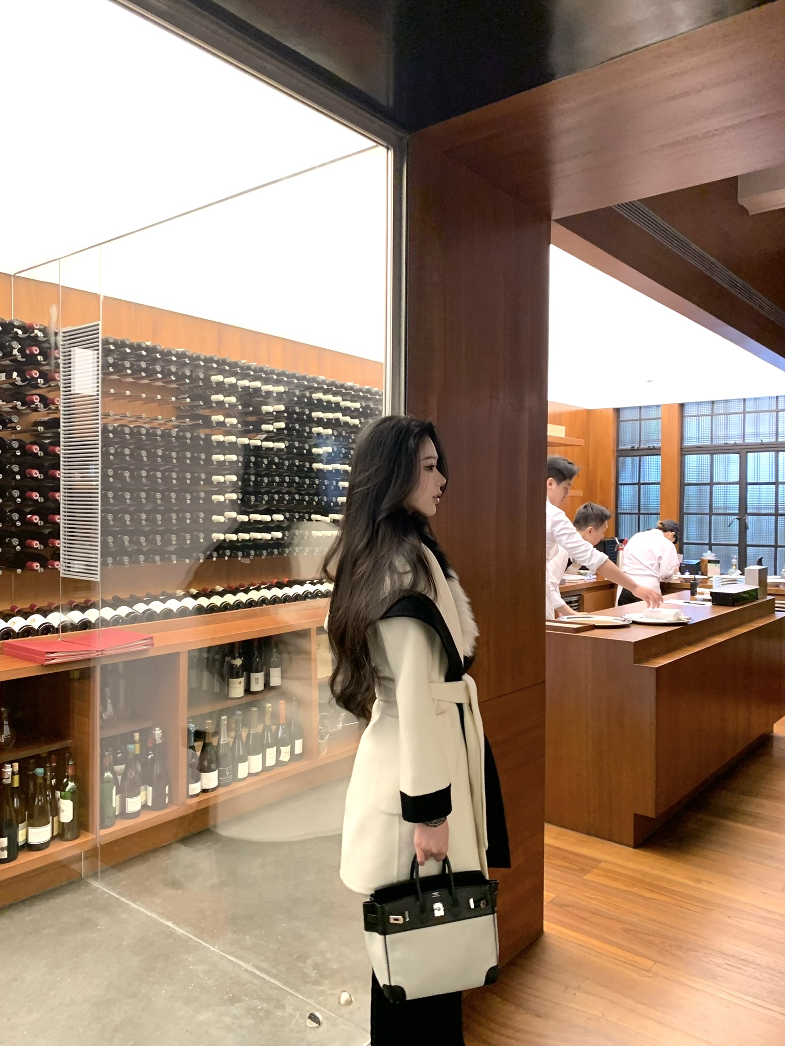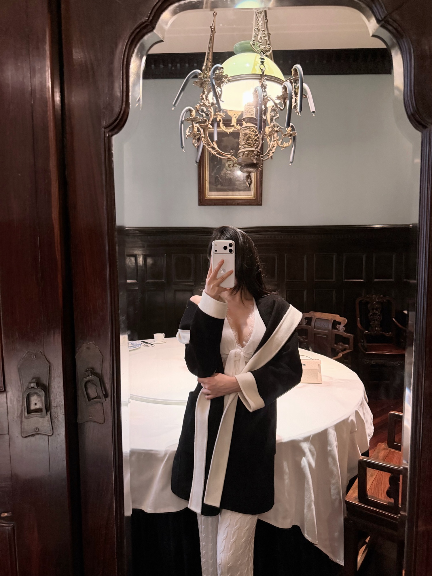经典的黑白色拼色设计是这款大衣的的一个亮点所在