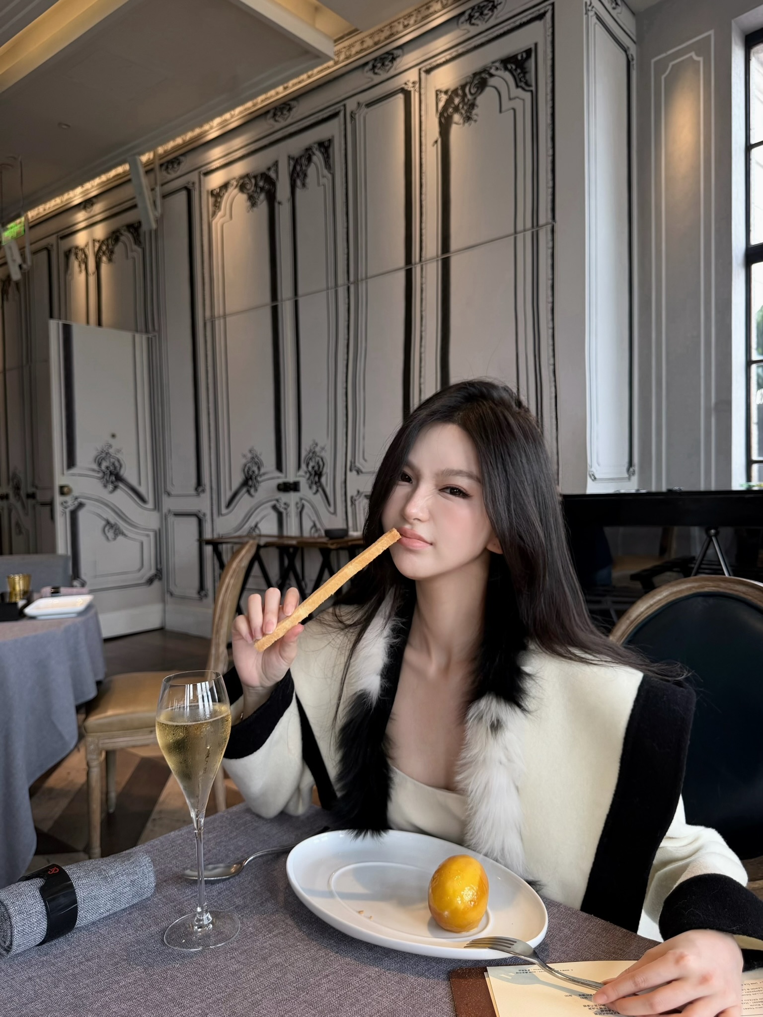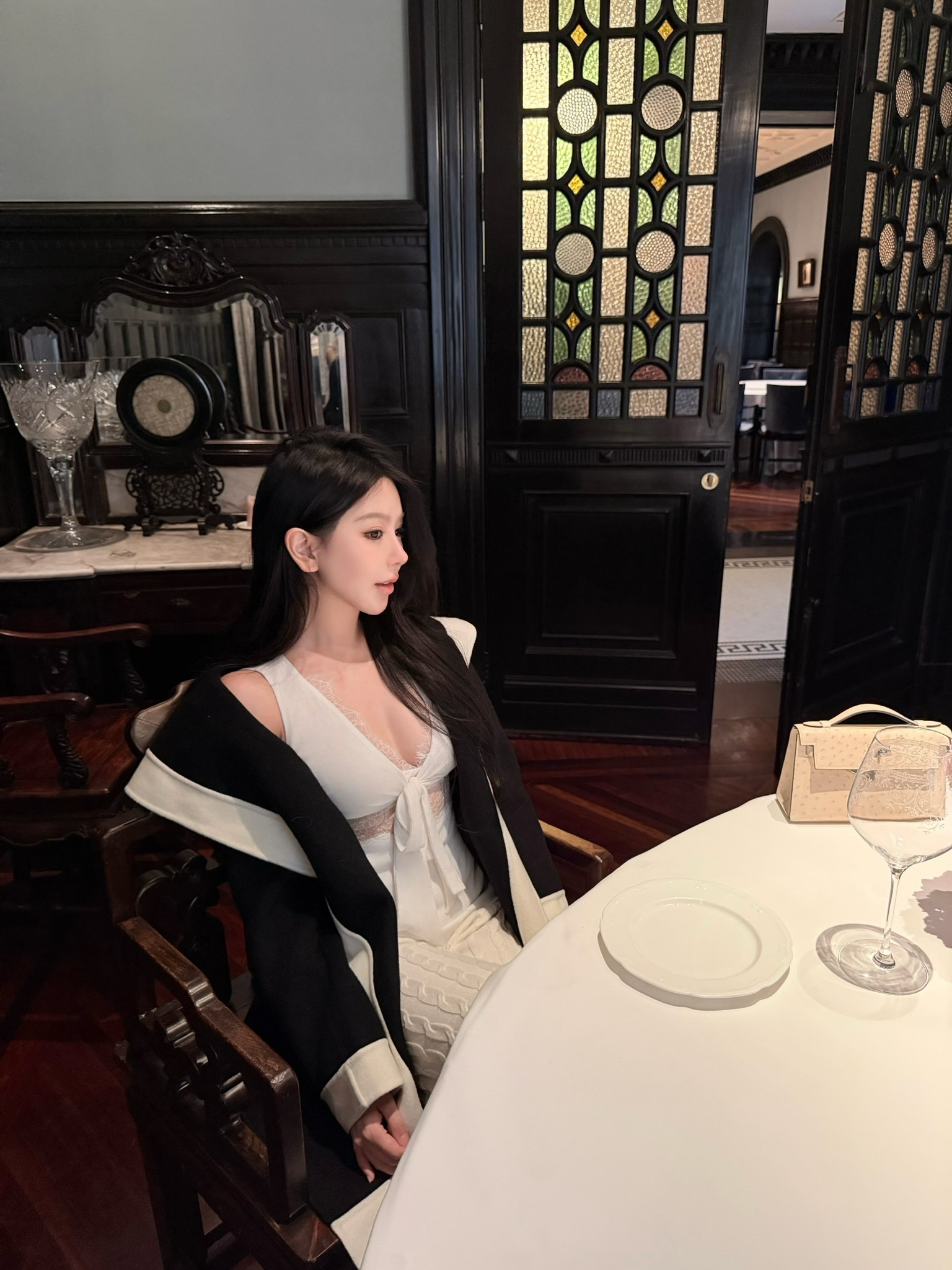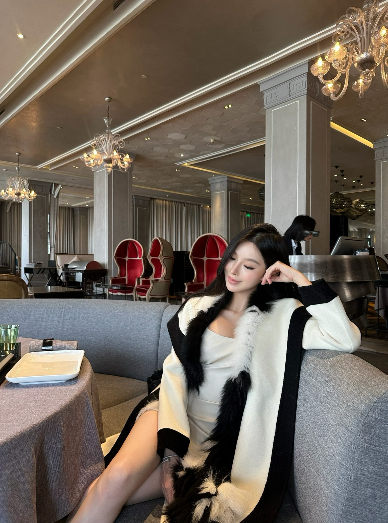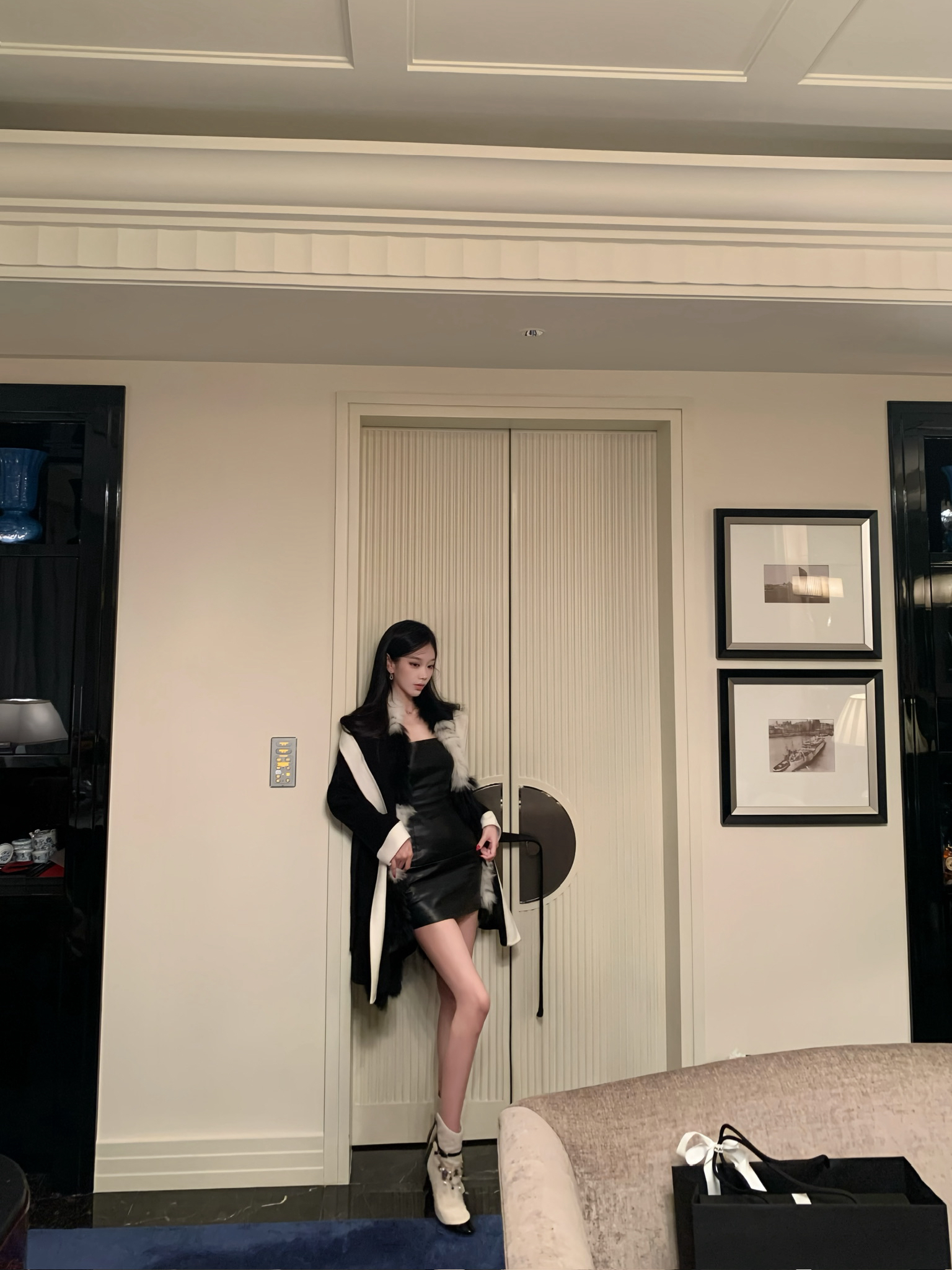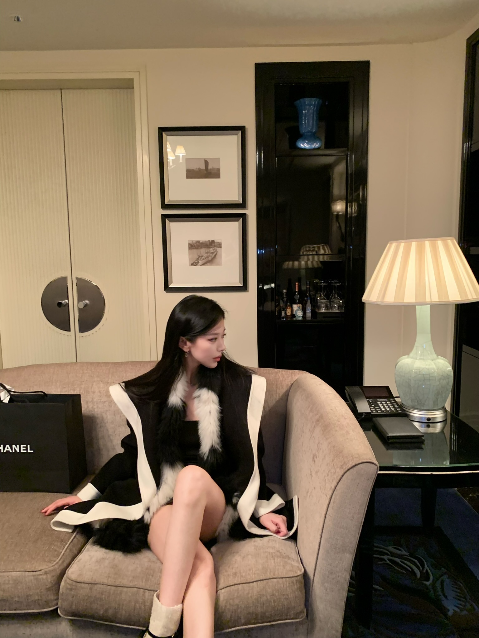 经典的黑白色拼色设计是这款大衣的的一个亮点所在