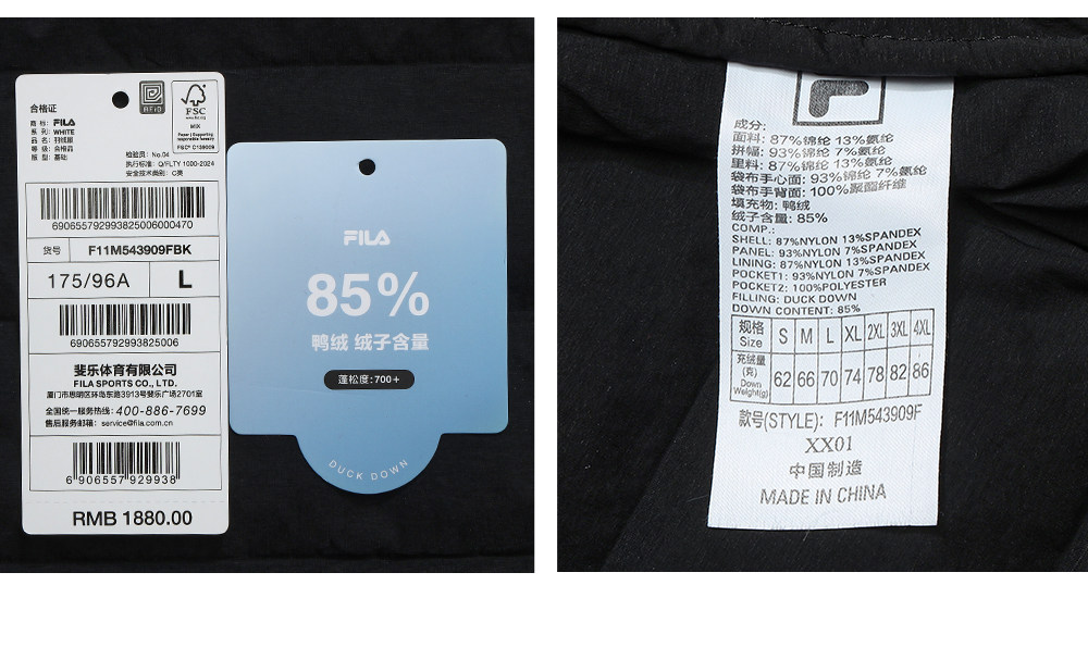 Fila Men's Ribbed down Jacket 2025 Winter New Lightweight Inner Layer Casual Stand Collar Warm Coat
