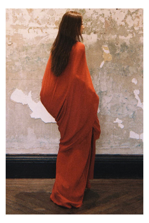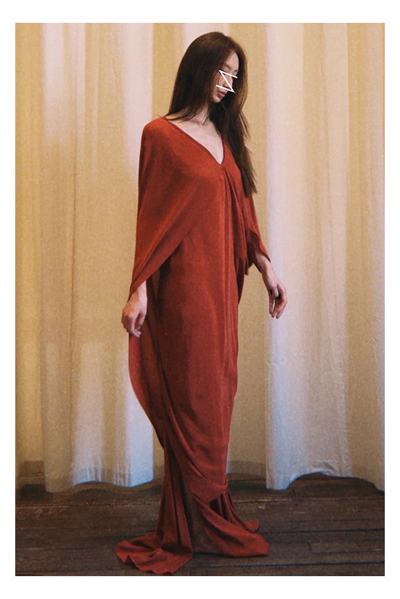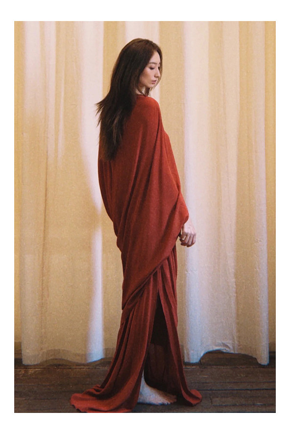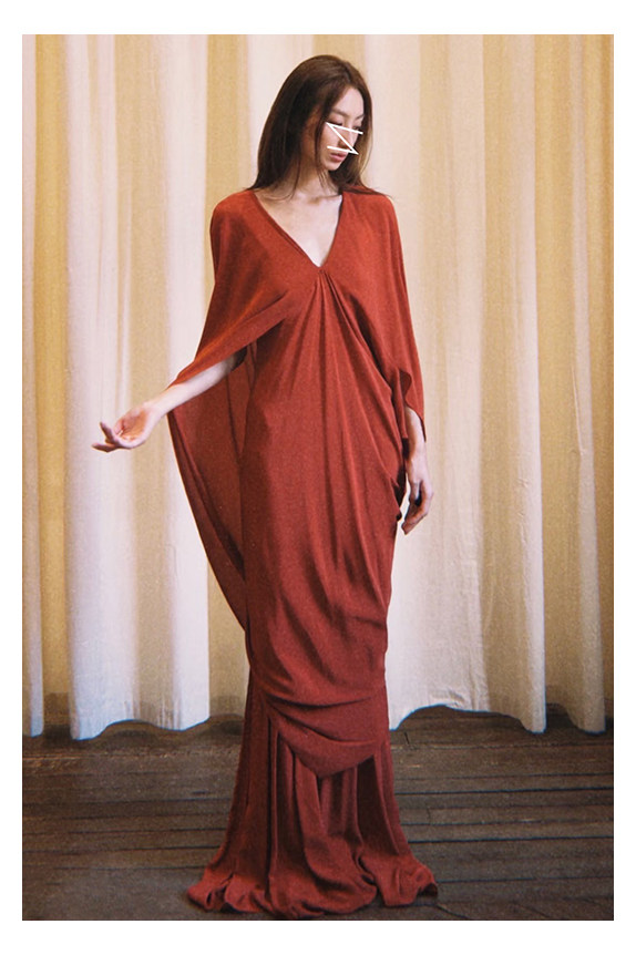 Niche Light Luxury V-Neck Draped Asymmetrical Slit Waist-Cinching Cape Dress Vintage Style Slimming Chinese Red Long Dress