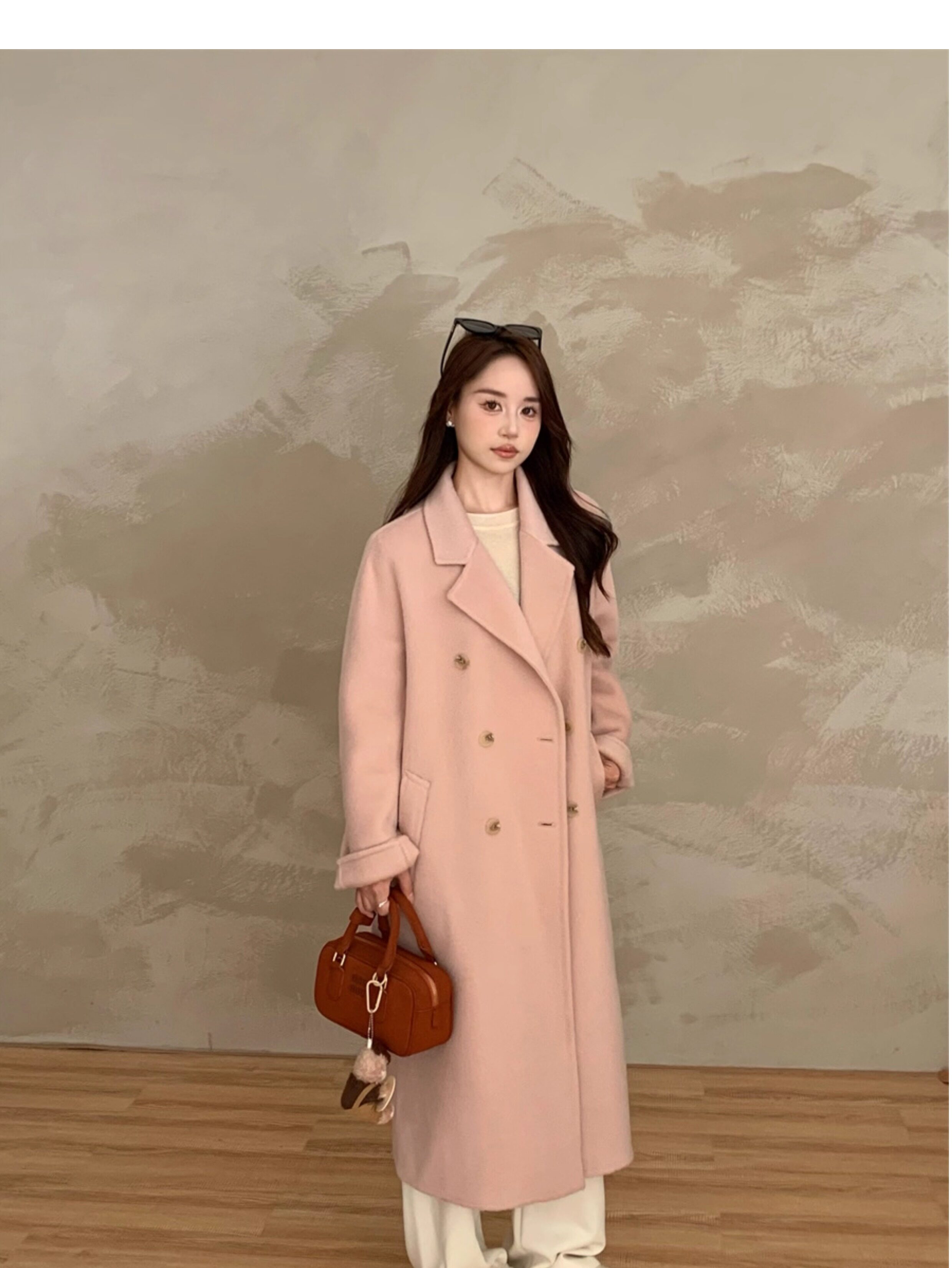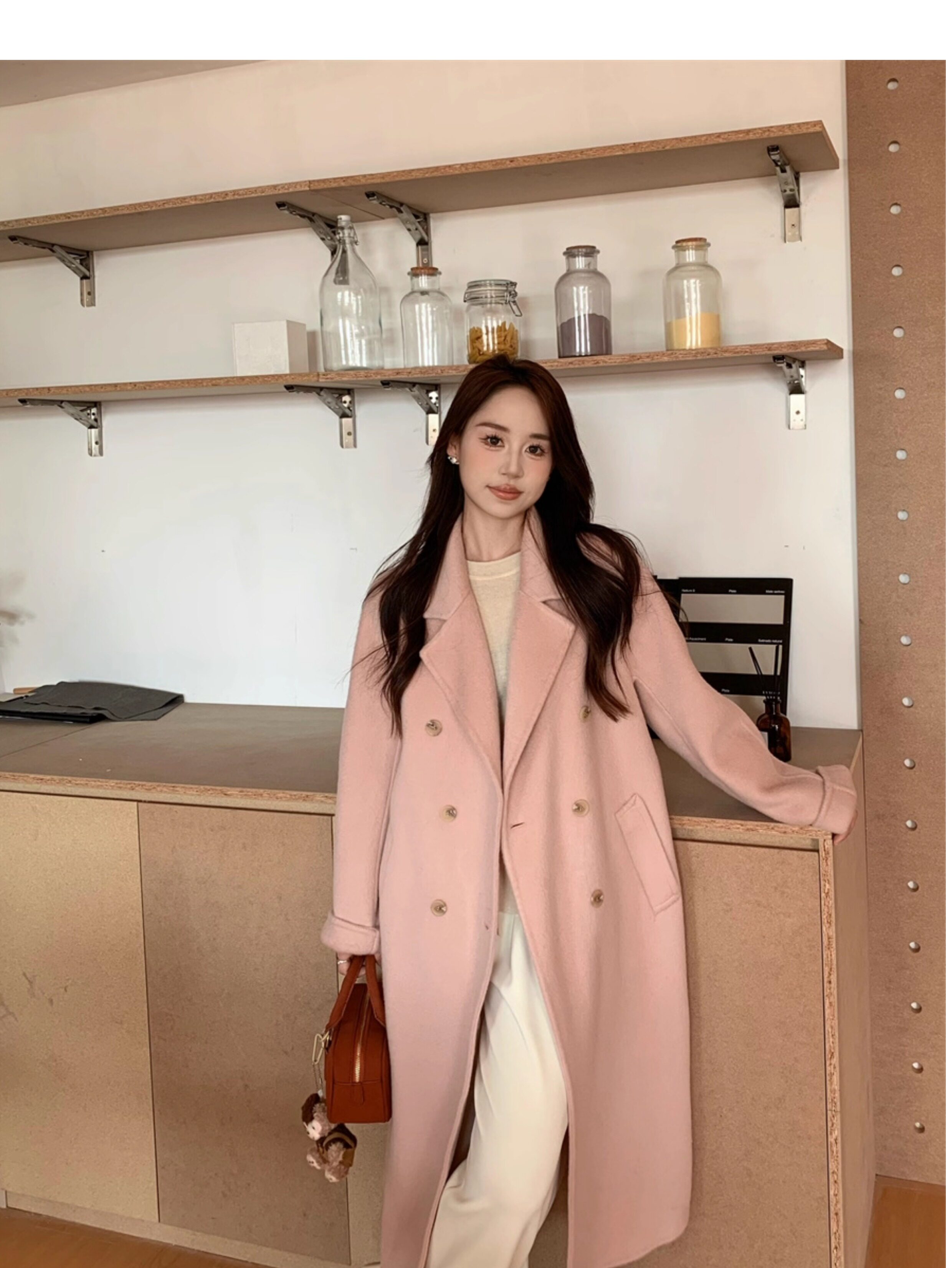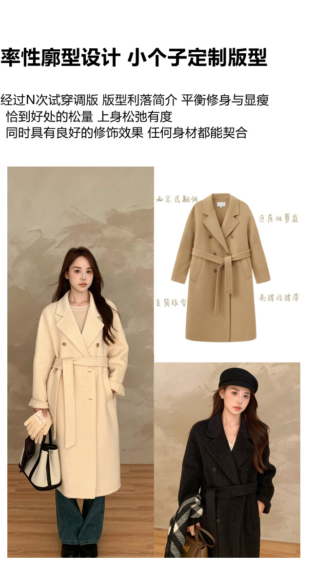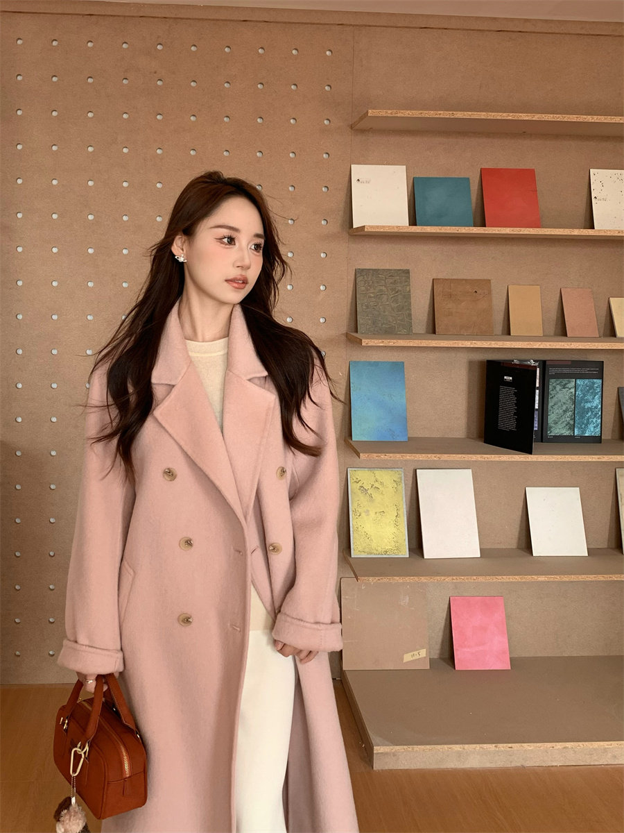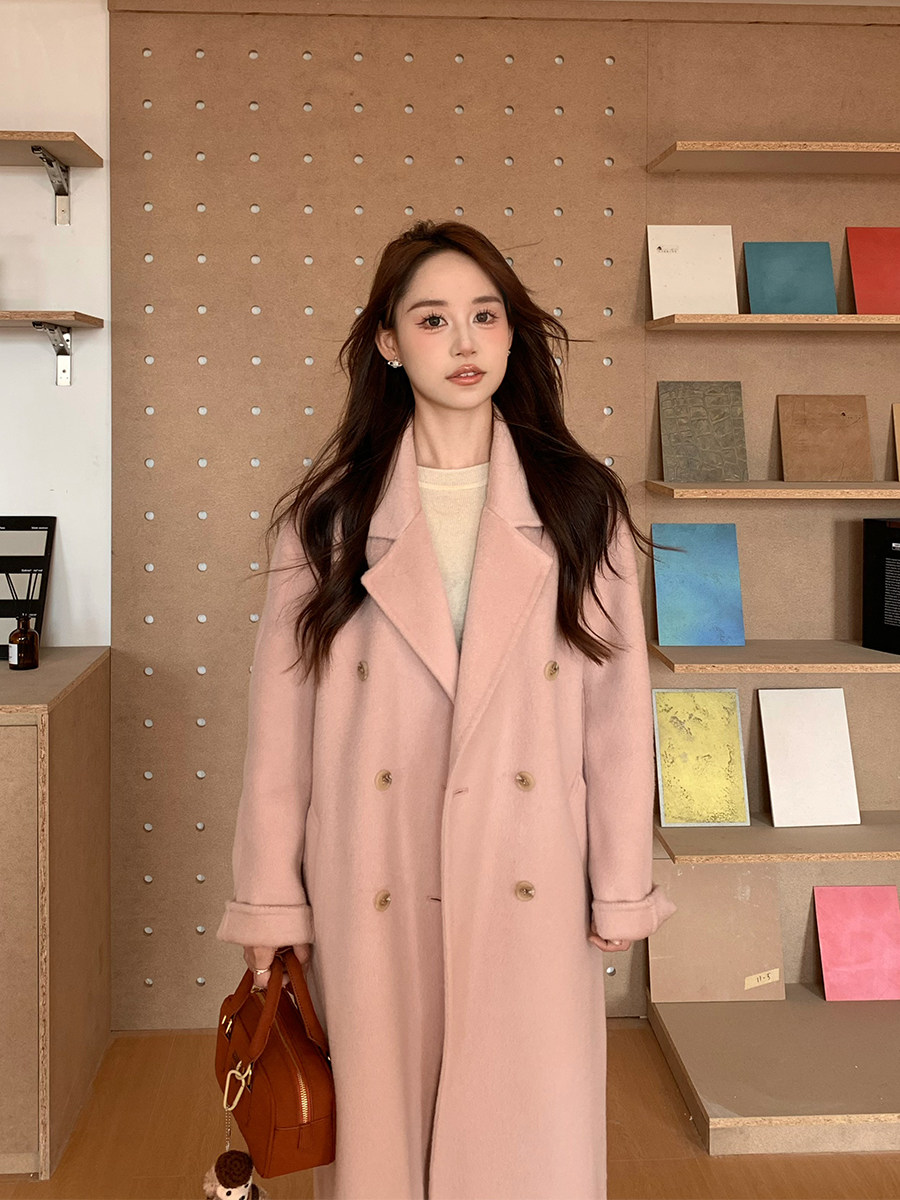 Ac Home 2025 New Oatmeal Pink Wool Coat 1.5m Double-Sided Cashmere Petite Coat for Women