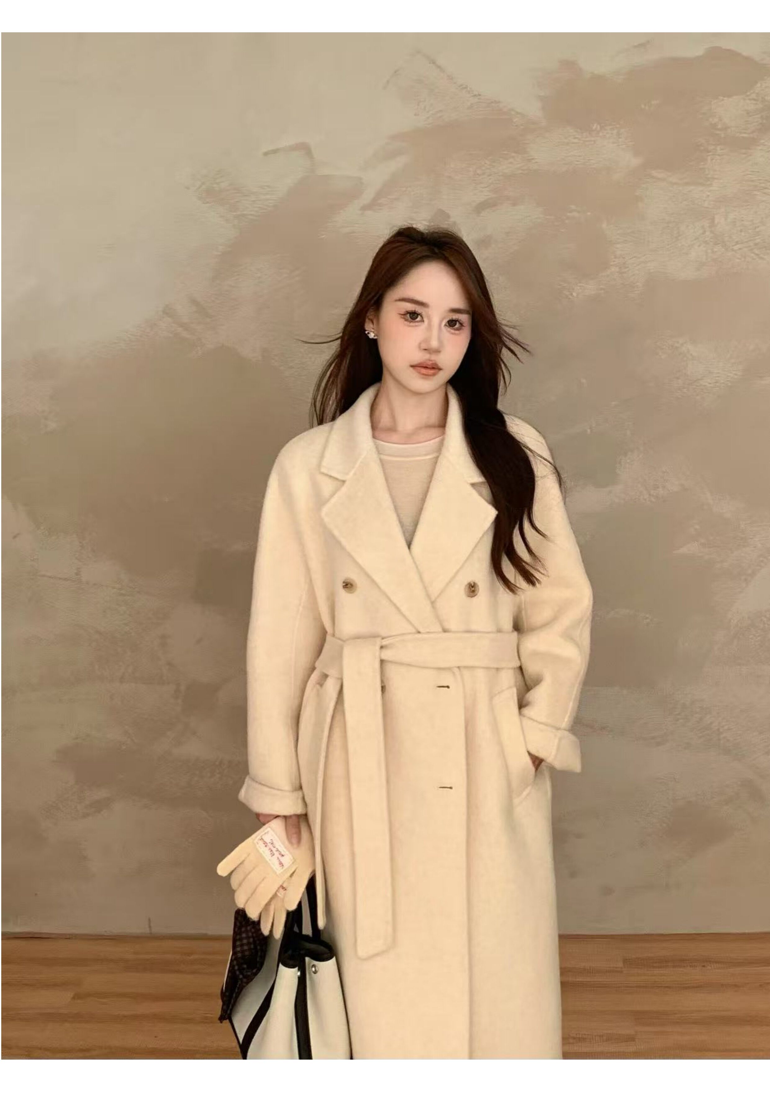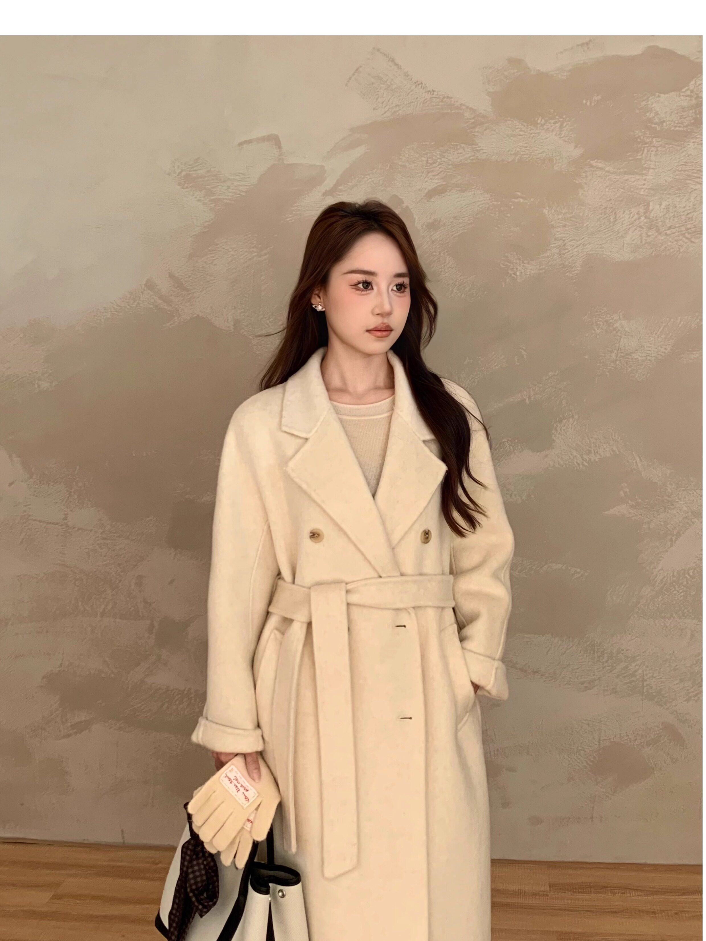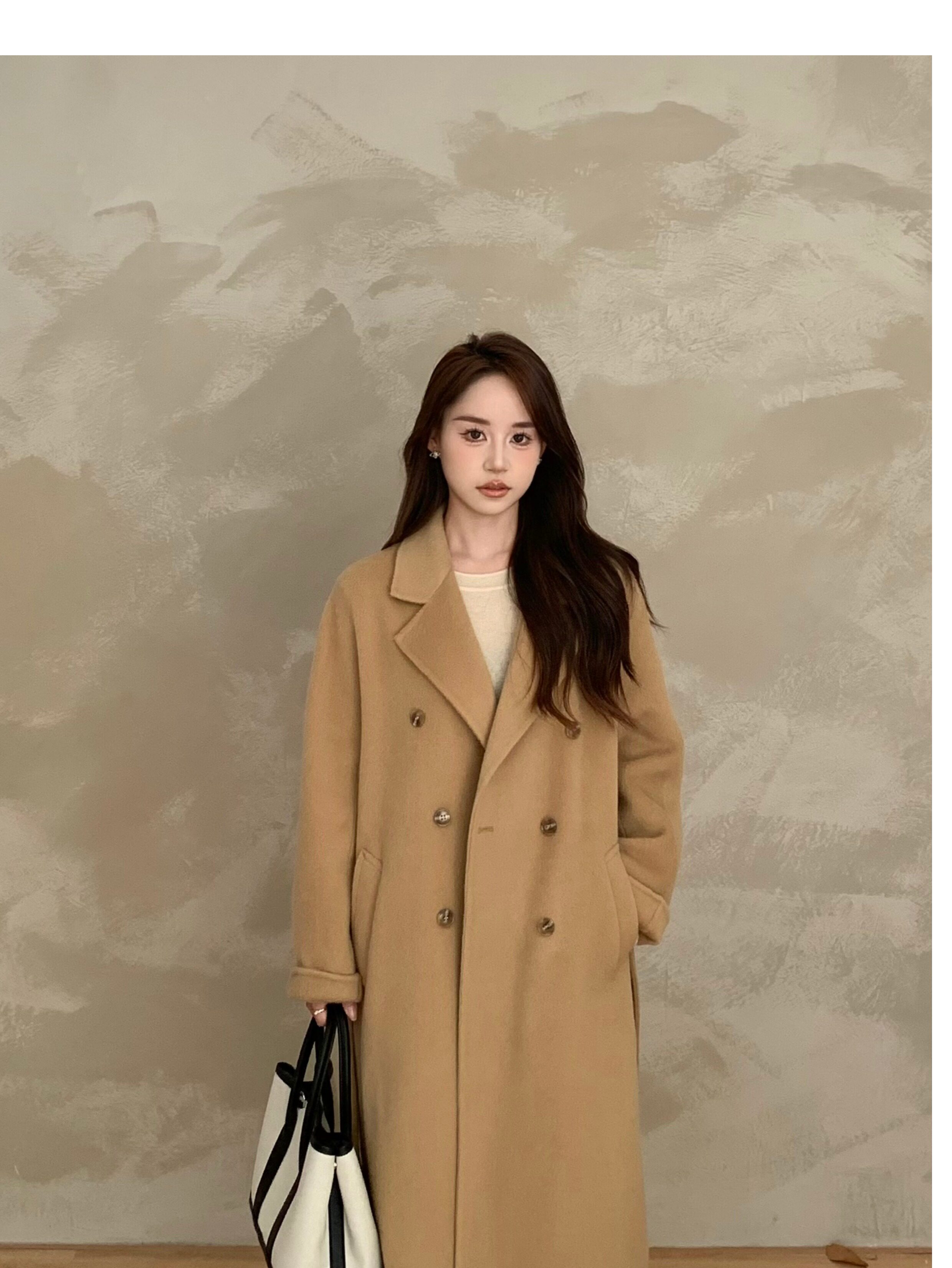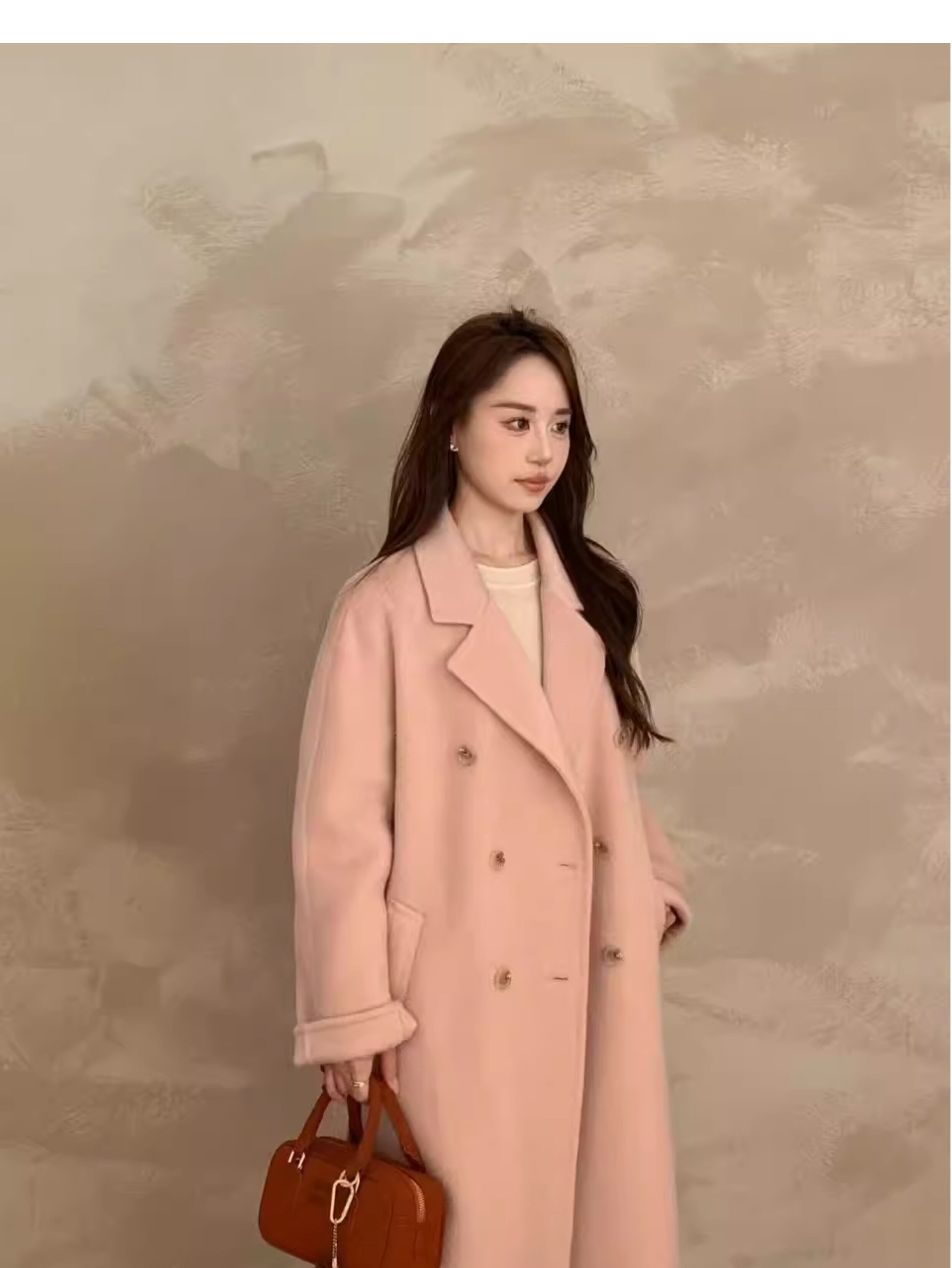Ac Home 2025 New Oatmeal Pink Wool Coat 1.5m Double-Sided Cashmere Petite Coat for Women