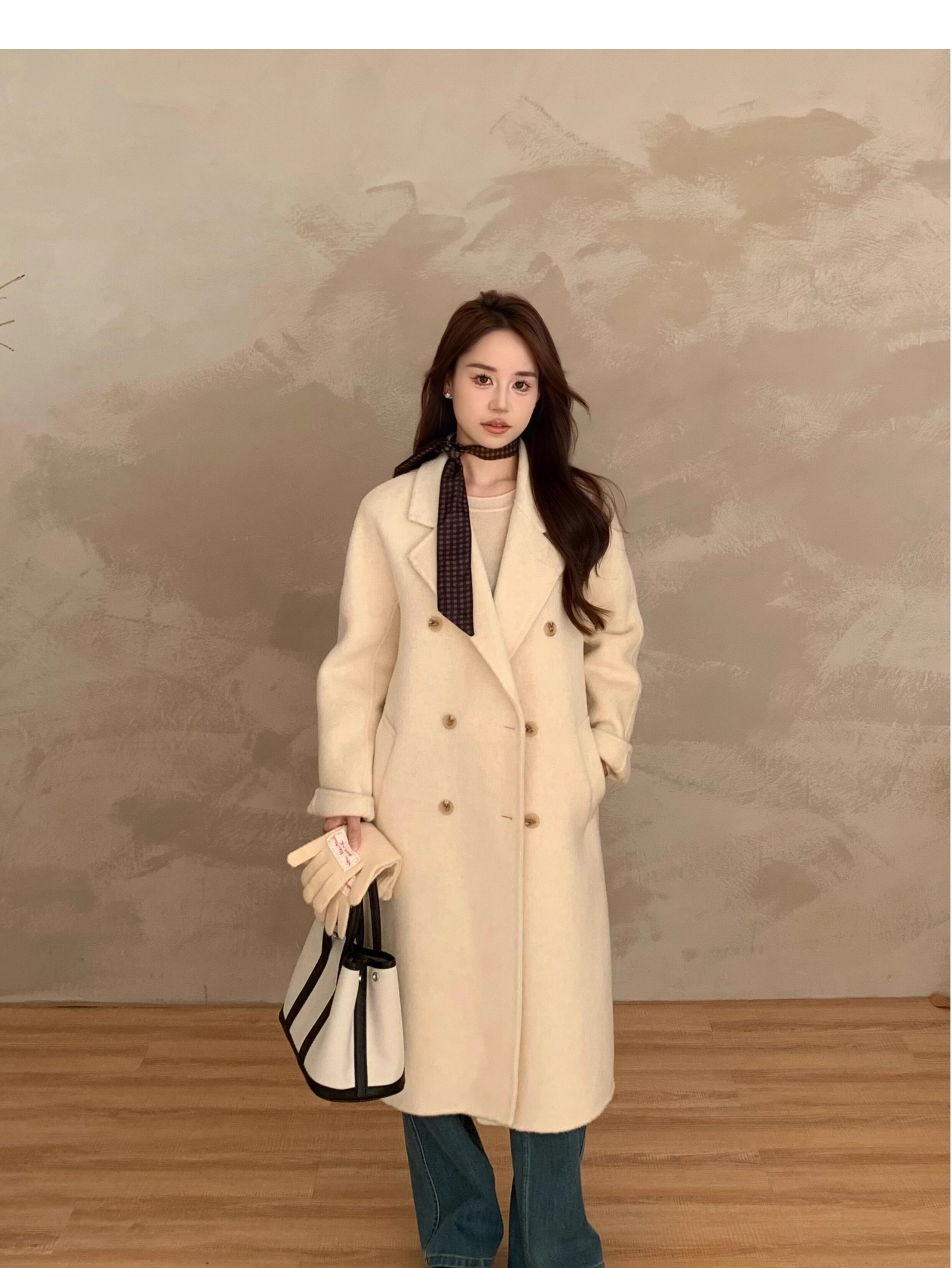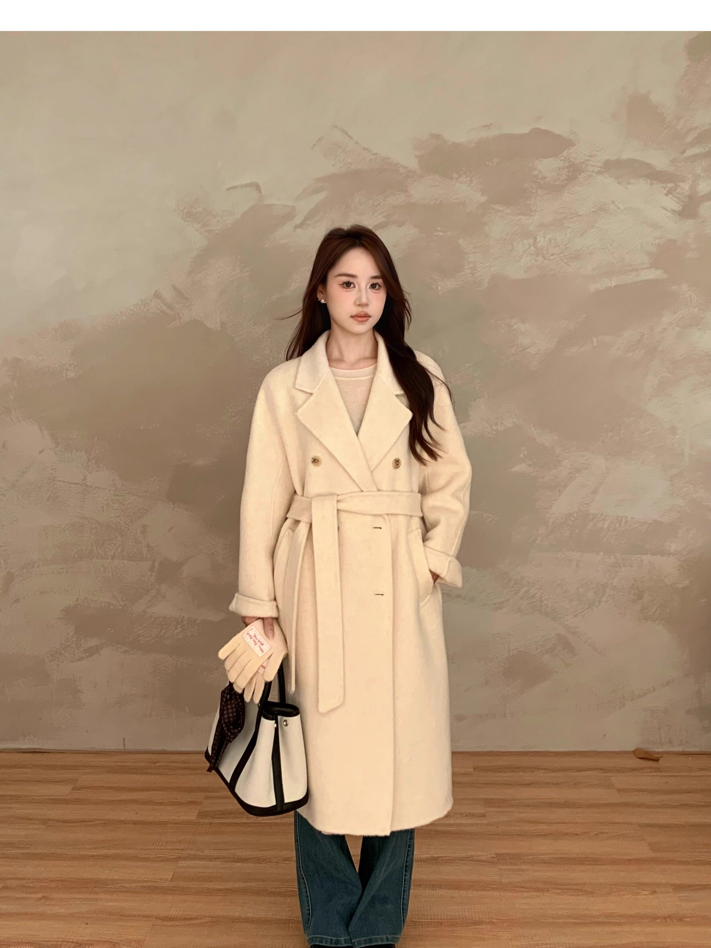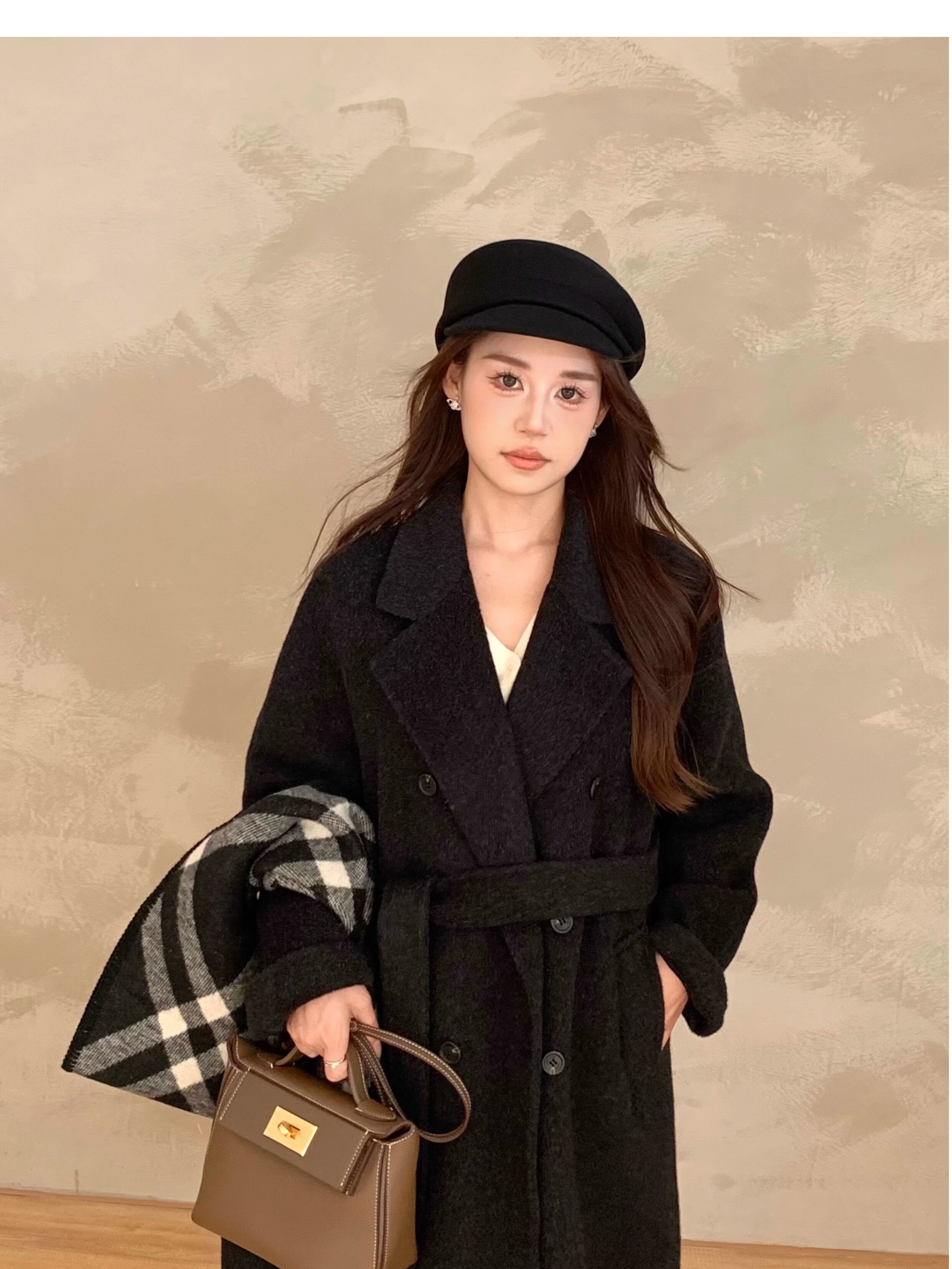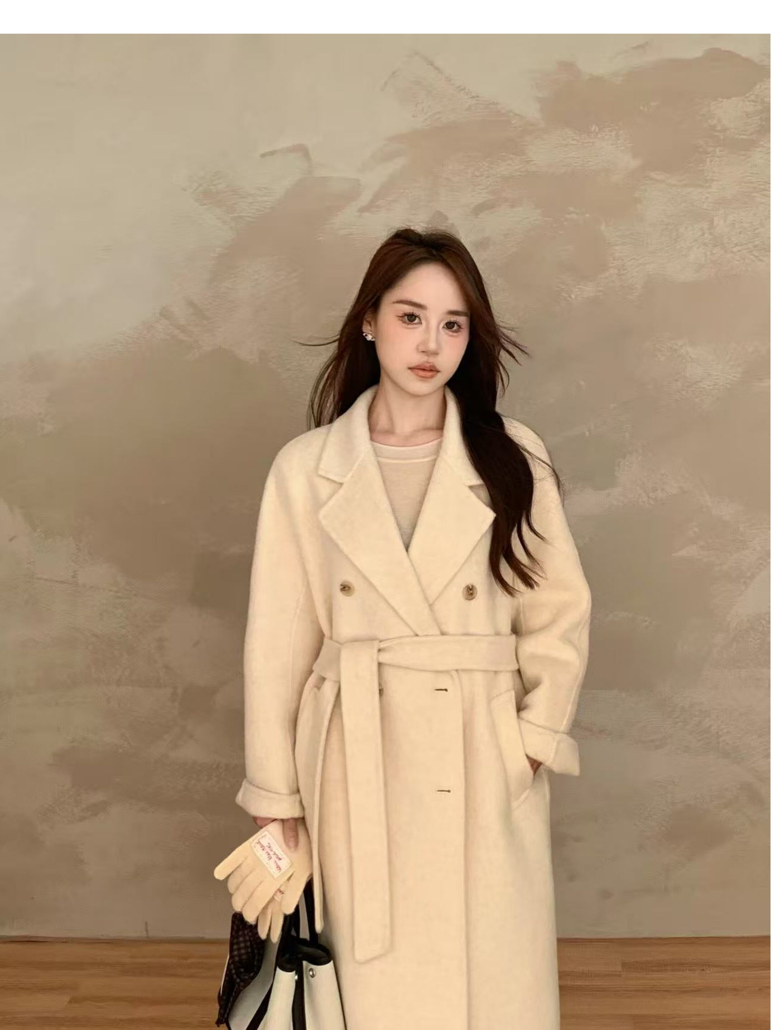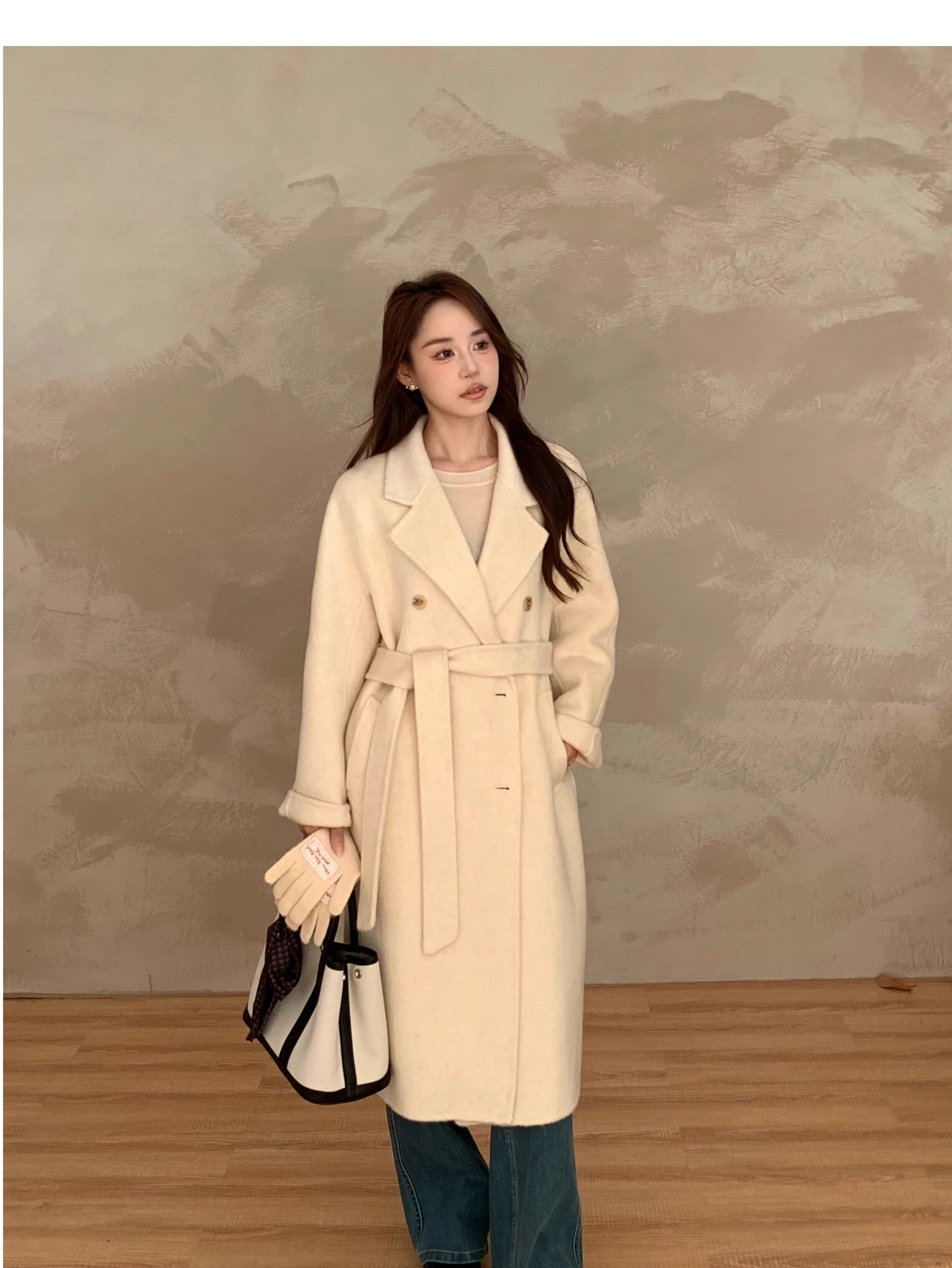 Ac Home 2025 New Oatmeal Pink Wool Coat 1.5m Double-Sided Cashmere Petite Coat for Women