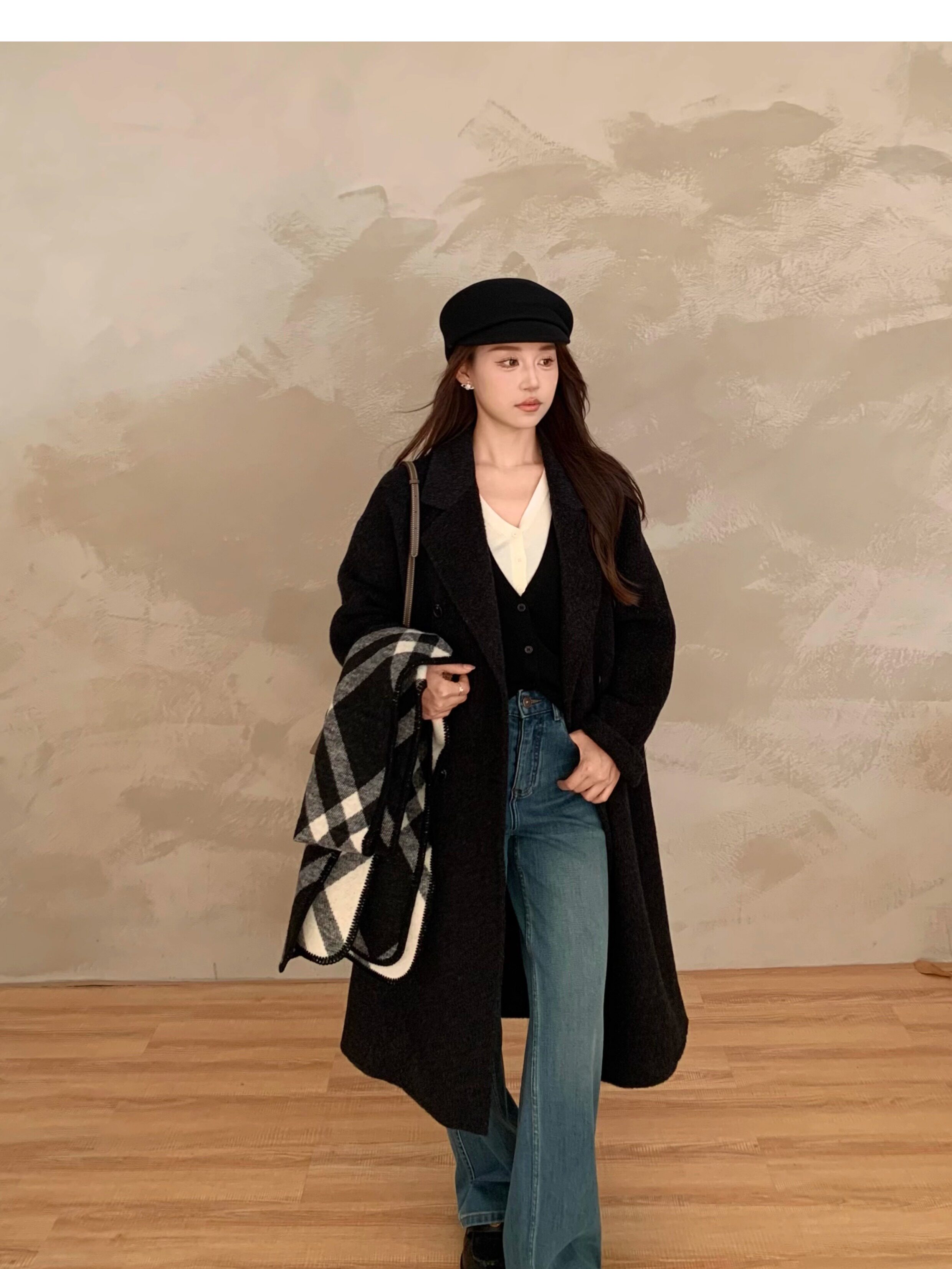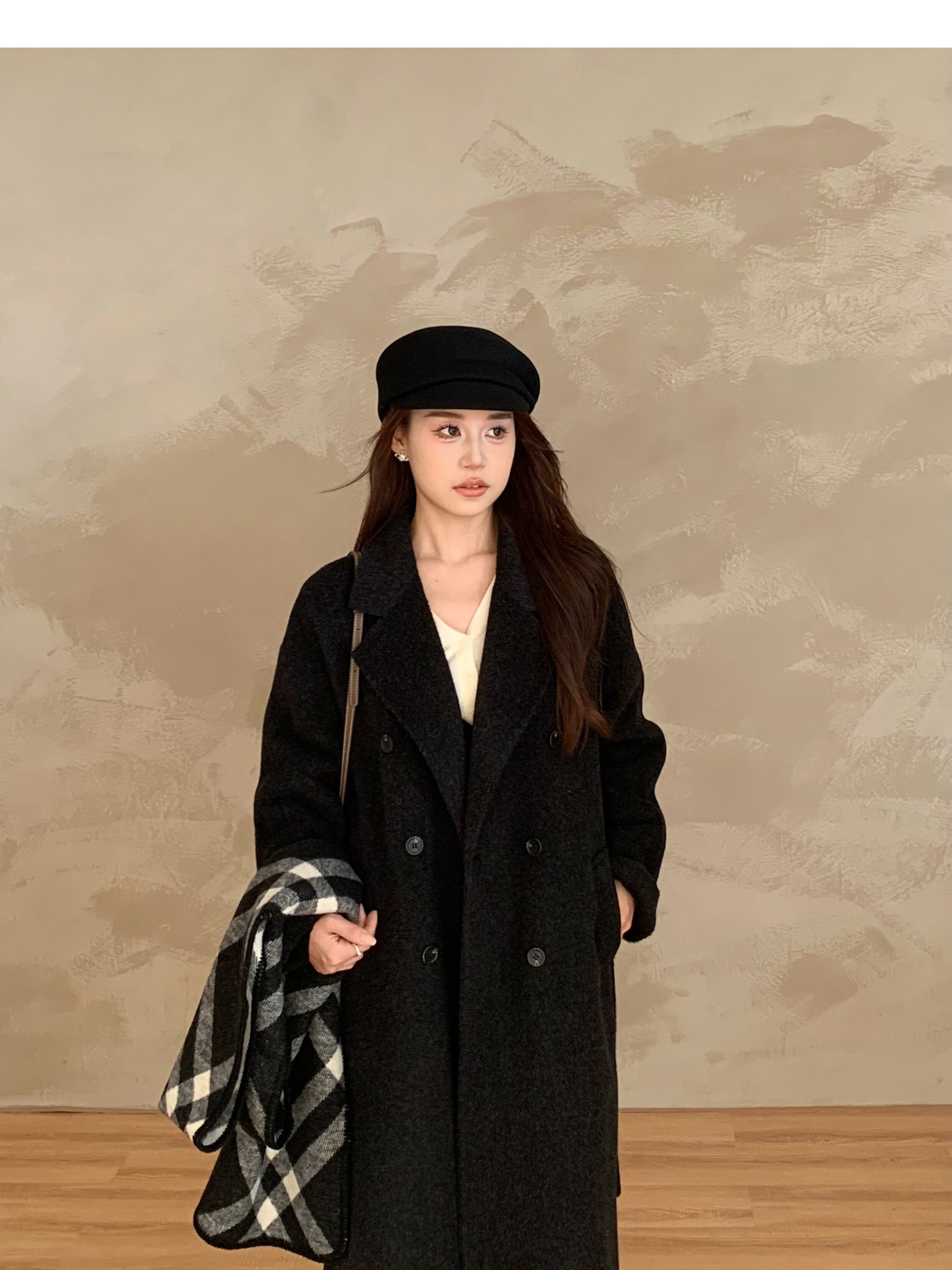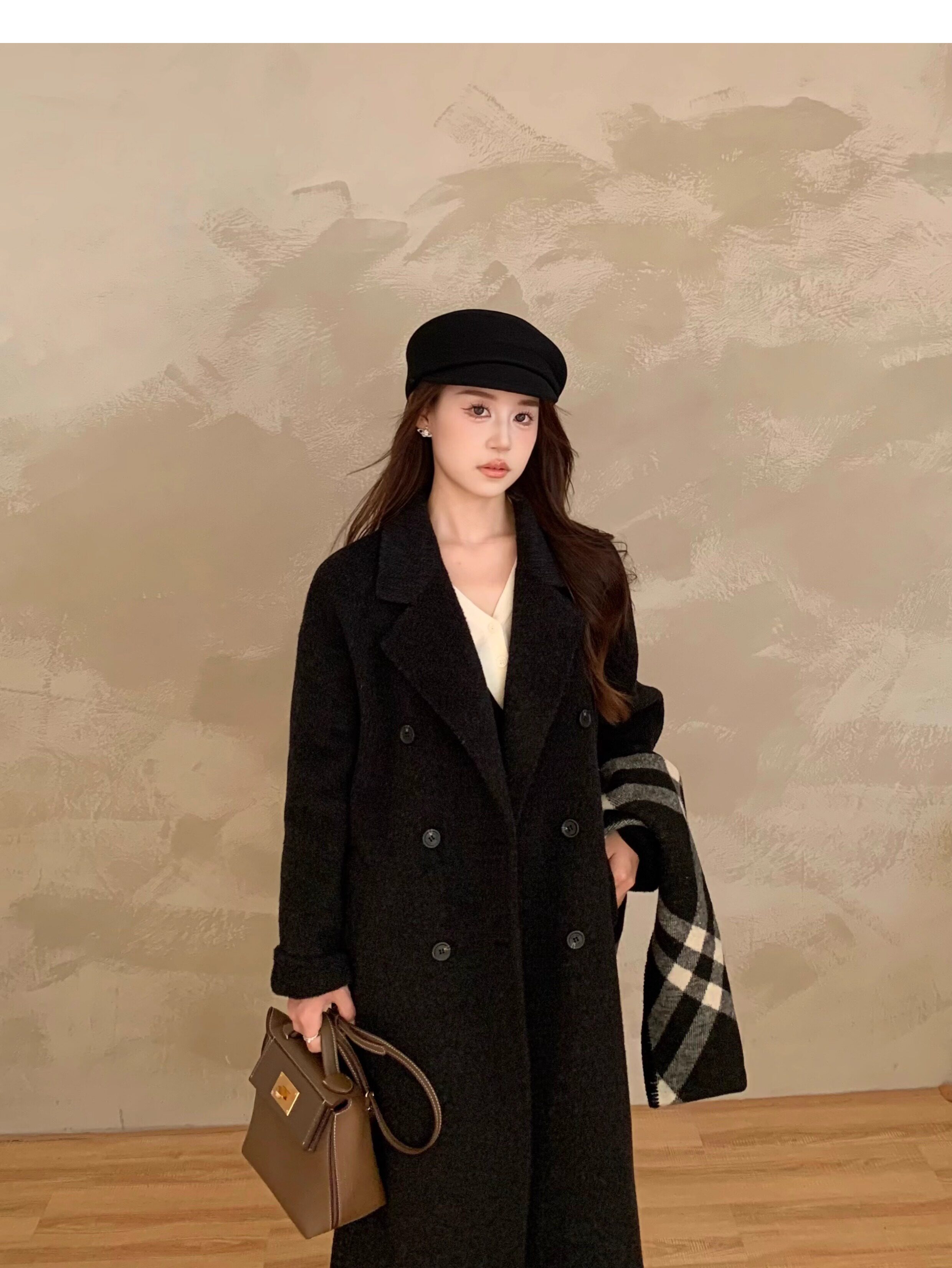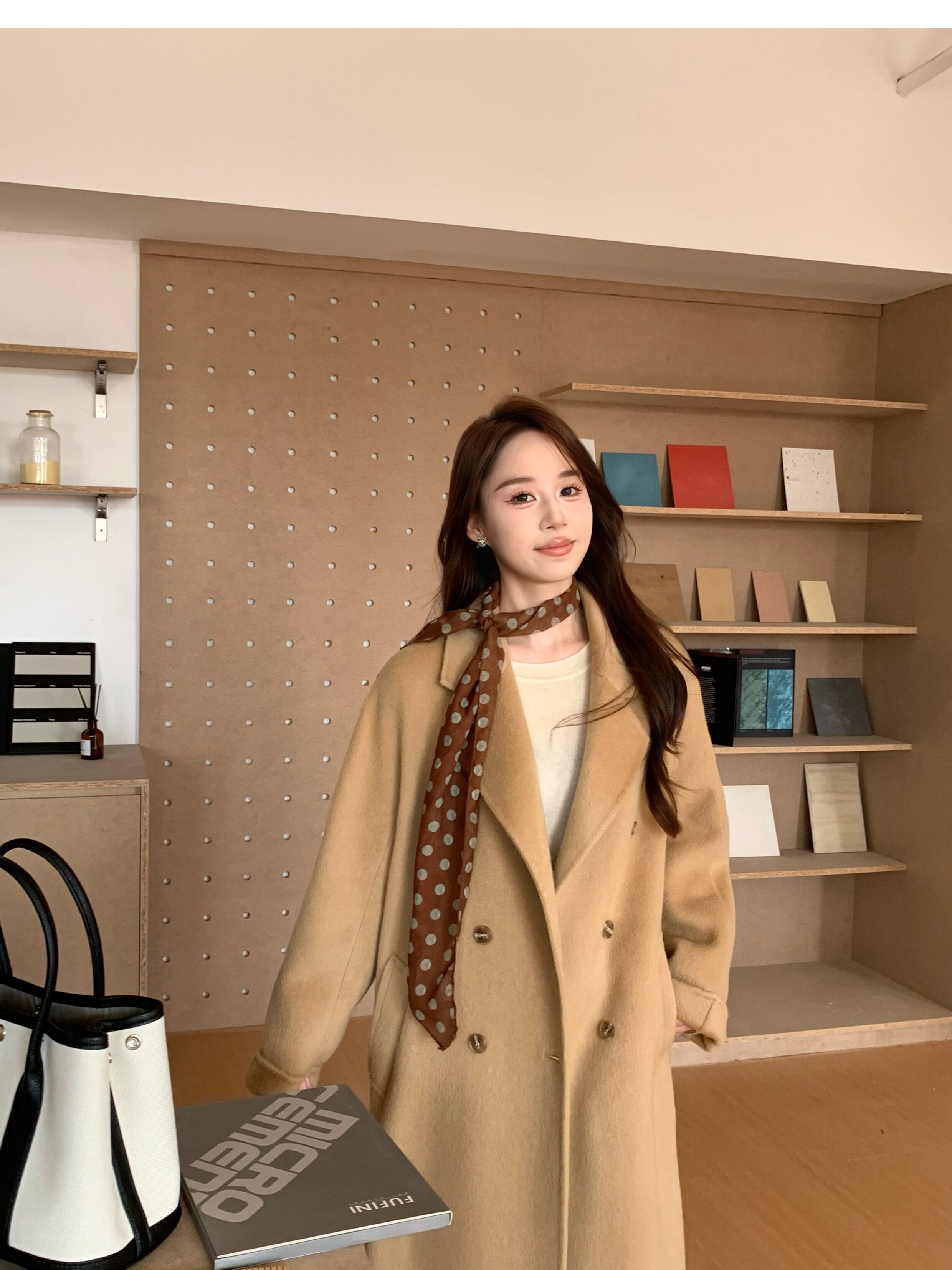 Ac Home 2025 New Oatmeal Pink Wool Coat 1.5m Double-Sided Cashmere Petite Coat for Women