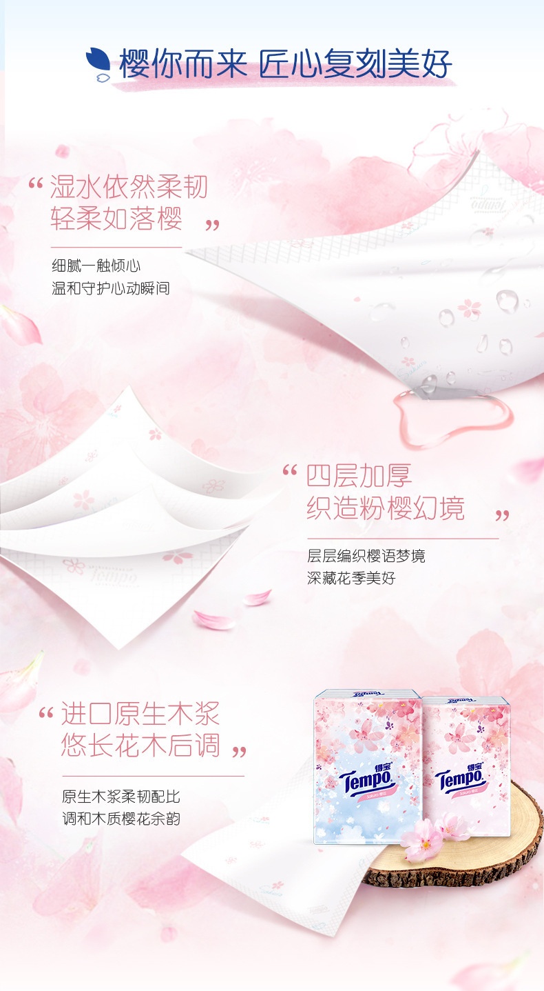 Debao tempo Cherry Blossom Flavor Handkerchief Paper 4 Layer 12 Pack Handkerchief Paper Towel Debao Non-fragrant Napkin