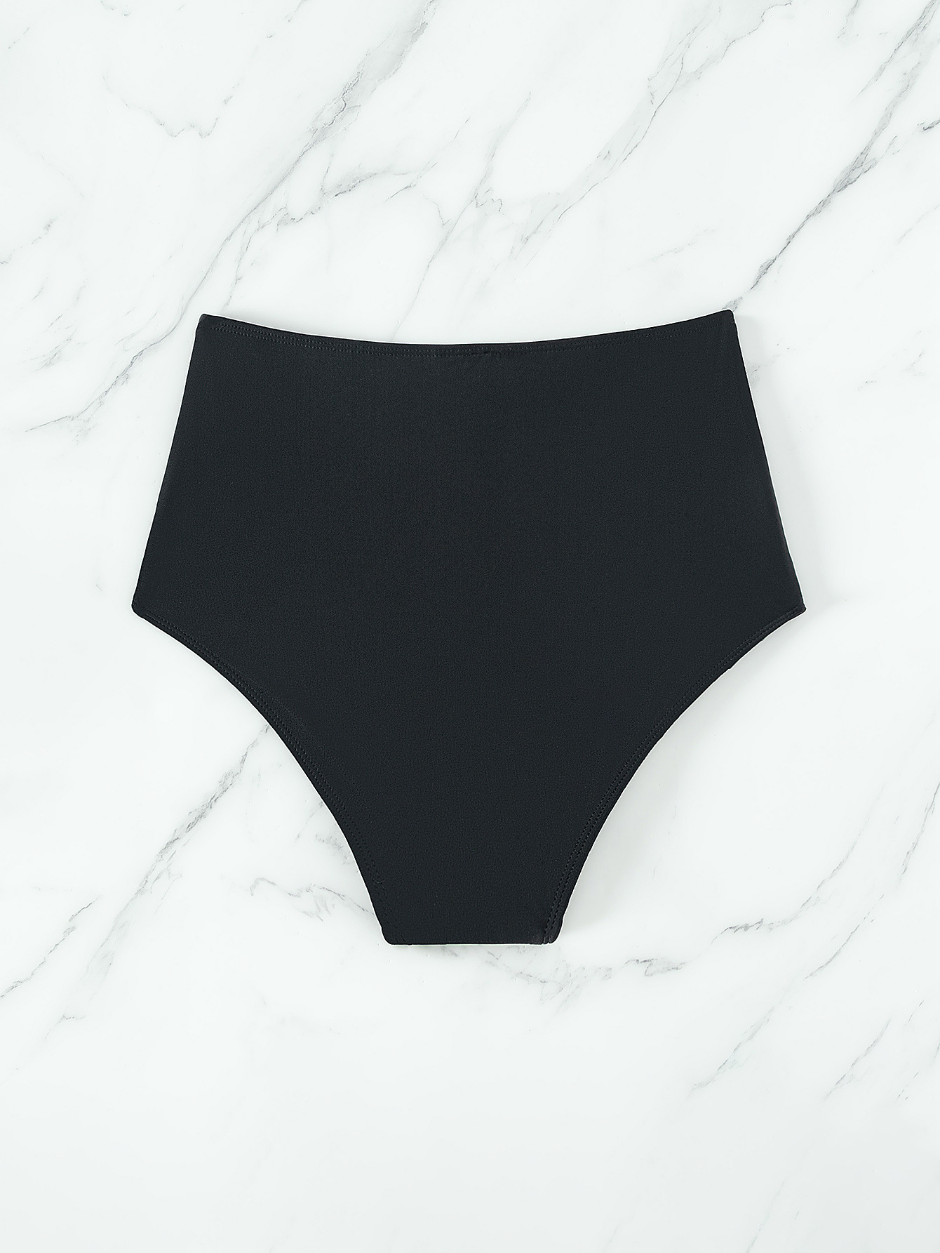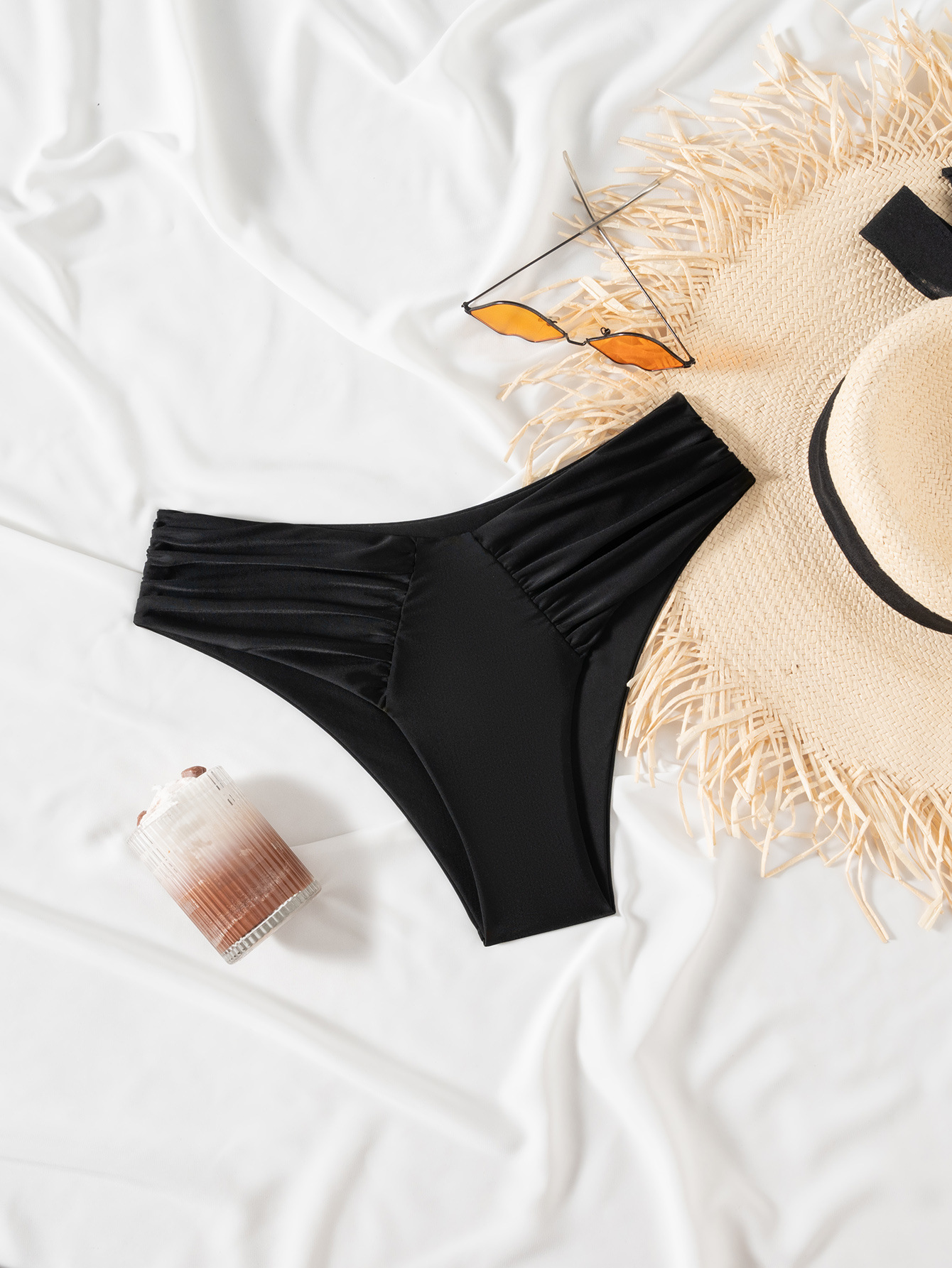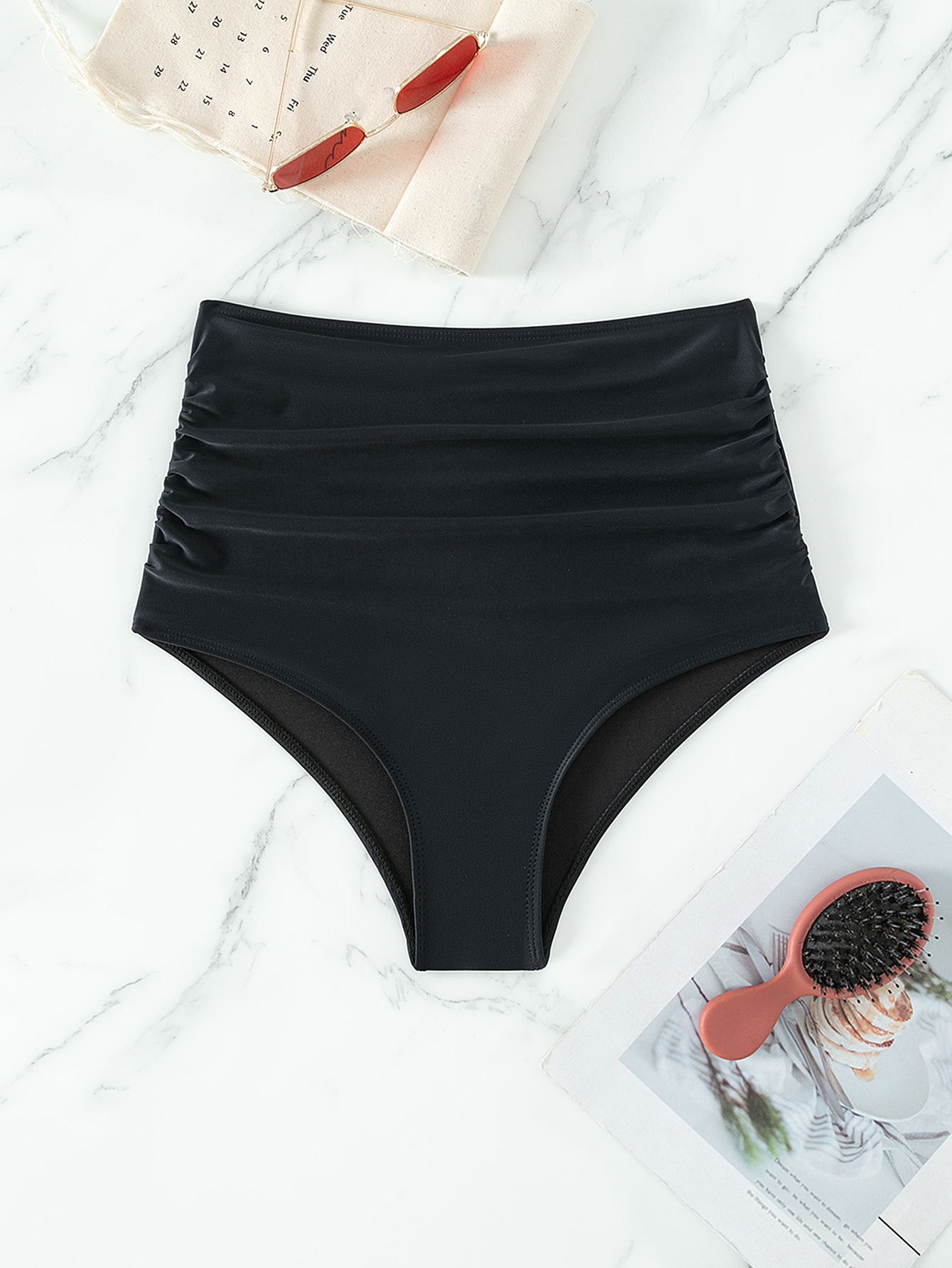 High-Waisted Ruched Swim Bottoms pure color high elastic high waist wrinkle swimsuit single swimming trunks