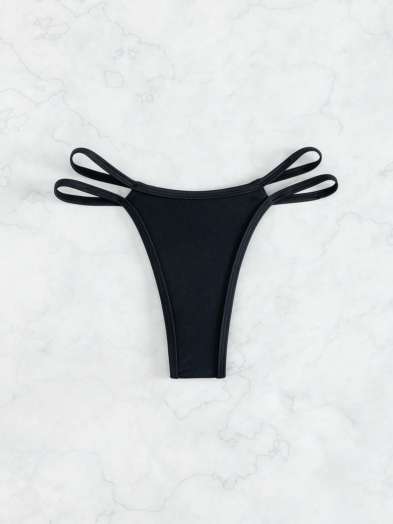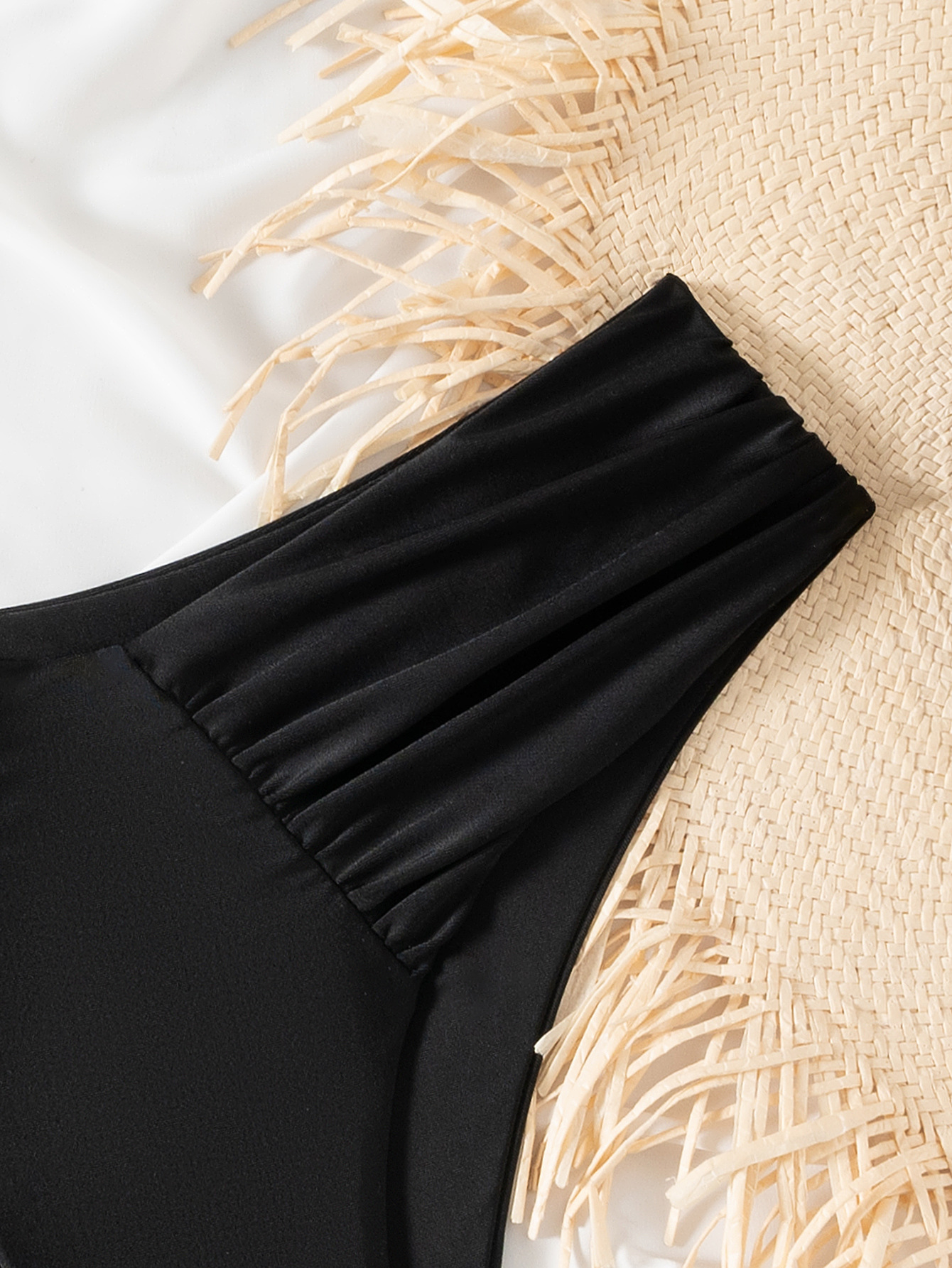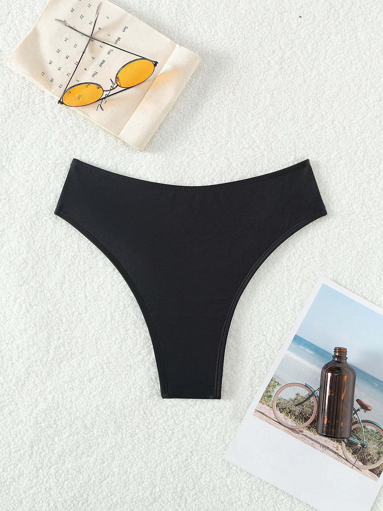 High-Waisted Ruched Swim Bottoms pure color high elastic high waist wrinkle swimsuit single swimming trunks