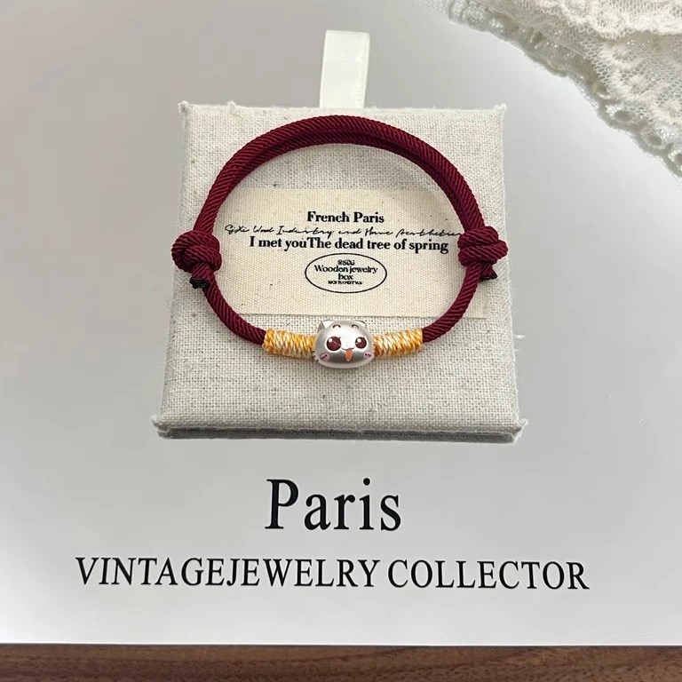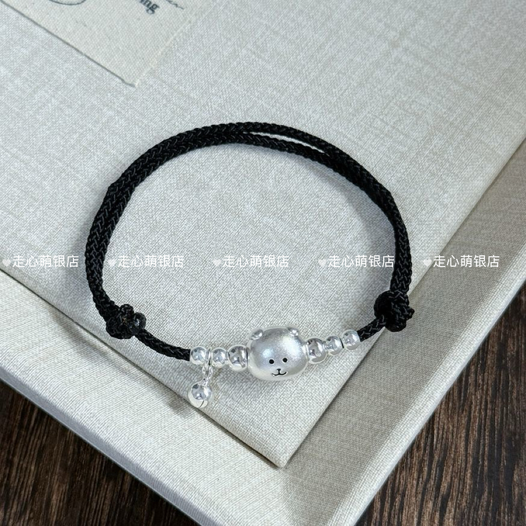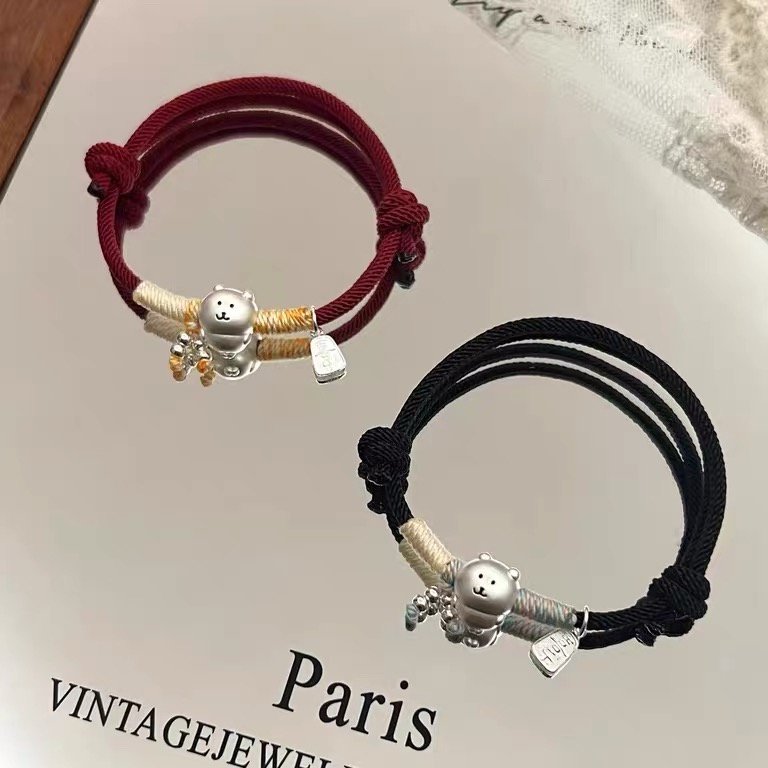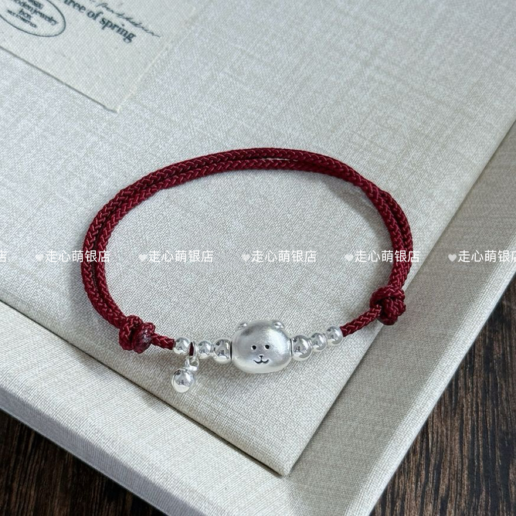 999 Pure Silver Self-Deprecating Bear Brother Pure Silver Bracelet, Red String Hand-Woven Rope for the Year of Birth, Gift for Best Friend or Friend's Birthday