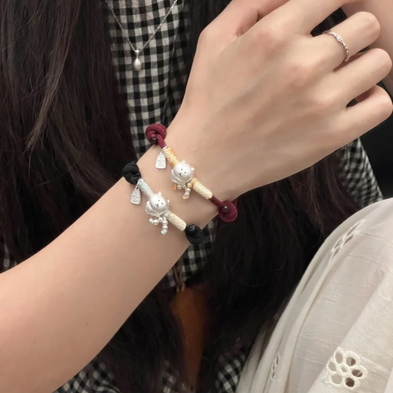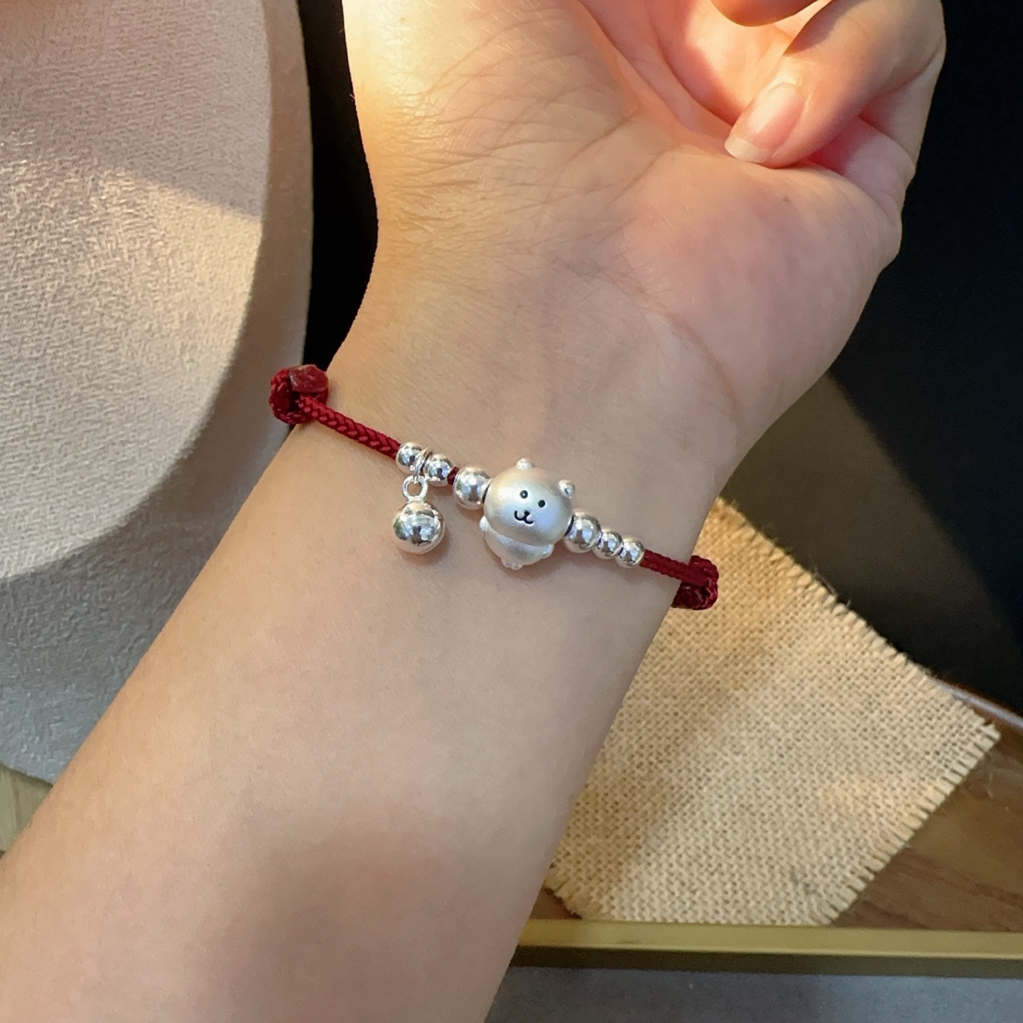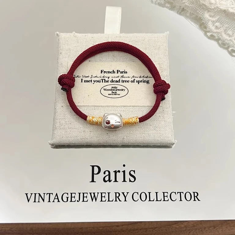 999 Pure Silver Self-Deprecating Bear Brother Pure Silver Bracelet, Red String Hand-Woven Rope for the Year of Birth, Gift for Best Friend or Friend's Birthday