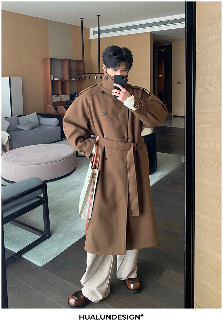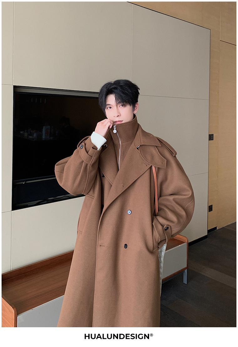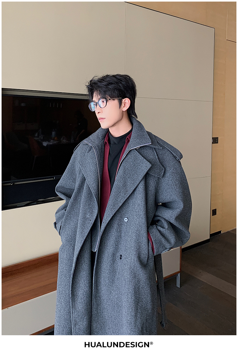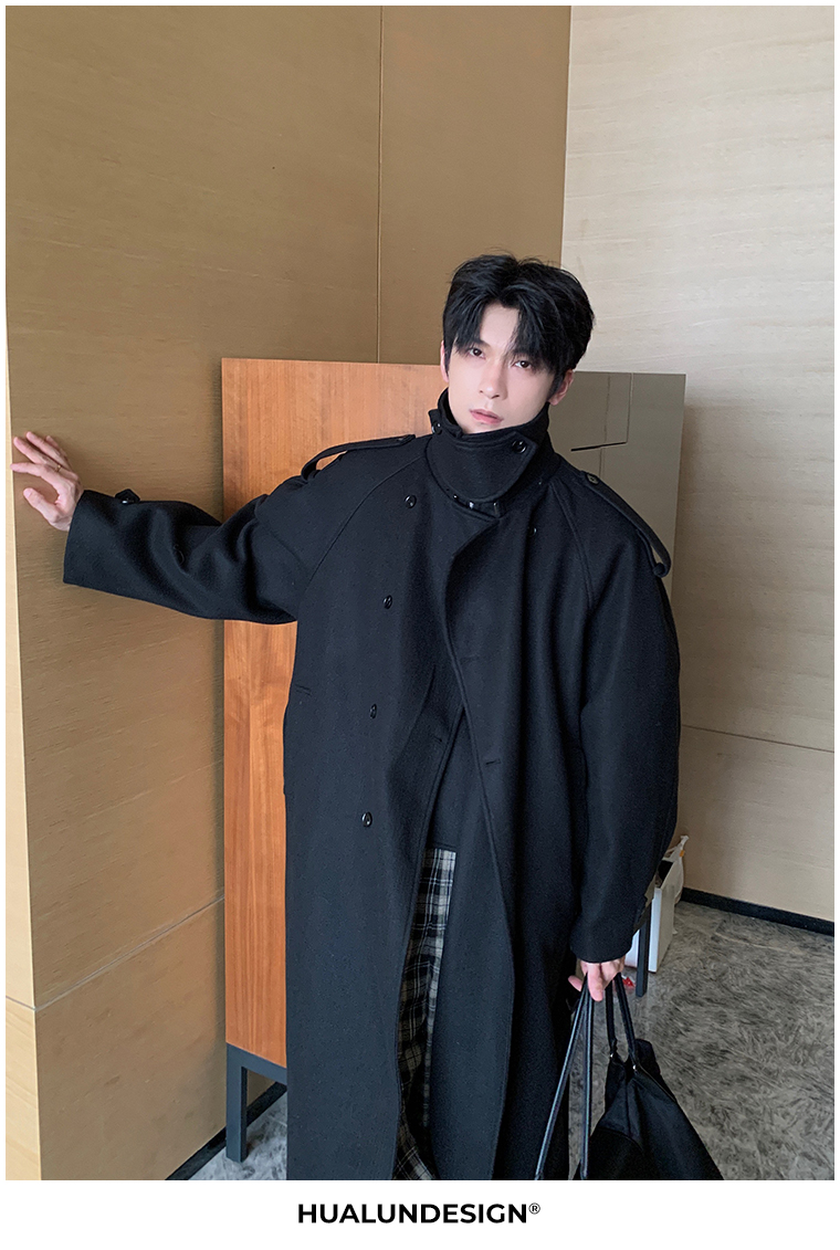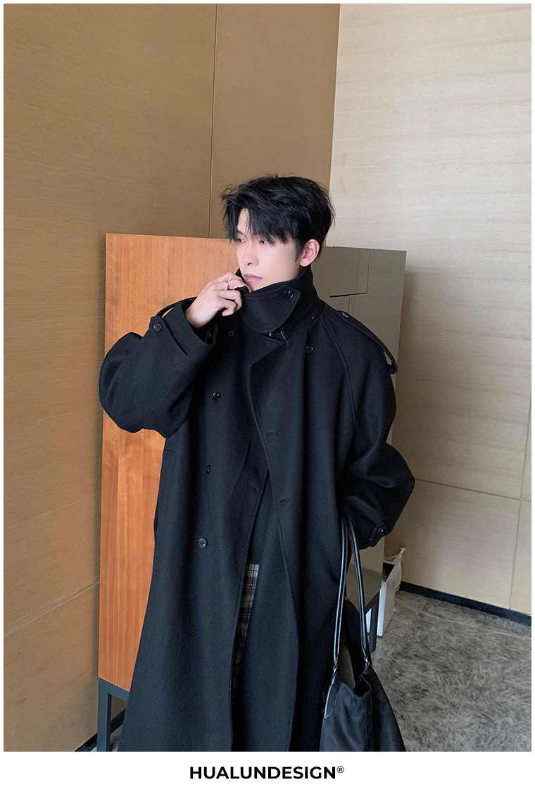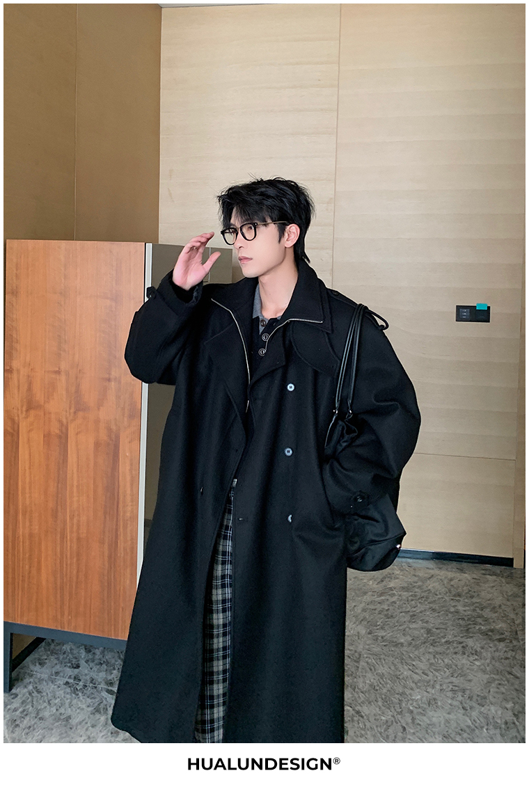 Hualun Winter Fake Two-Piece Men's Woolen Coat, Mid-Length Woolen Overcoat, High-End Warm Outerwear for Men