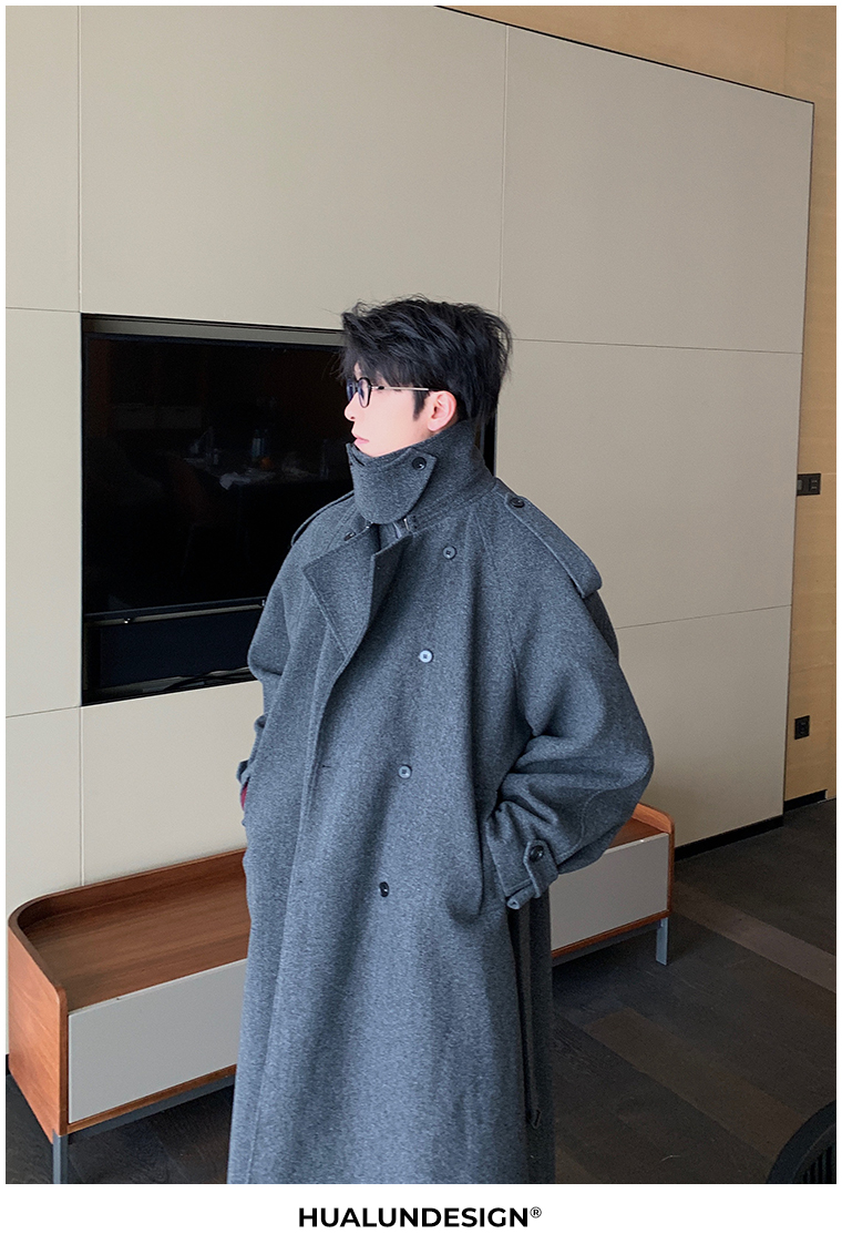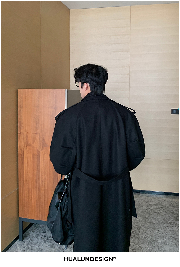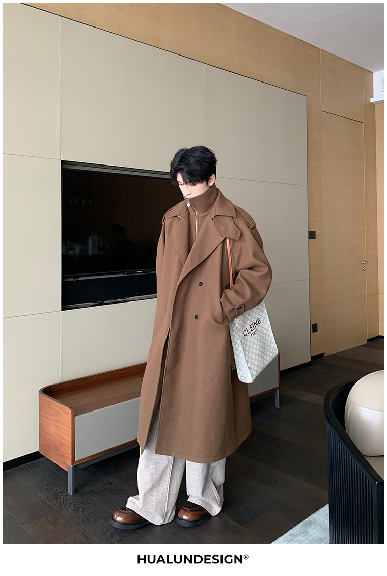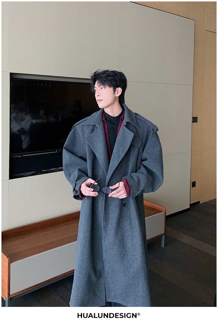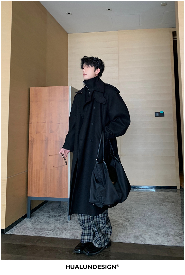 Hualun Winter Fake Two-Piece Men's Woolen Coat, Mid-Length Woolen Overcoat, High-End Warm Outerwear for Men