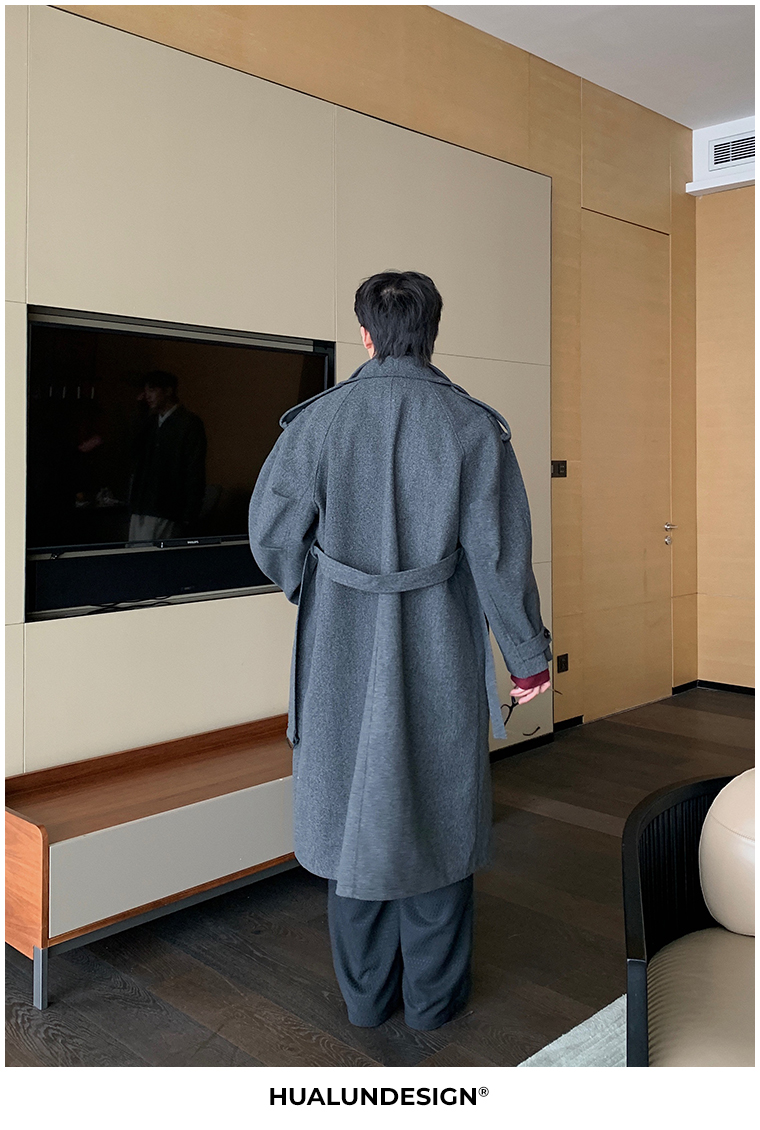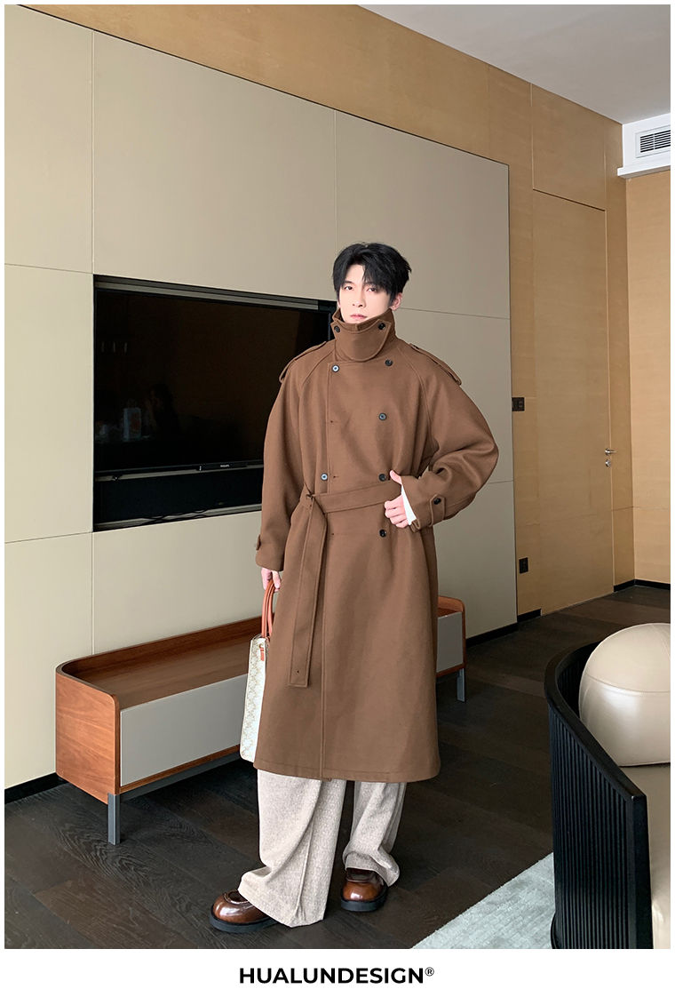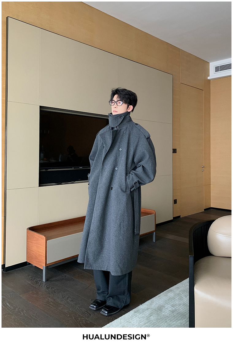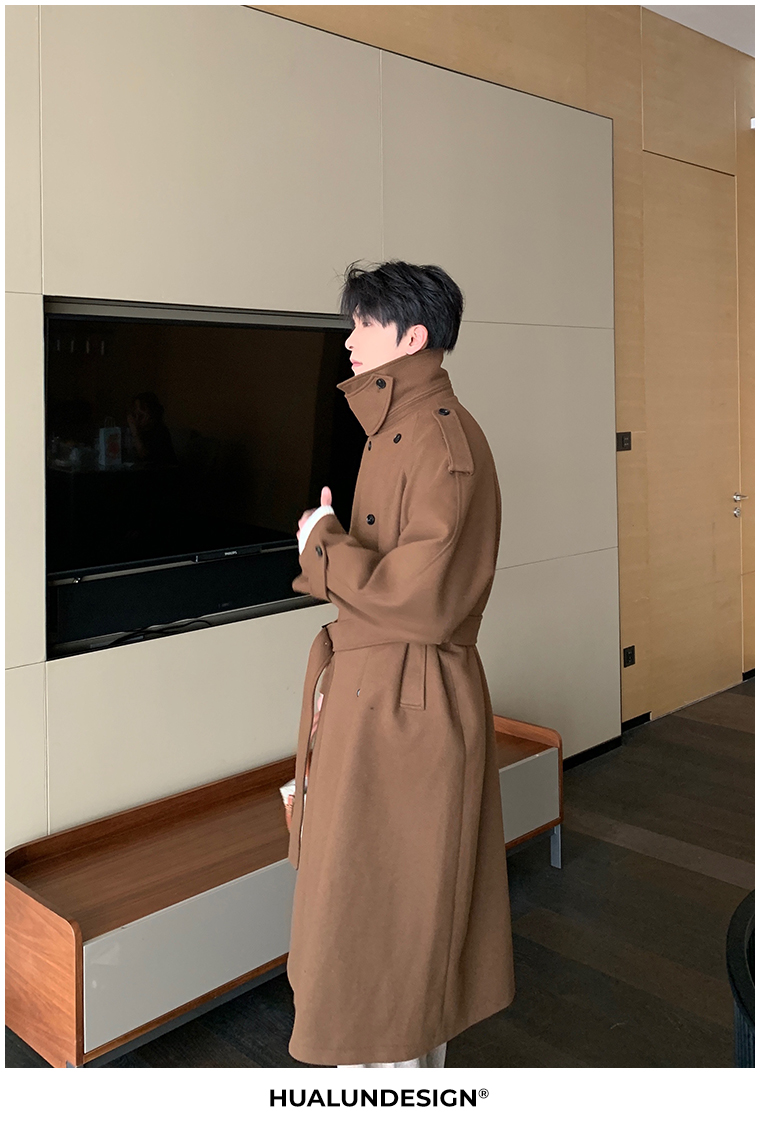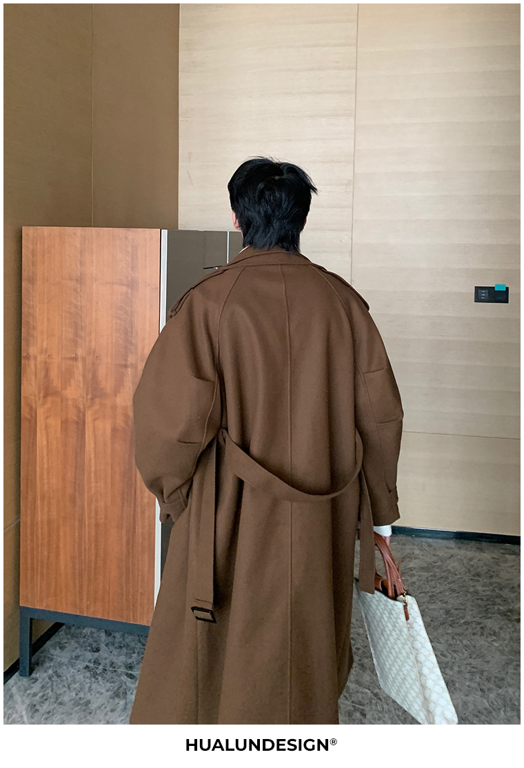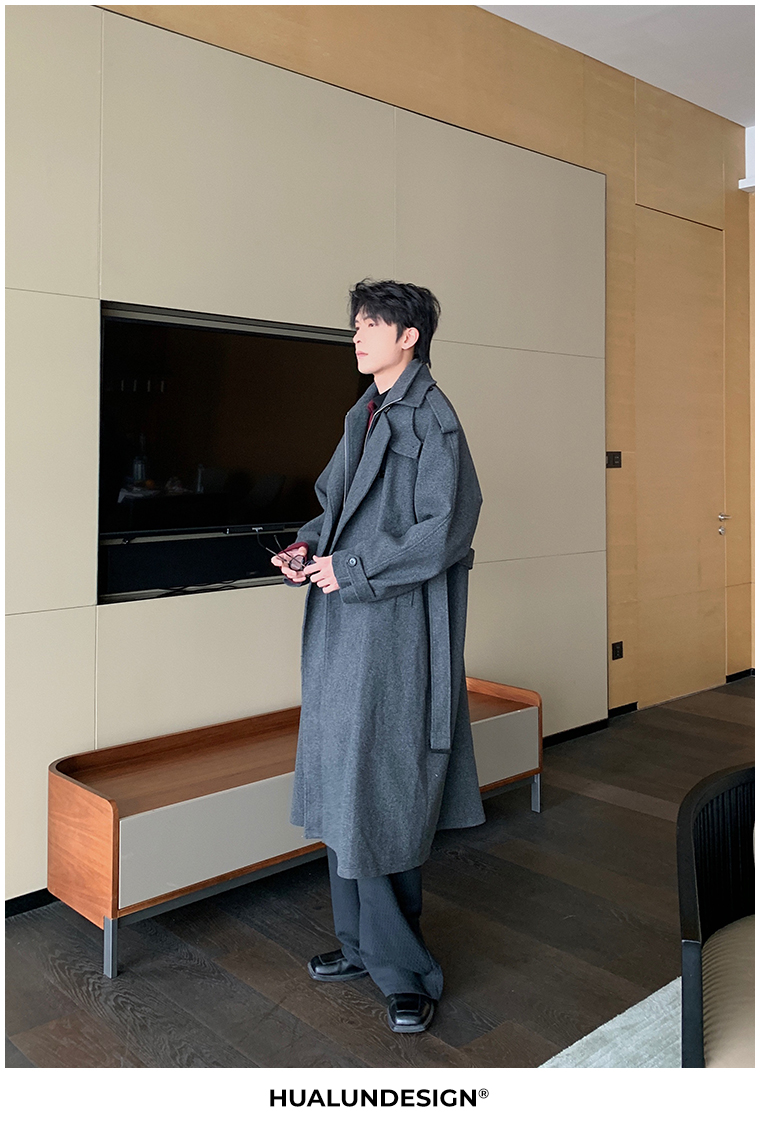 Hualun Winter Fake Two-Piece Men's Woolen Coat, Mid-Length Woolen Overcoat, High-End Warm Outerwear for Men