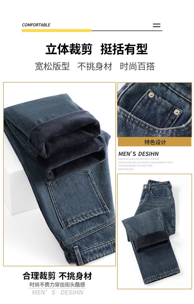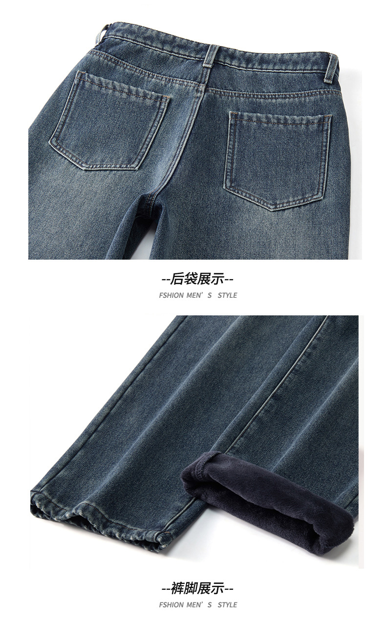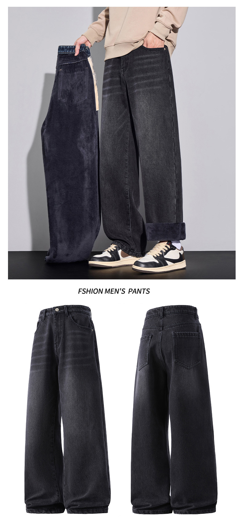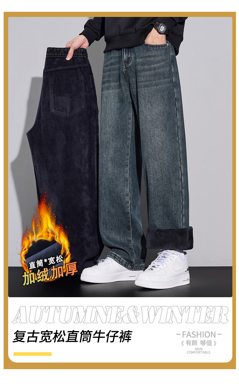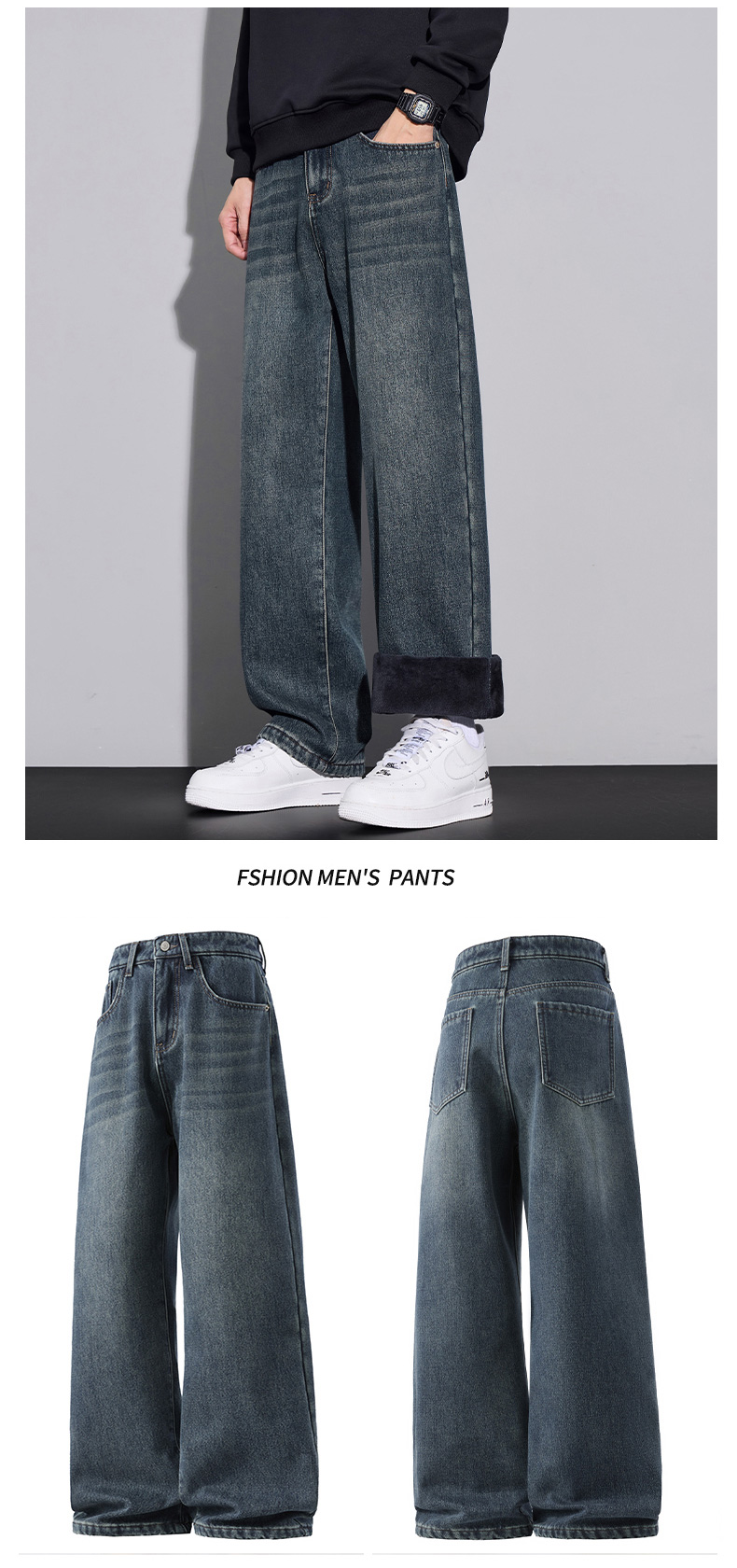 Fleece-Lined Thickened Men's Jeans, Autumn and Winter 2025 New American Style Trendy Retro Loose Straight Casual Long Pants