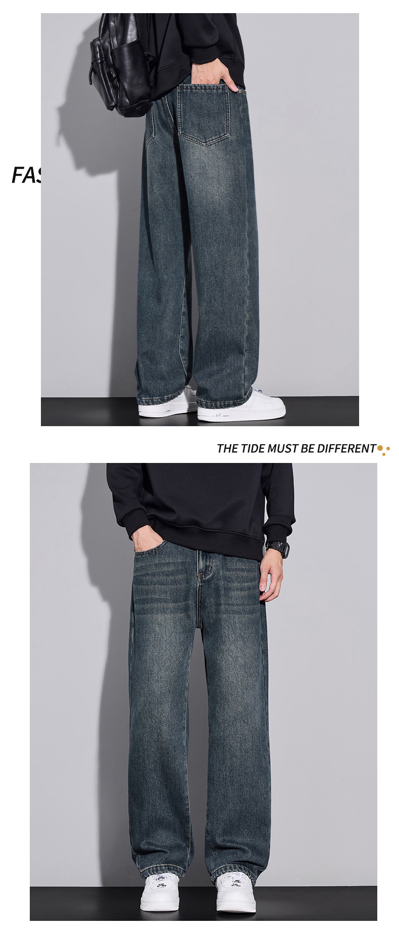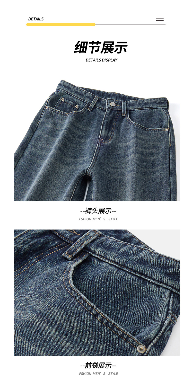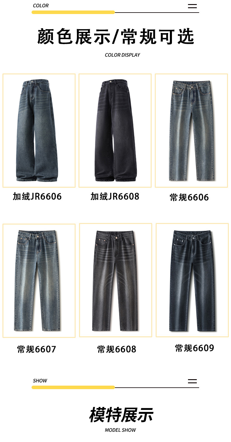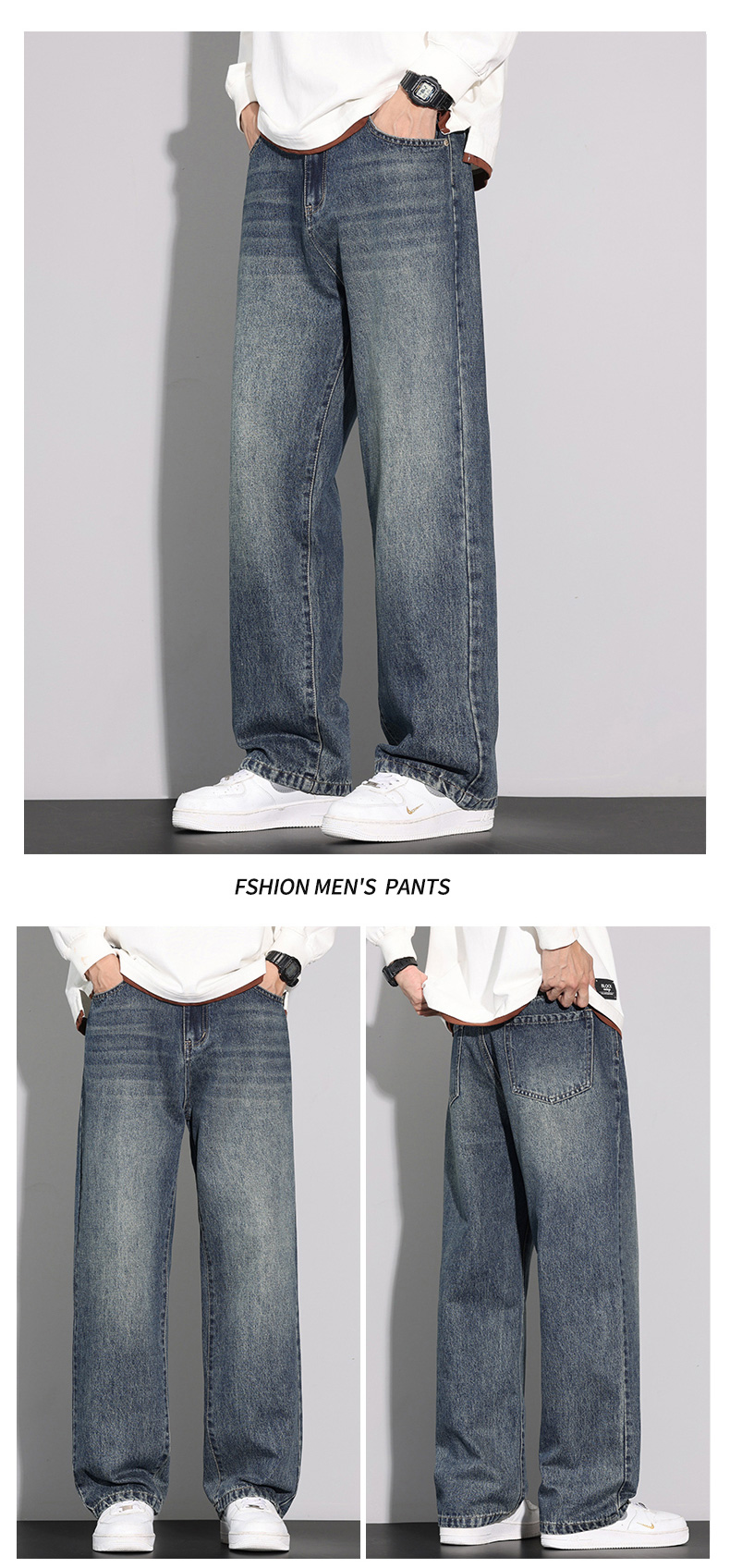 Fleece-Lined Thickened Men's Jeans, Autumn and Winter 2025 New American Style Trendy Retro Loose Straight Casual Long Pants