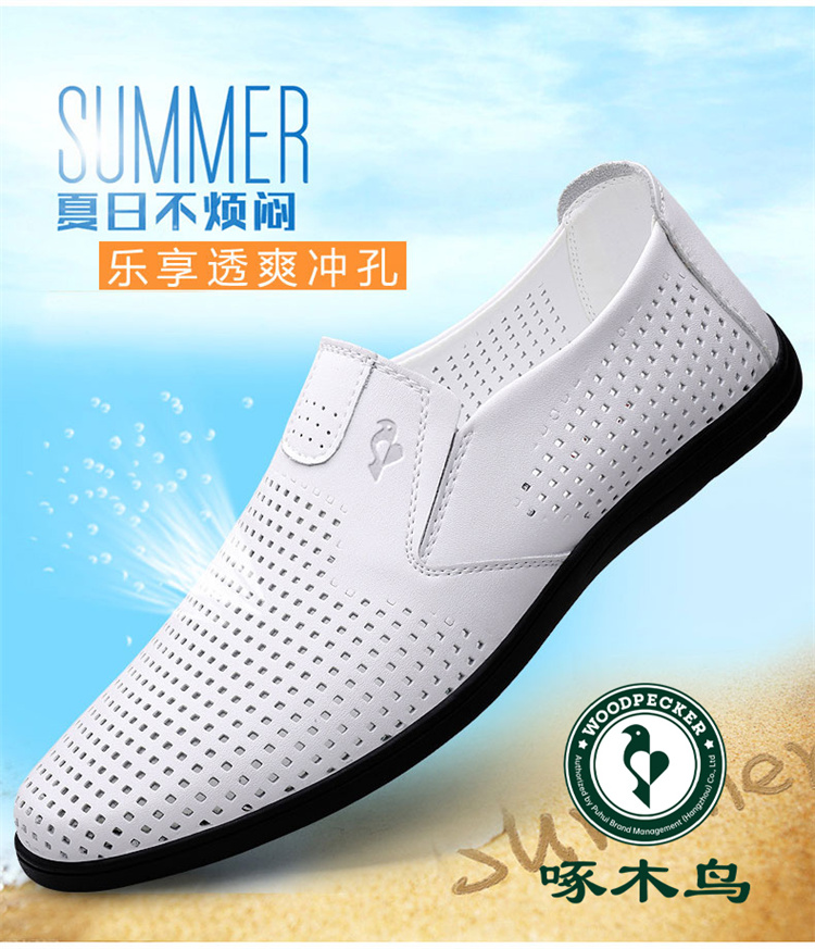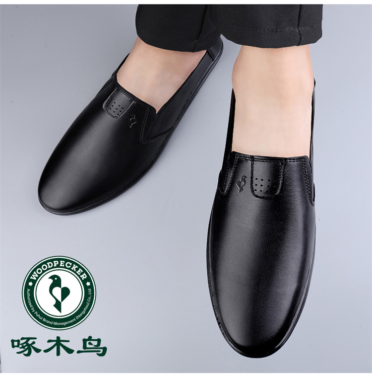 Woodpecker Men's Shoes Genuine Leather Breathable Leather Shoes Men's Business Easiest for match Soft Leather Soft Sole Slip-on Bean Bag Shoes Fleece-lined