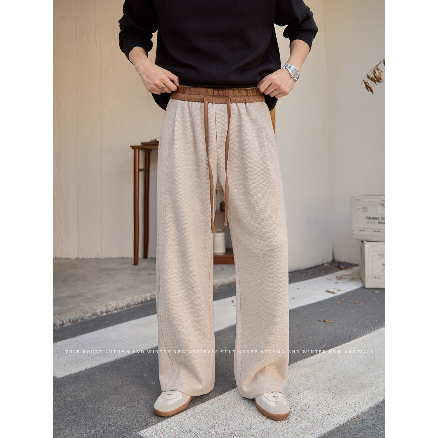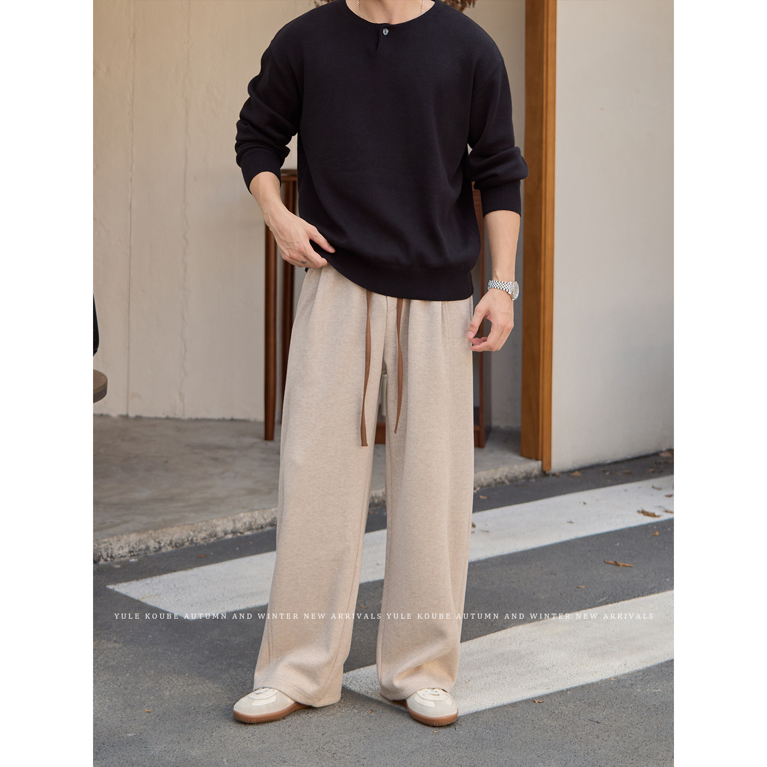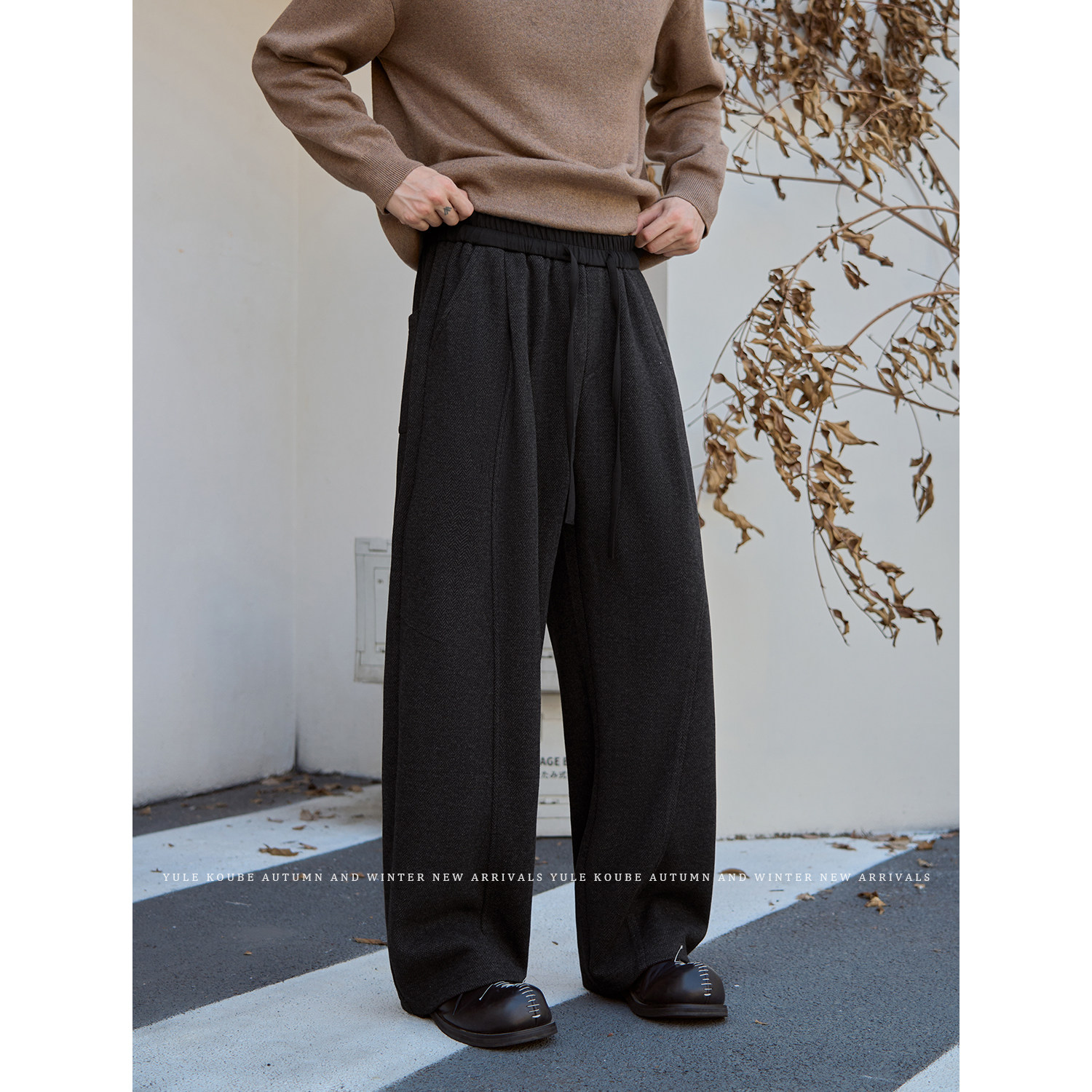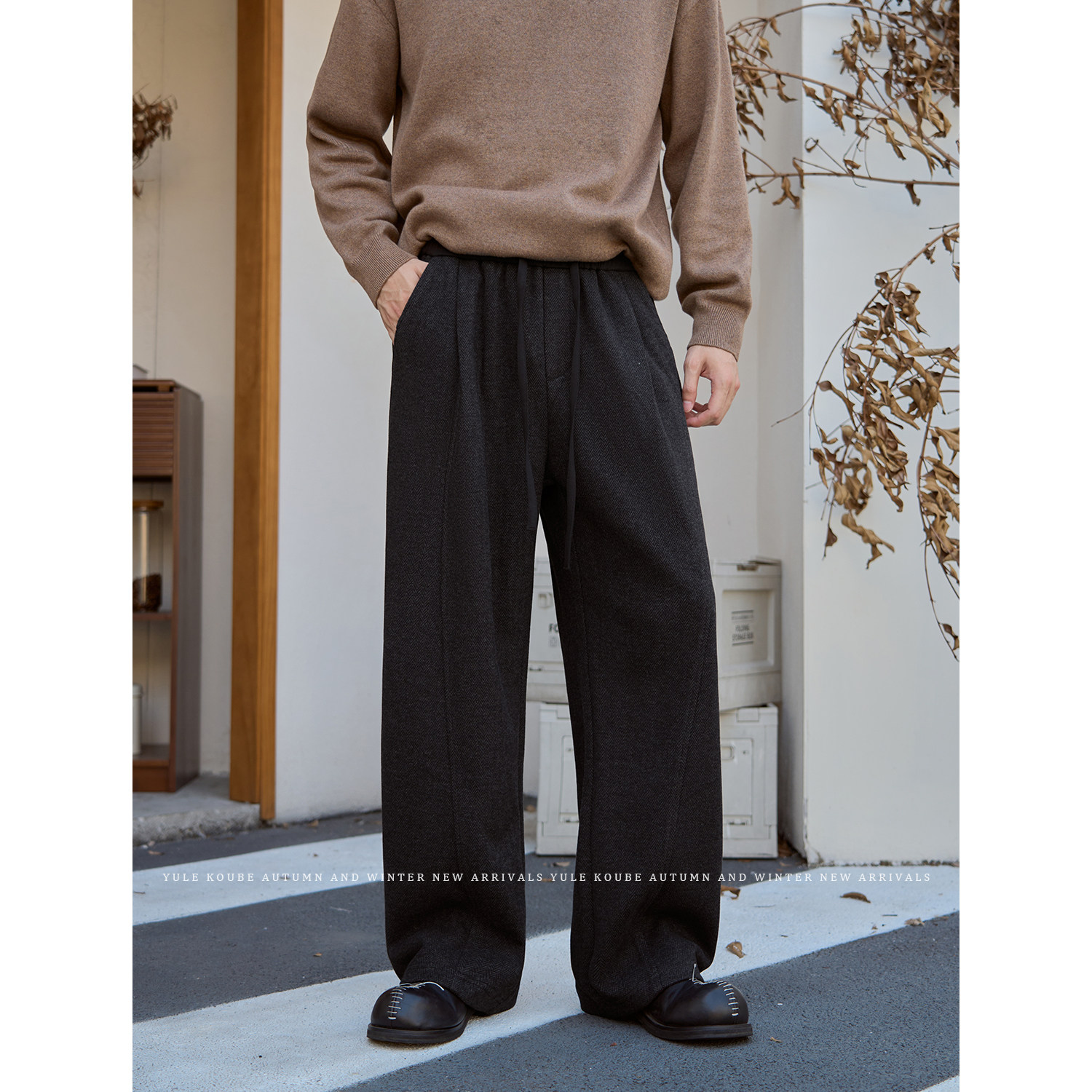 Koube Curved Silhouette Herringbone Pattern Autumn and Winter High-End Wide-Leg Loose Casual Pants Men's Thickened Knit Sweatpants