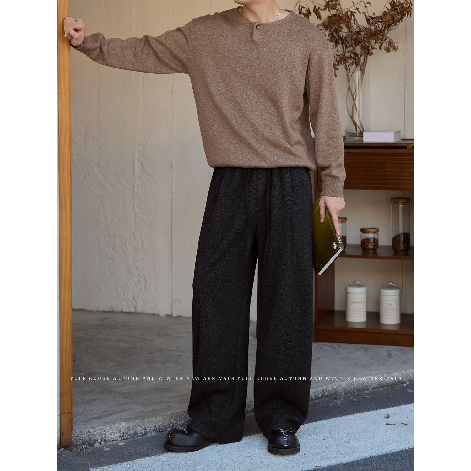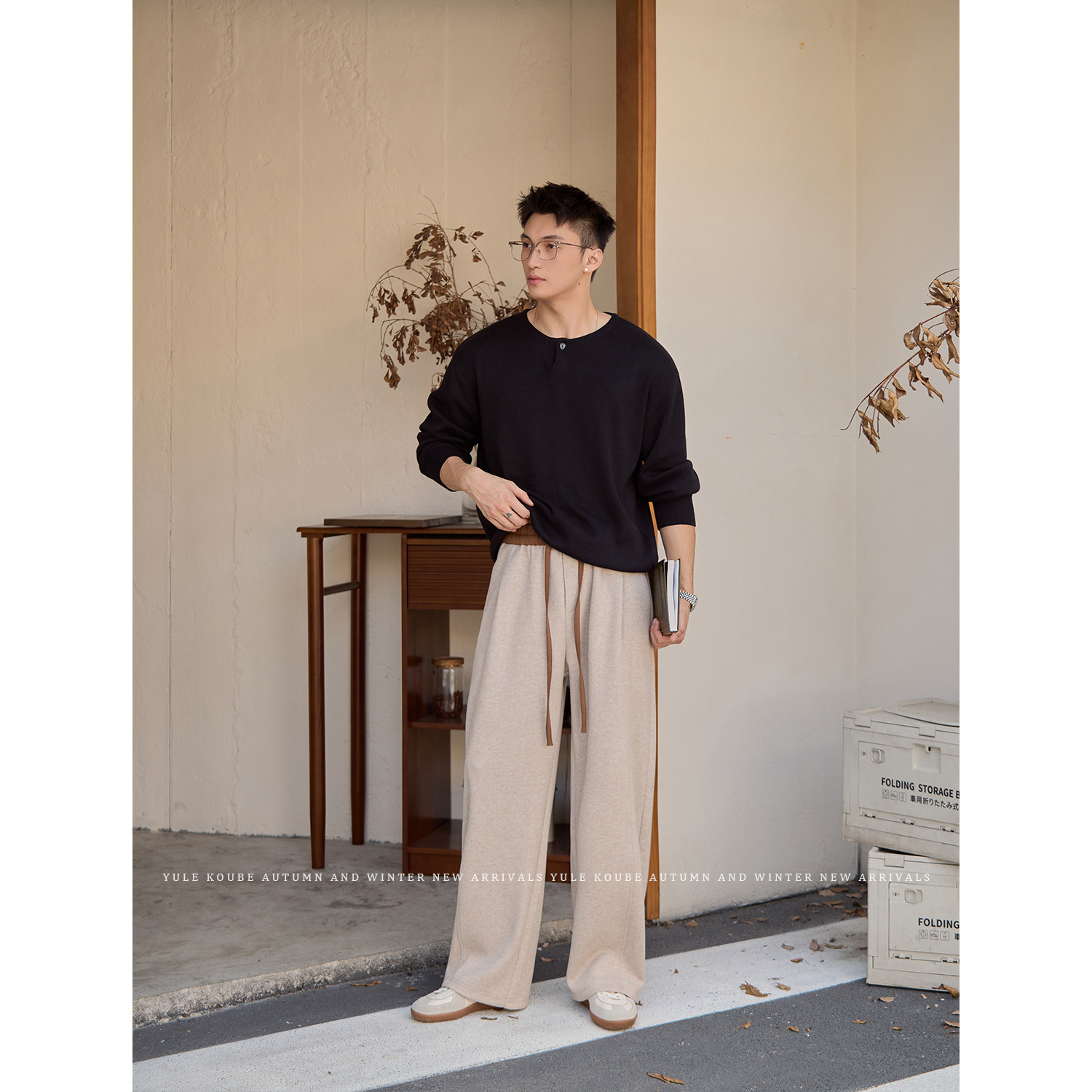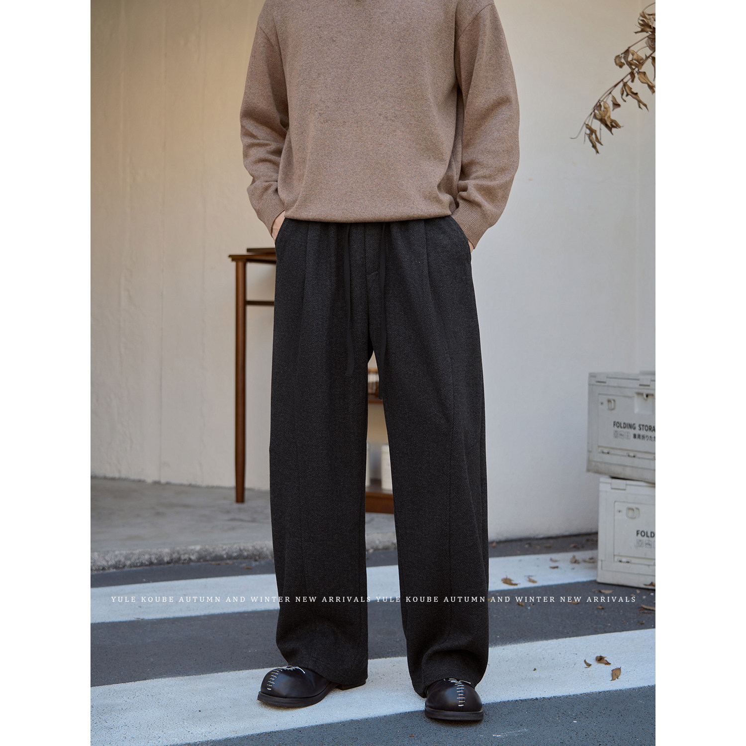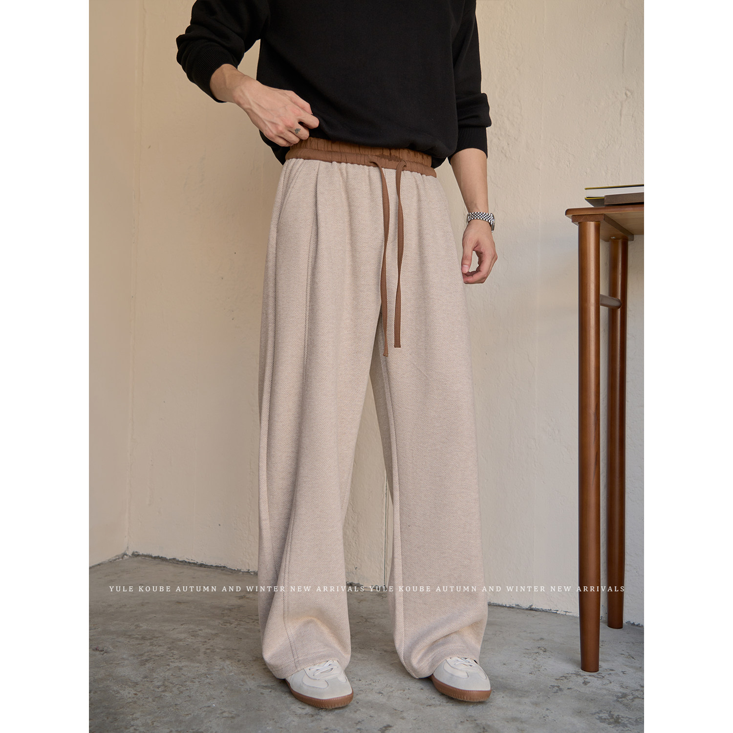 Koube Curved Silhouette Herringbone Pattern Autumn and Winter High-End Wide-Leg Loose Casual Pants Men's Thickened Knit Sweatpants