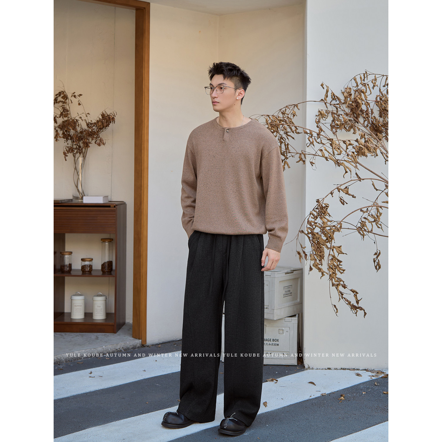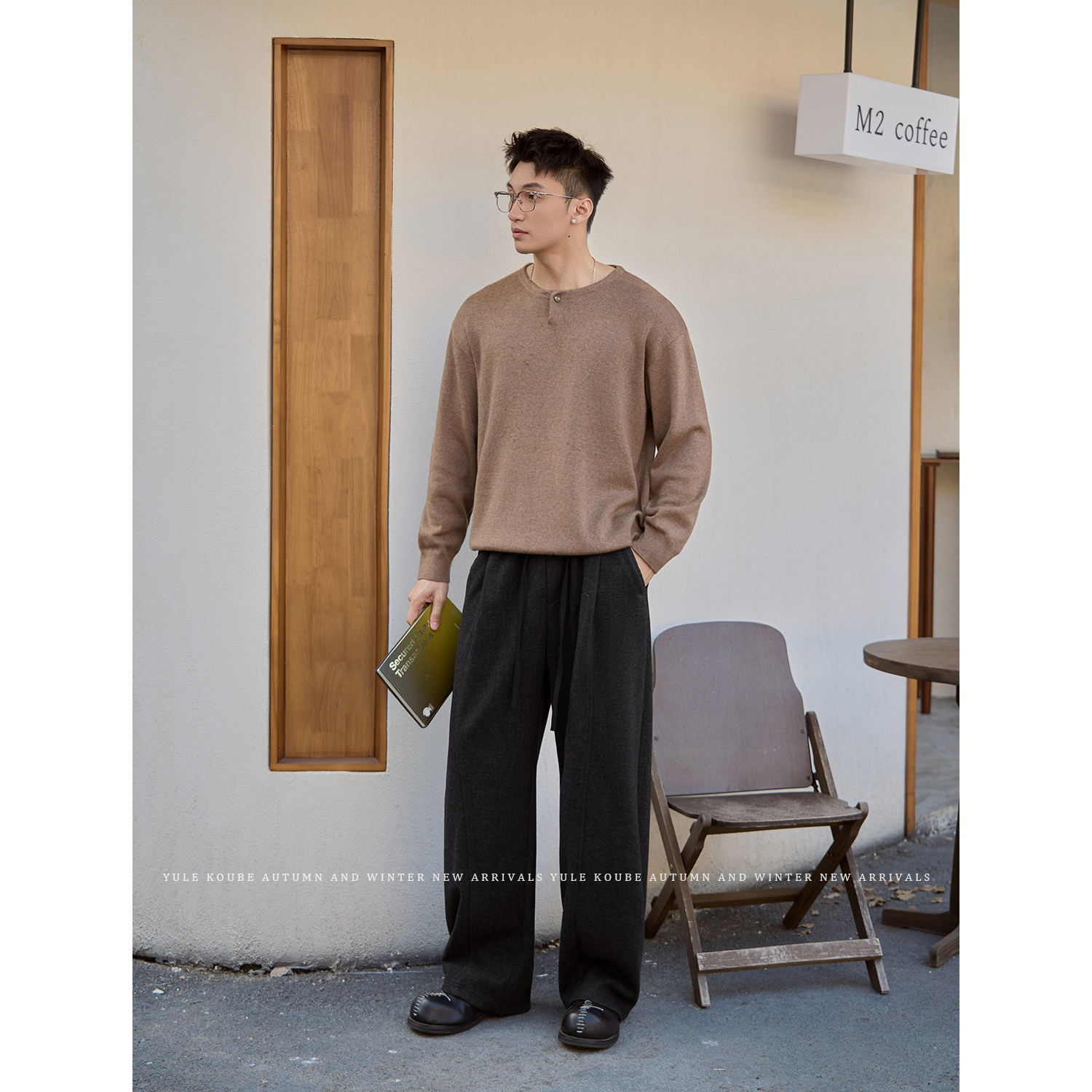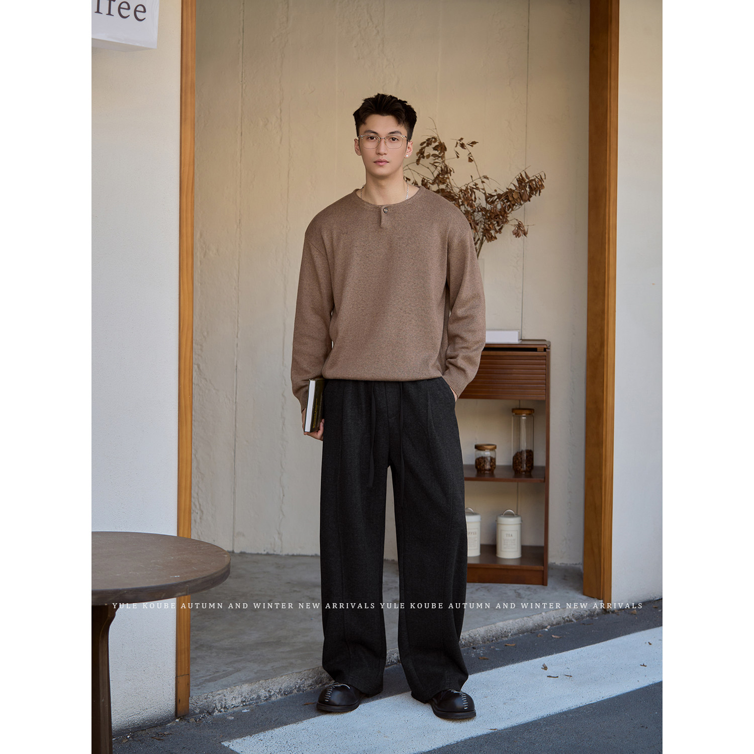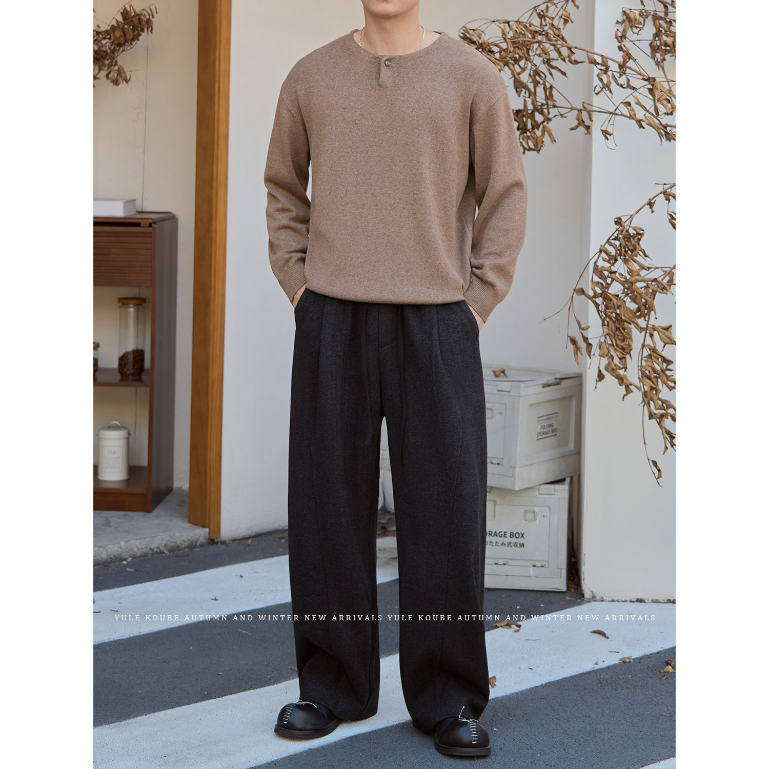 Koube Curved Silhouette Herringbone Pattern Autumn and Winter High-End Wide-Leg Loose Casual Pants Men's Thickened Knit Sweatpants