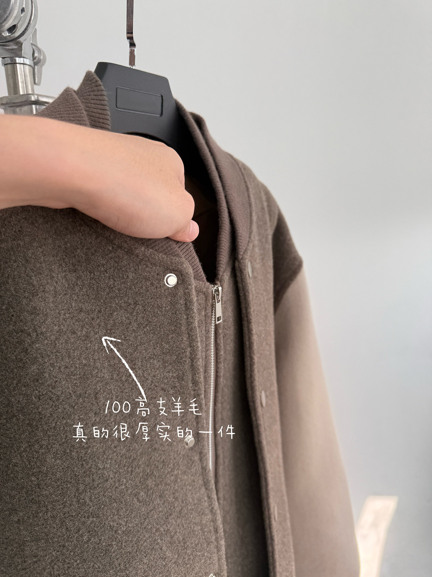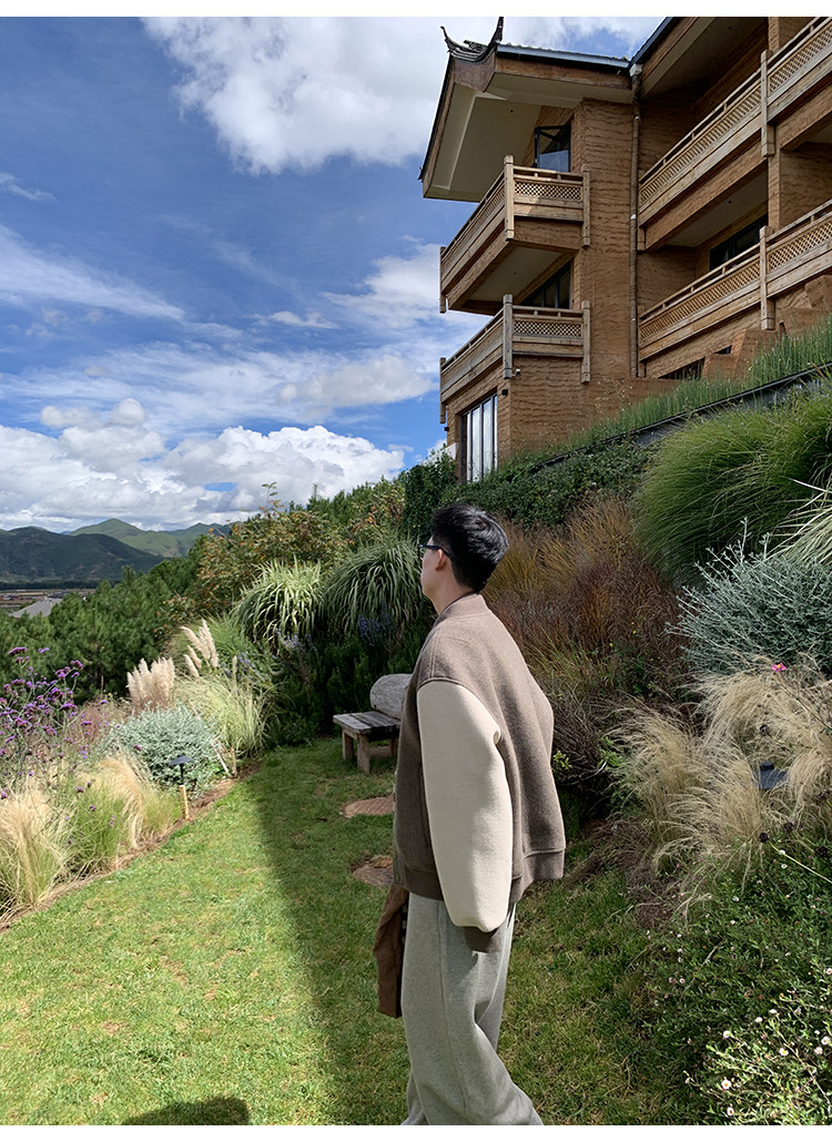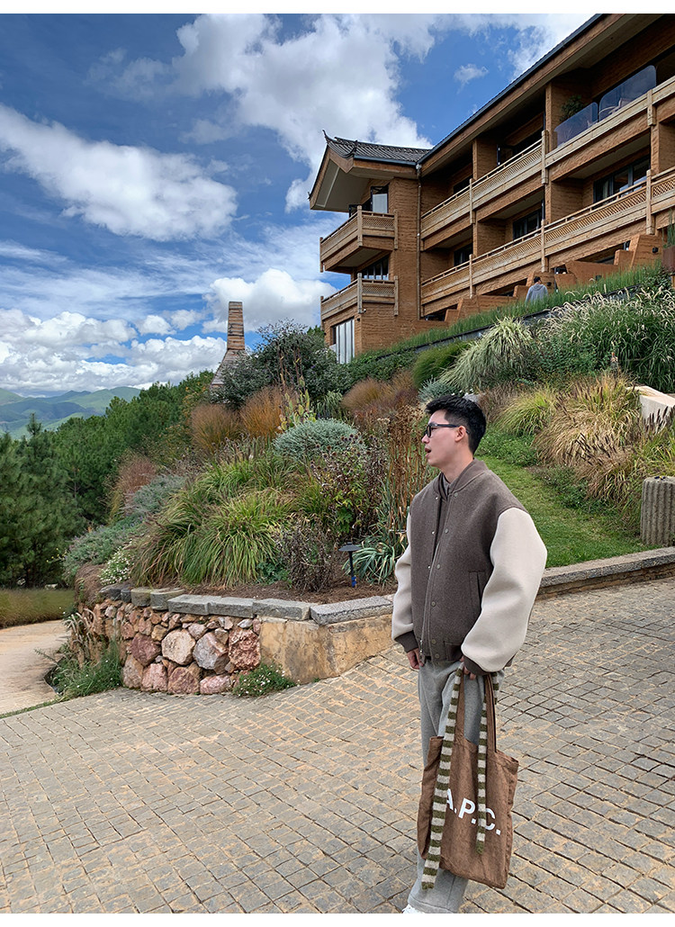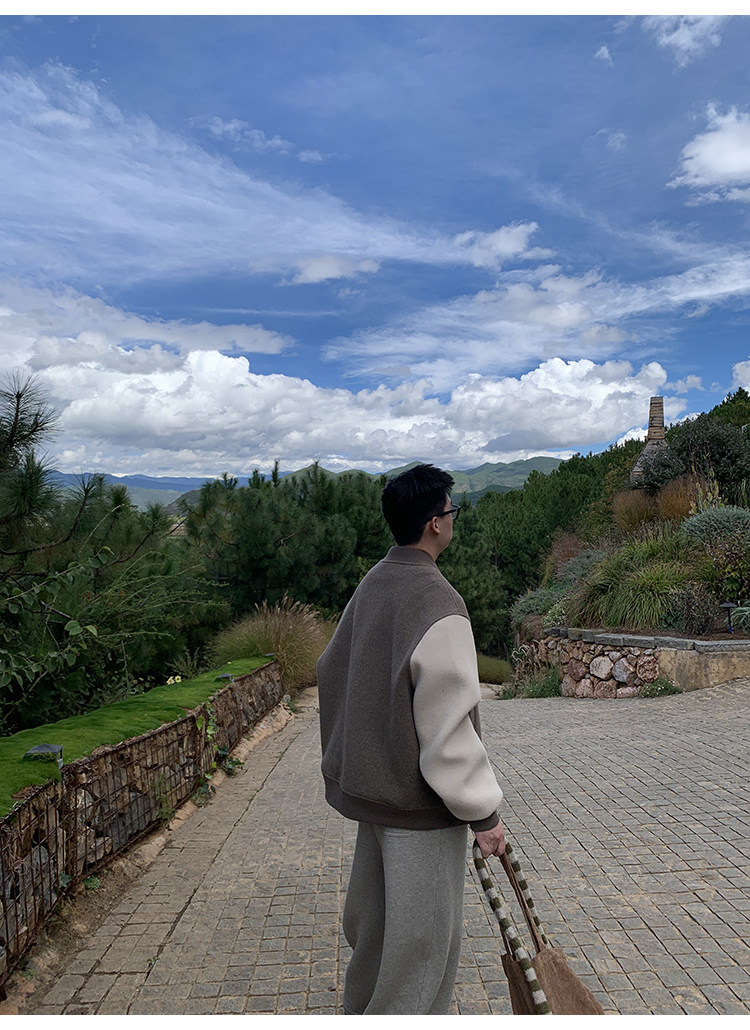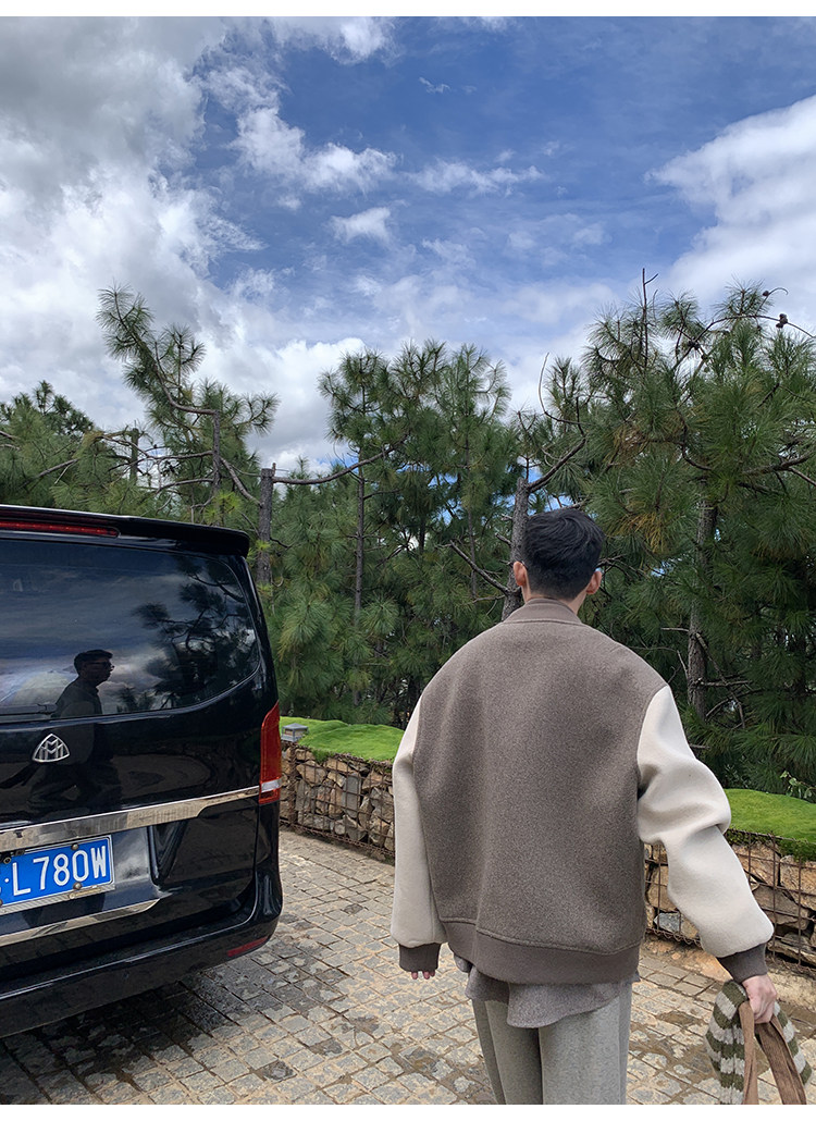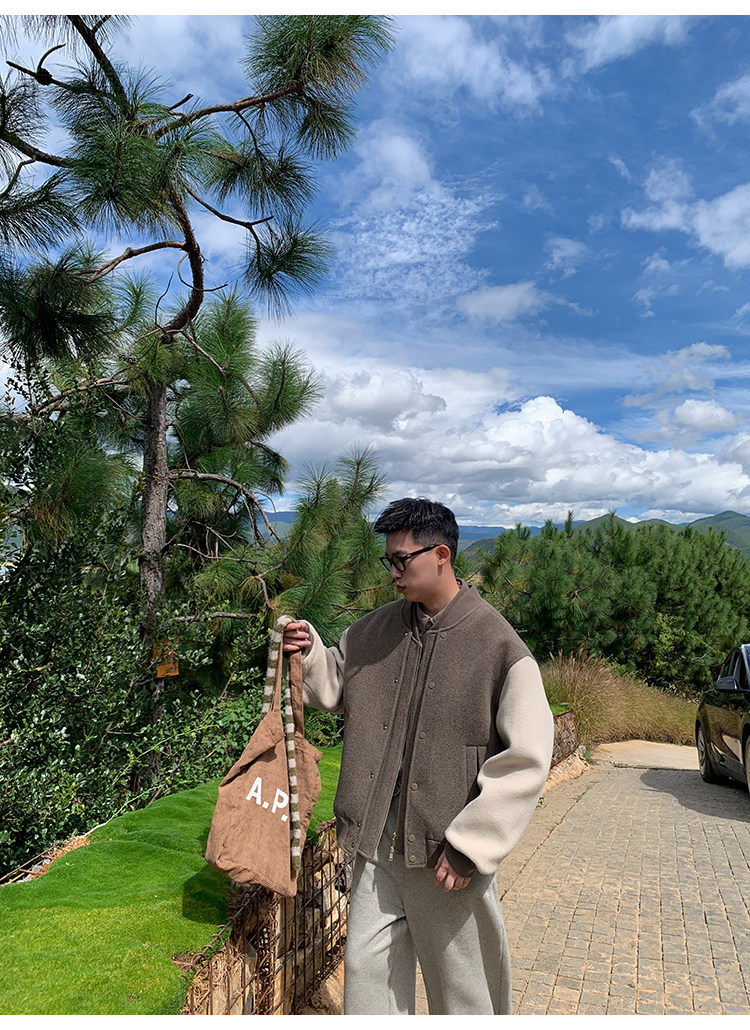 American Retro 100 High-Count Wool Patchwork Color-Block Thickened Baseball Jacket for Men, Autumn and Winter Warm Casual Coat