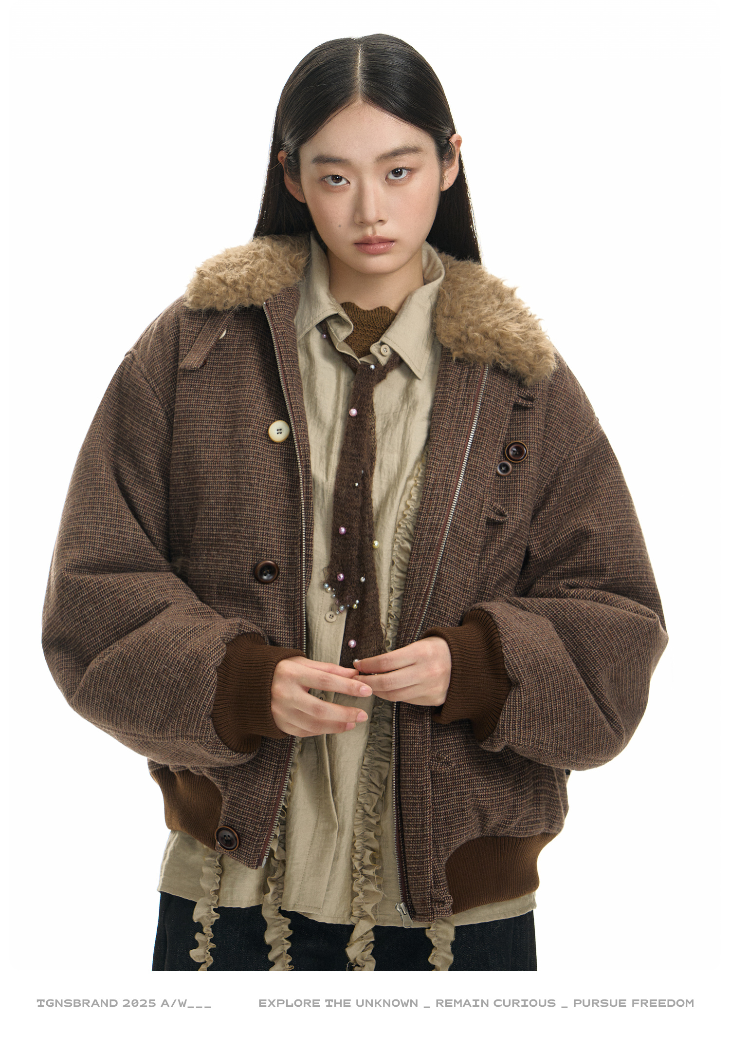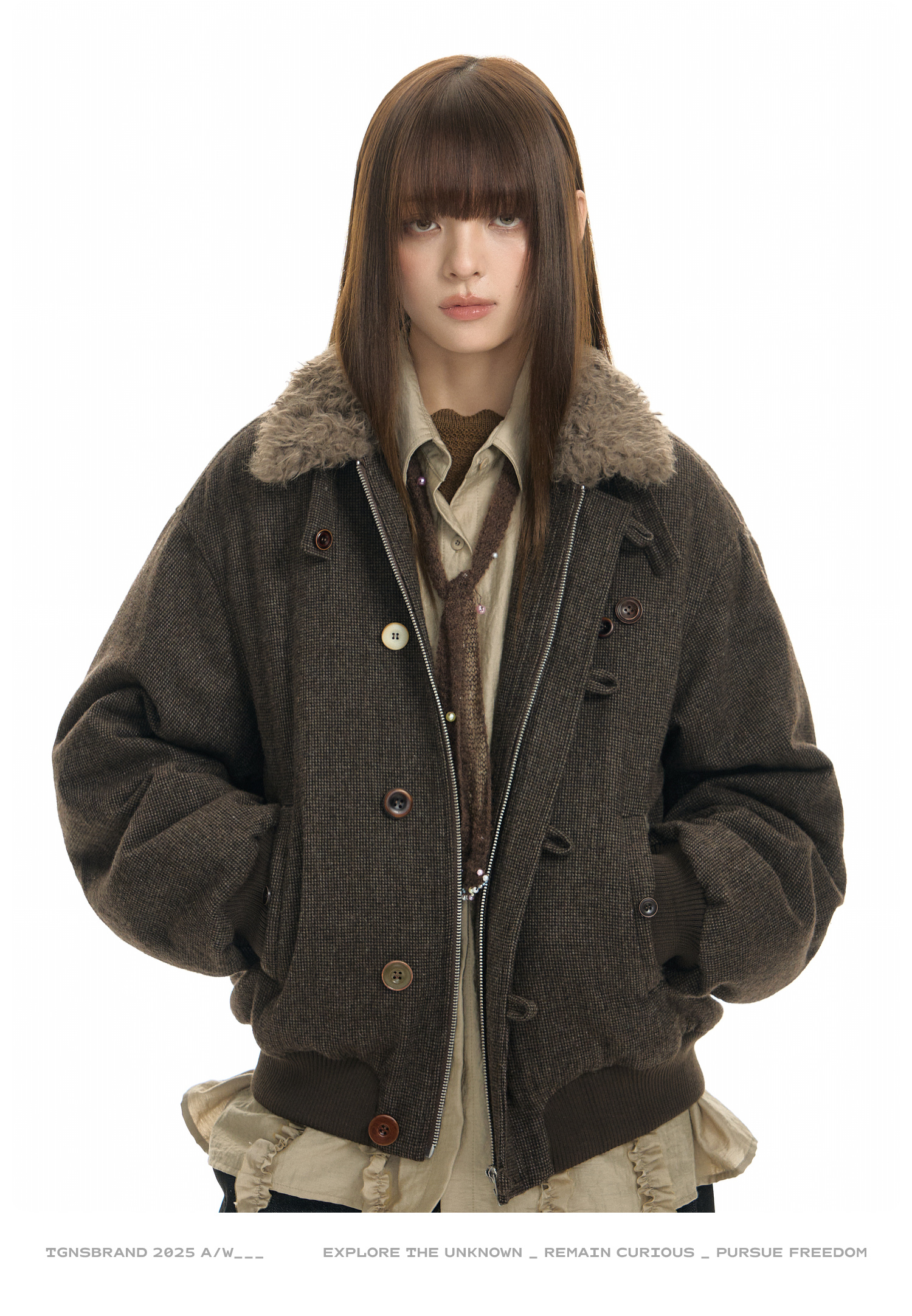 Tgns Imitation Lamb Wool Lapel Thick Coat for Women, Winter Warm Cotton Coat for Men, American Retro Cotton Jacket, Casual Top