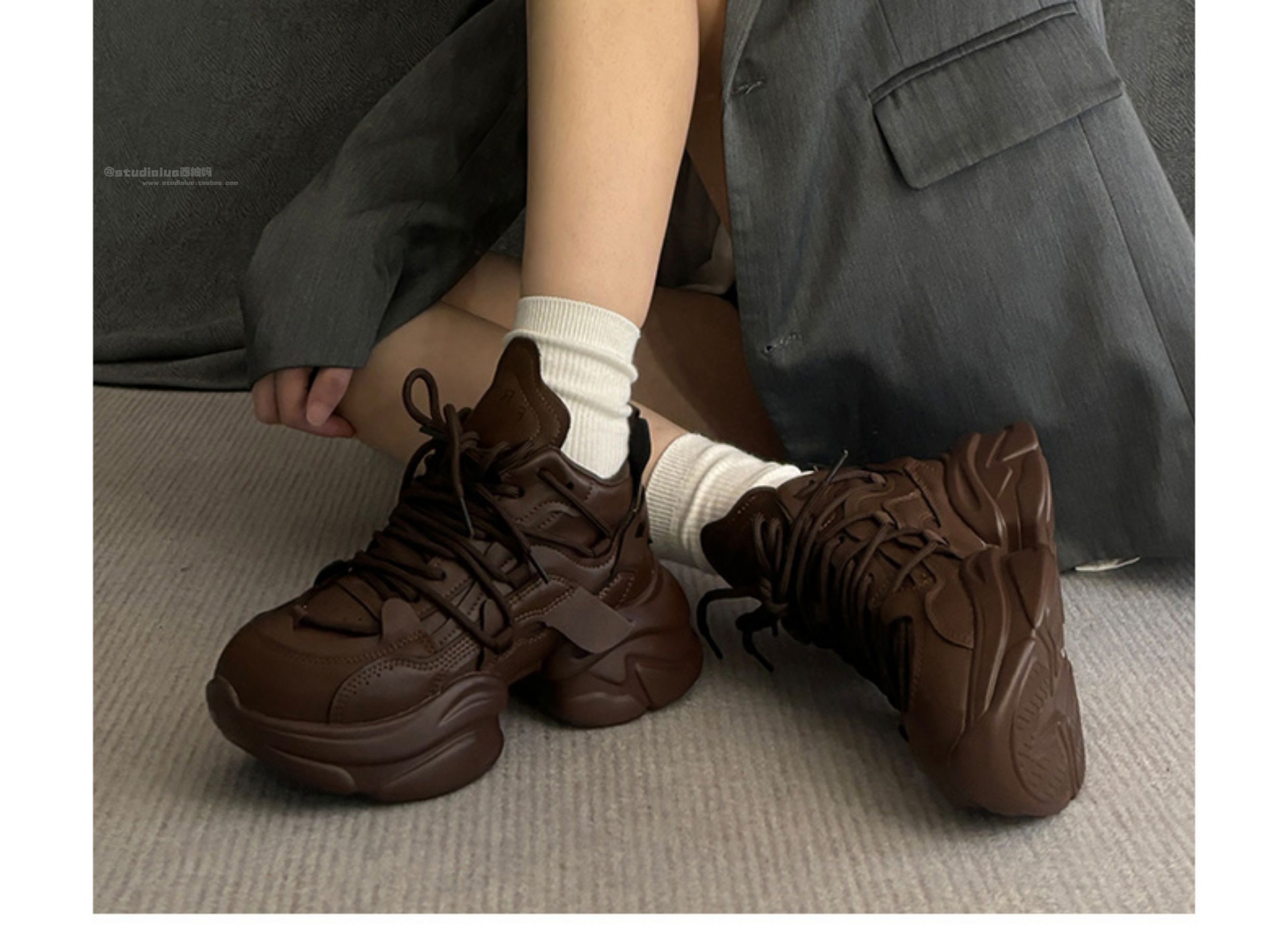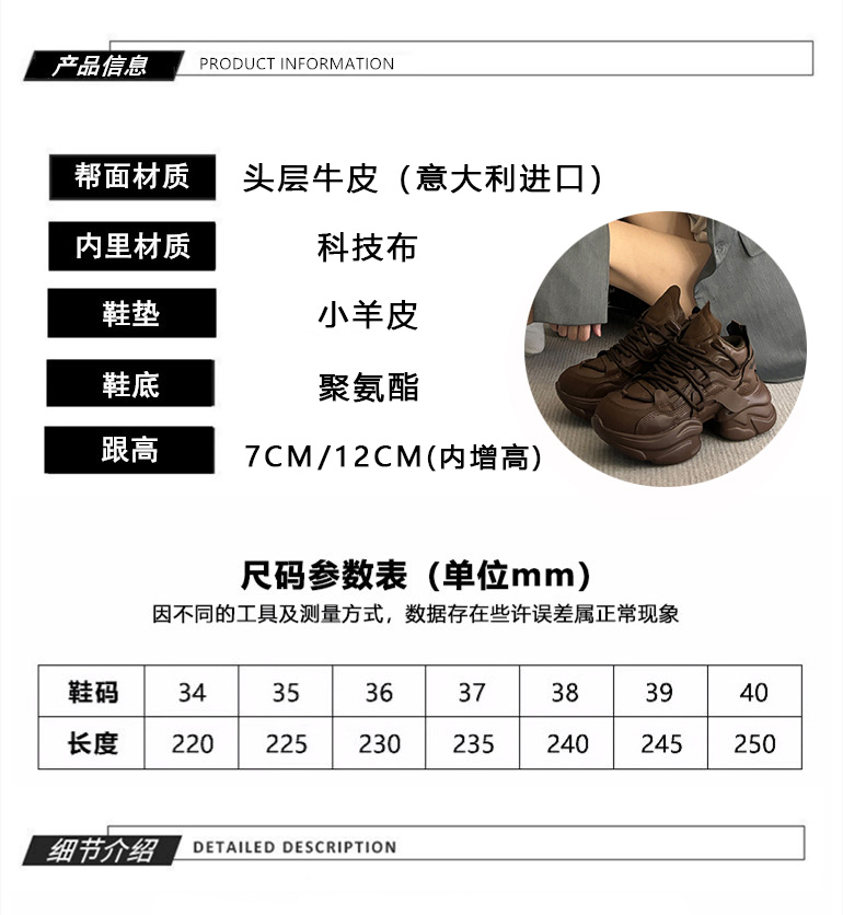 Hong Kong Invisible Height-Increasing Platform Dad Shoes for Women, 2025 Autumn New Genuine Leather Thick-Soled Popular Sneakers for Petite Individuals