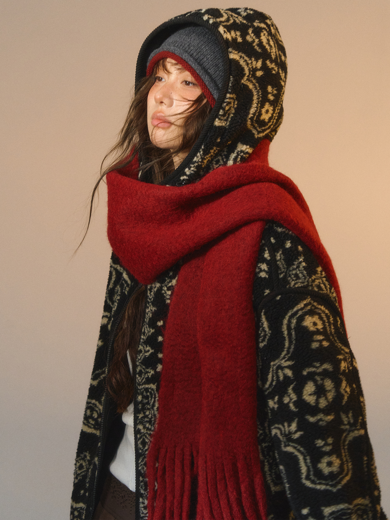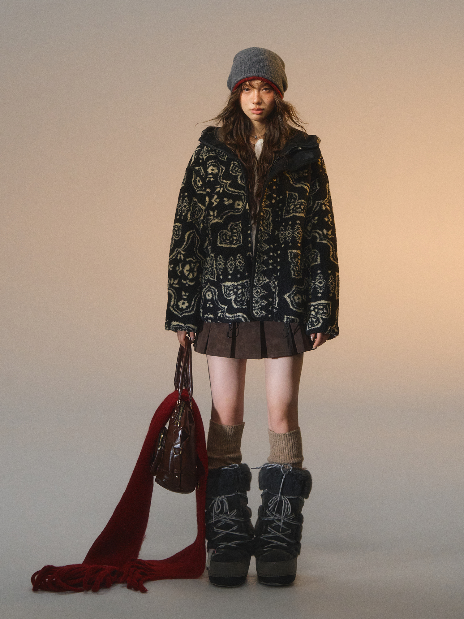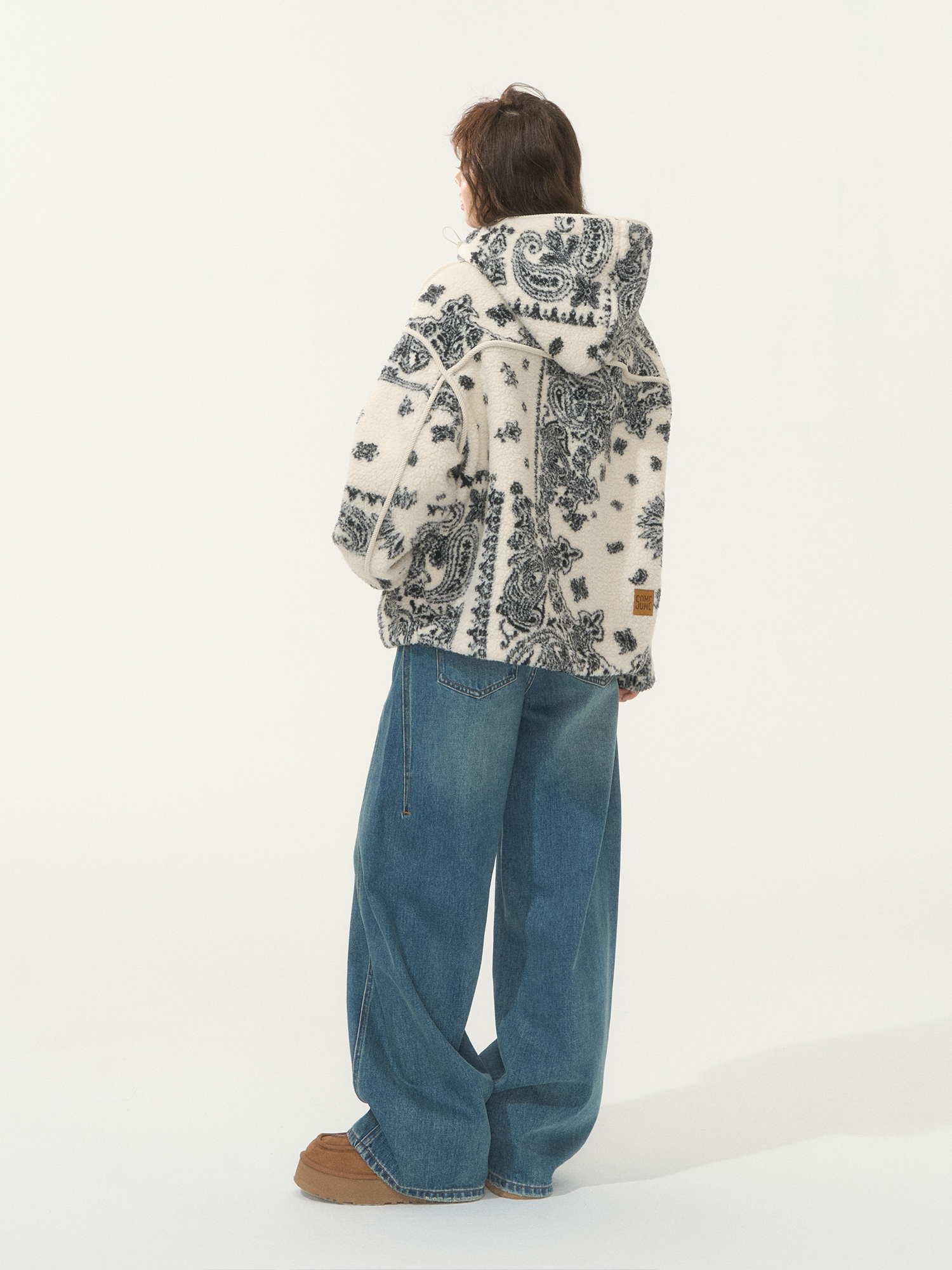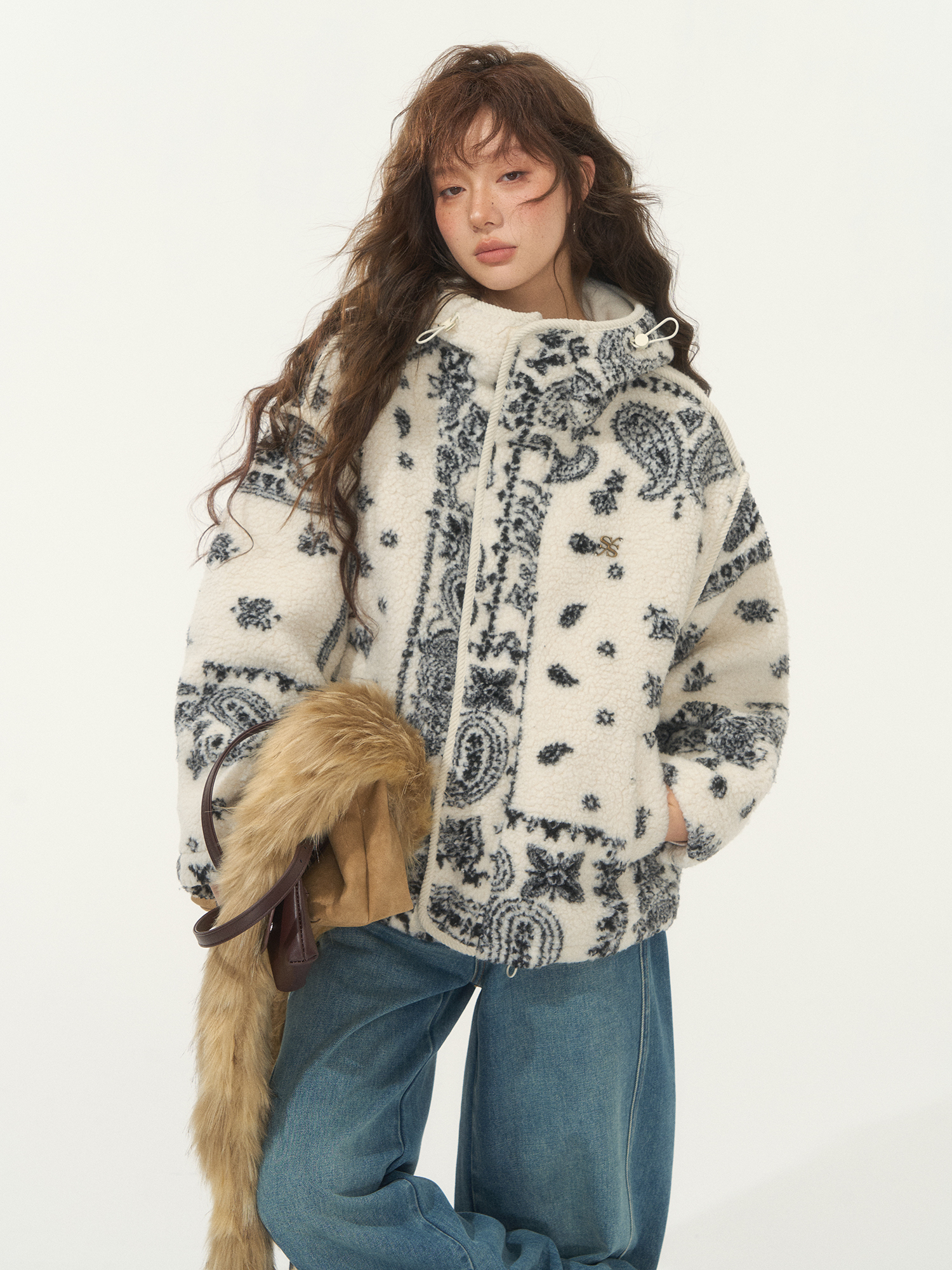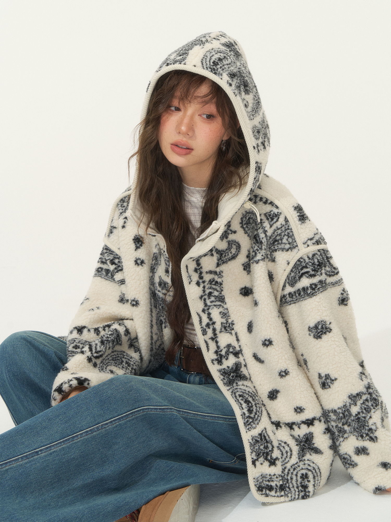 Somesowe Jacquard Polar Fleece Hooded Casual Jacket