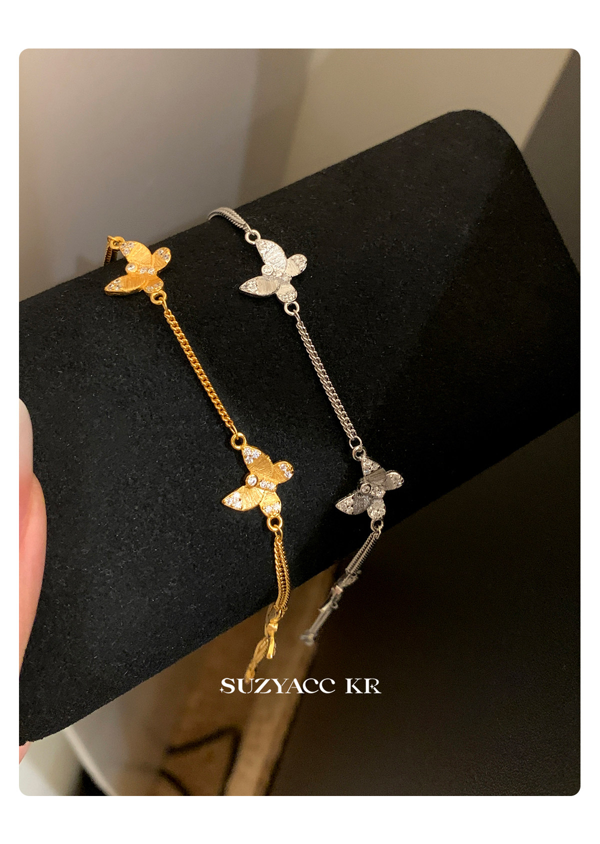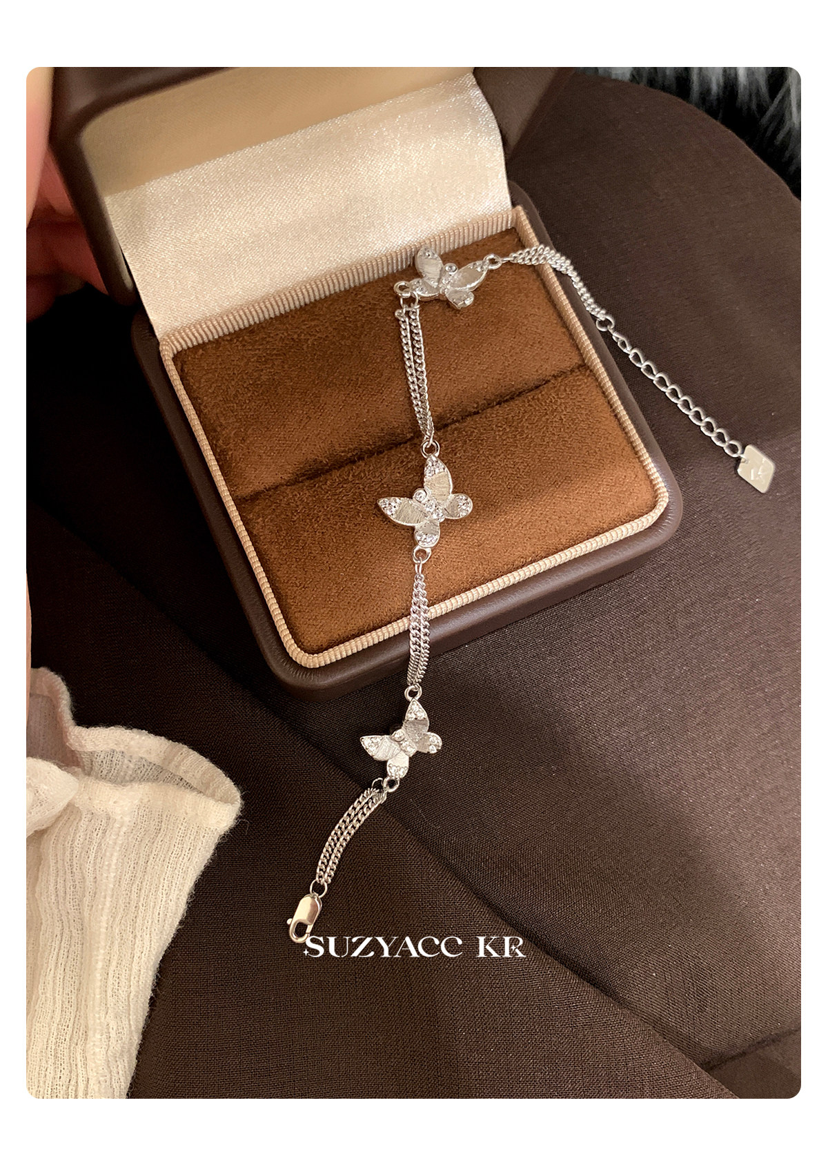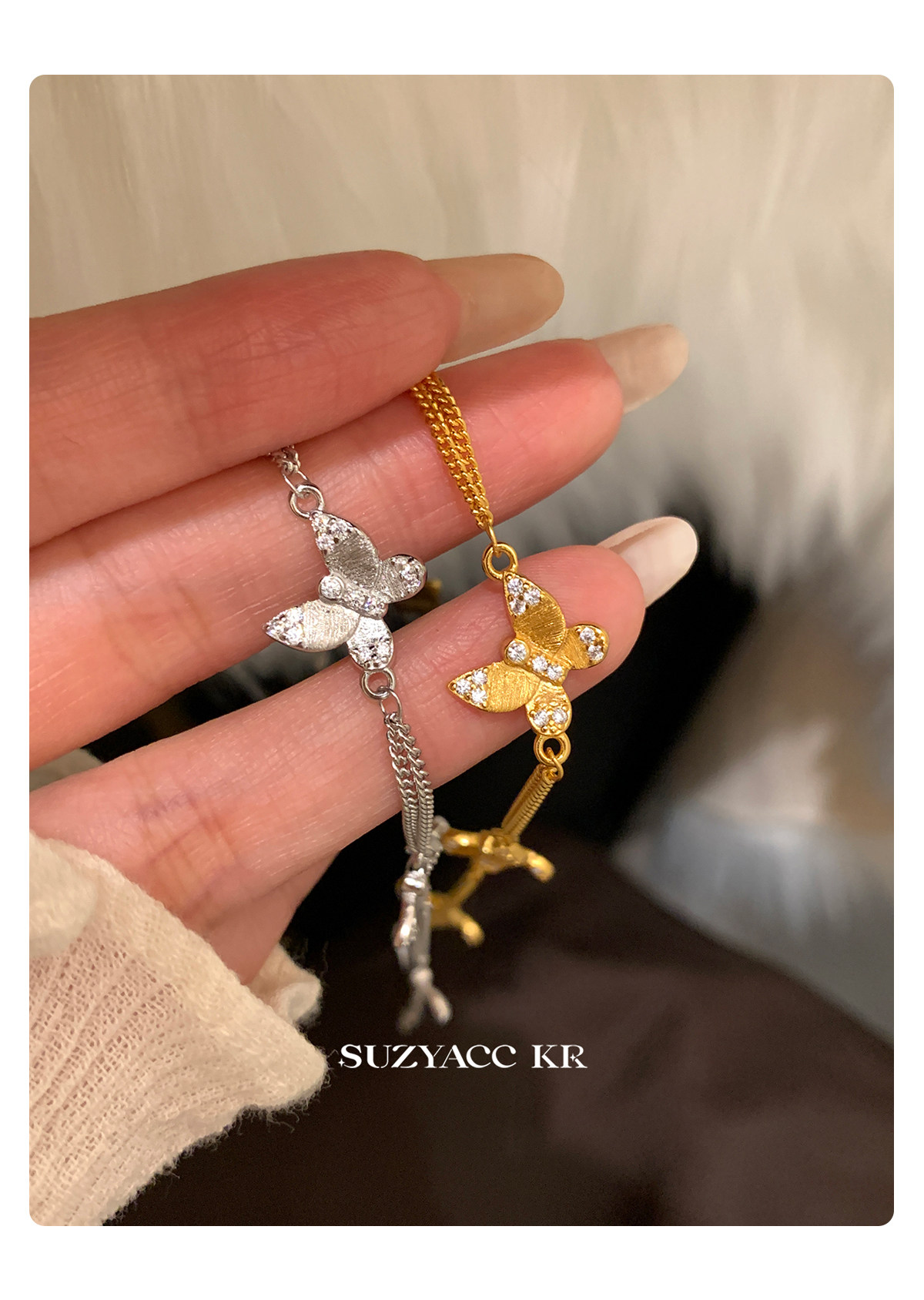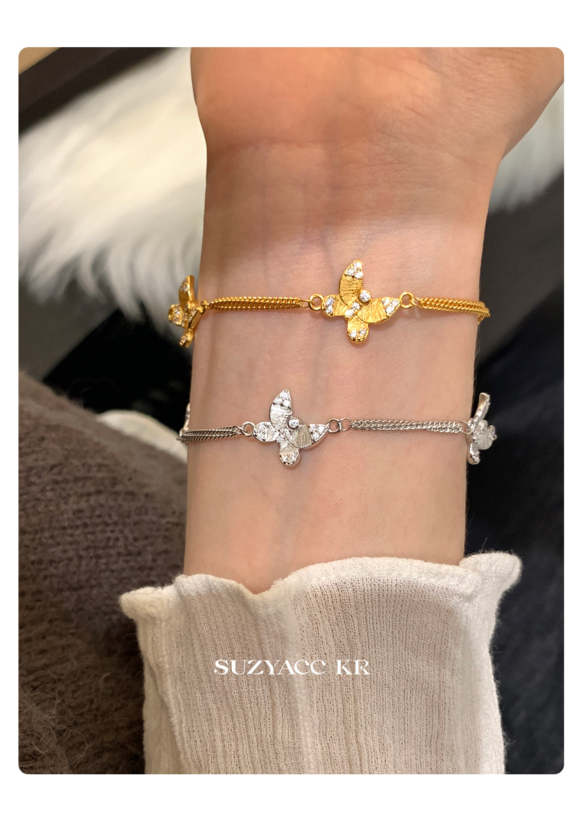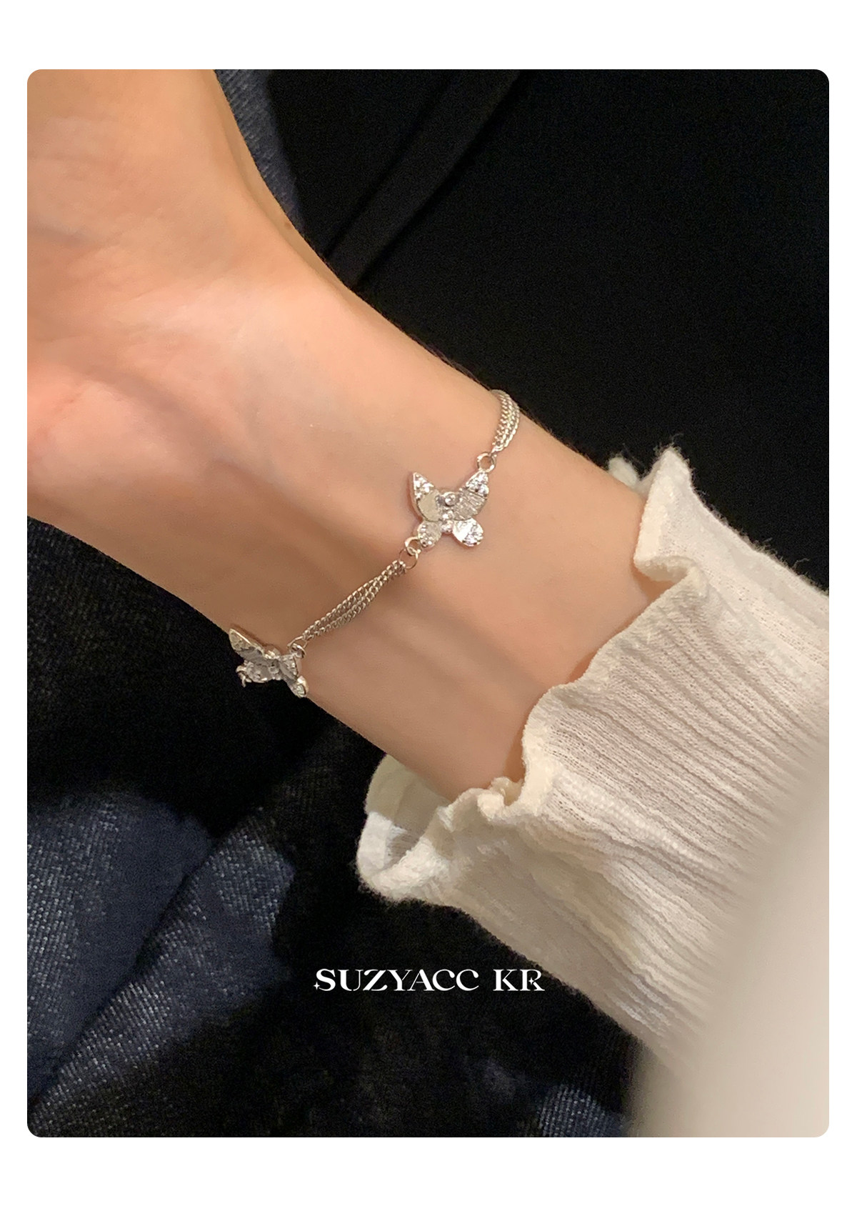 Suzyacc Kr Pure Silver Jewelry, Finely Crafted with Diamonds, Brushed Butterfly Bracelet, Light Luxury Niche Design, Heavy Craftsmanship Hand Accessory