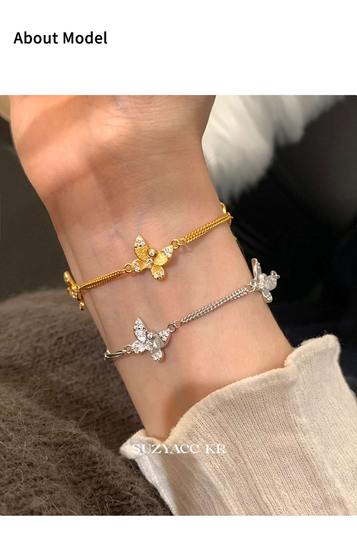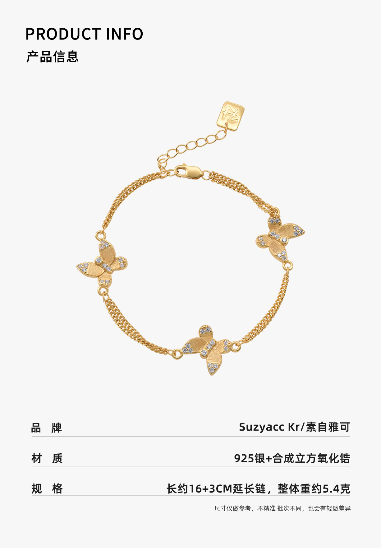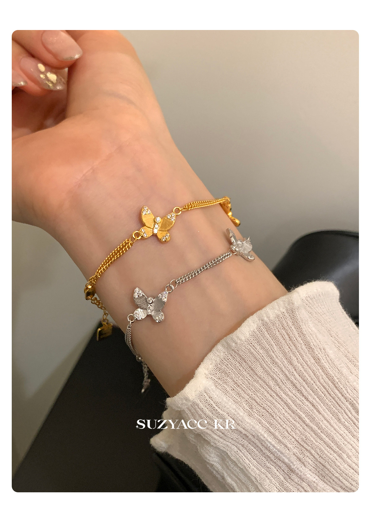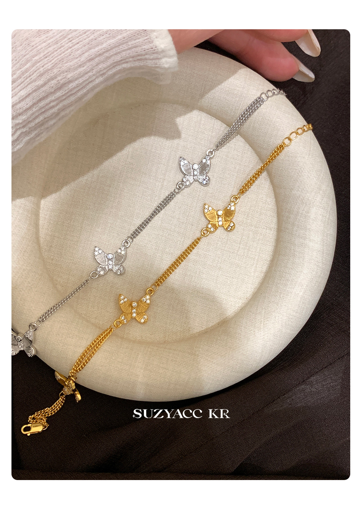 Suzyacc Kr Pure Silver Jewelry, Finely Crafted with Diamonds, Brushed Butterfly Bracelet, Light Luxury Niche Design, Heavy Craftsmanship Hand Accessory