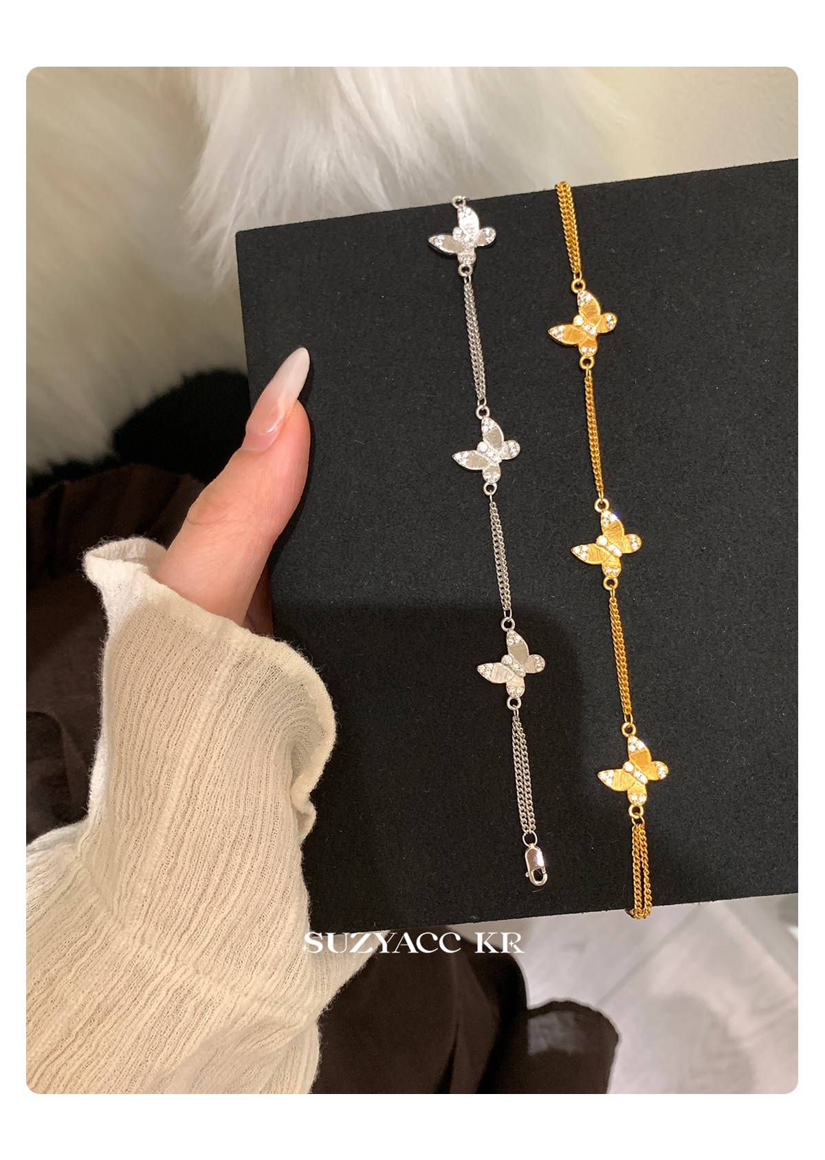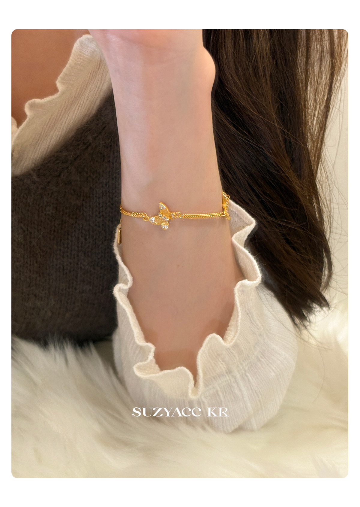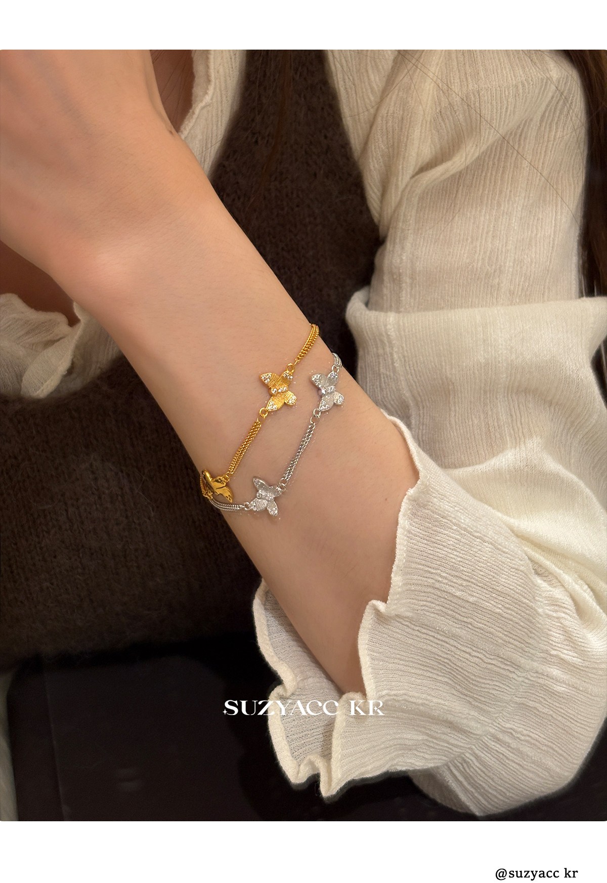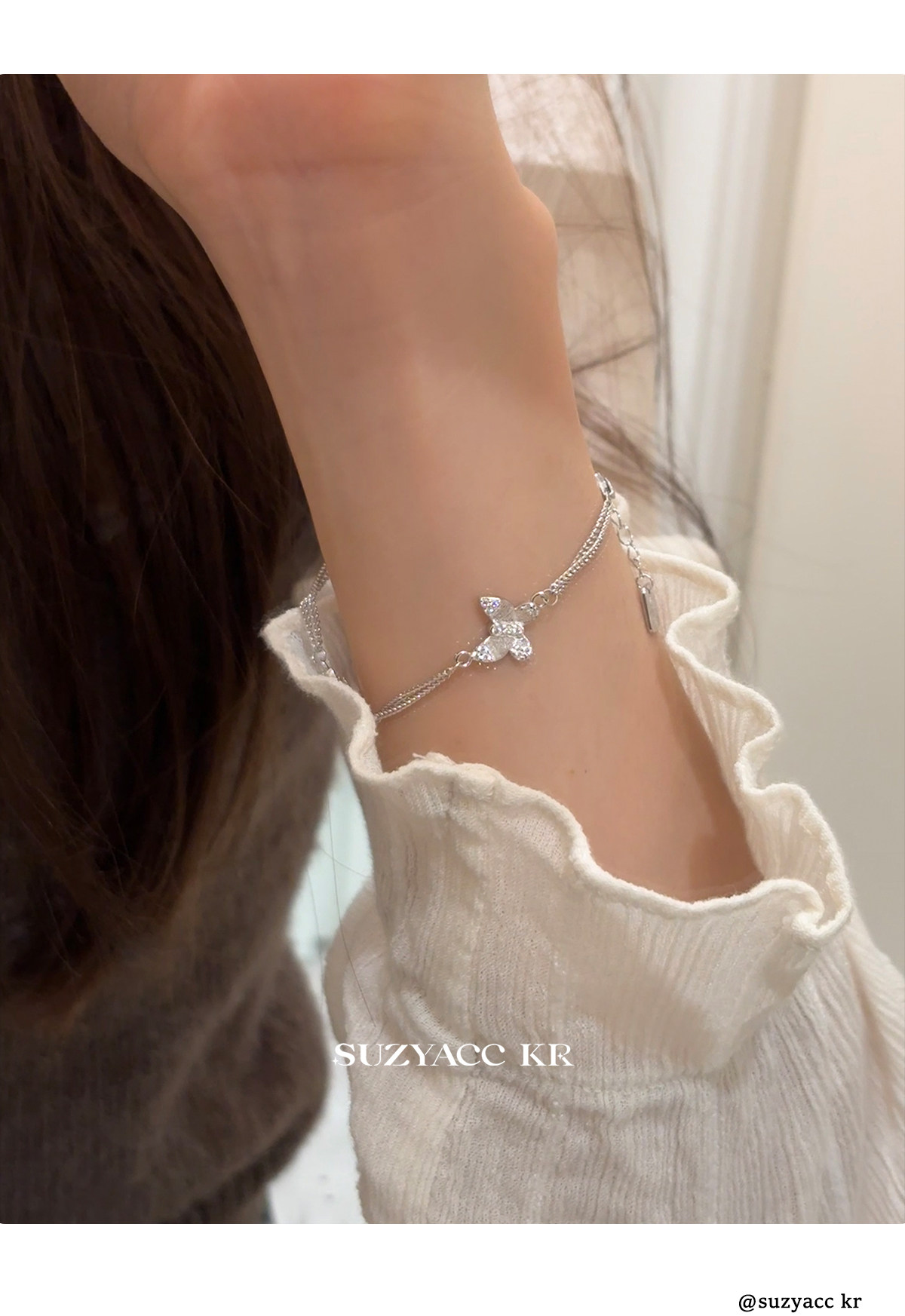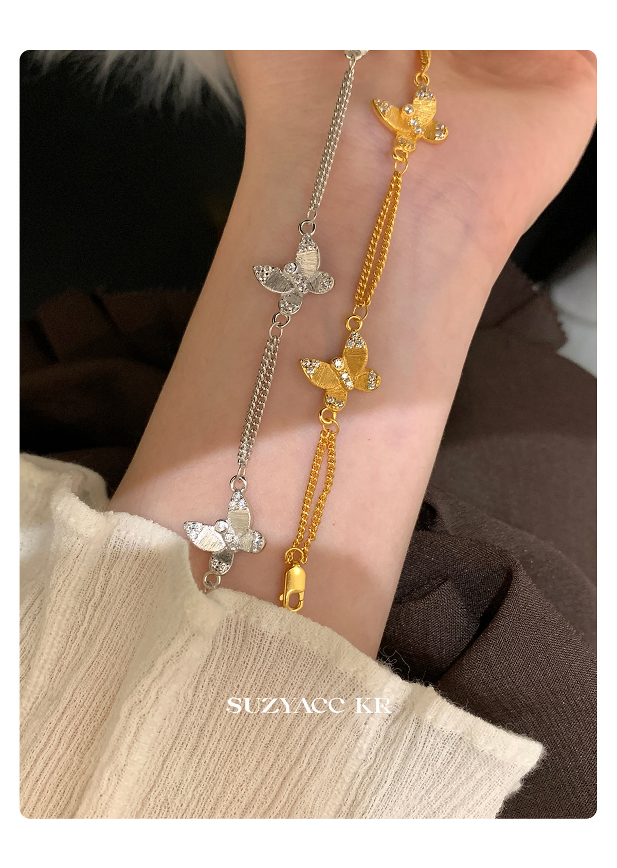 Suzyacc Kr Pure Silver Jewelry, Finely Crafted with Diamonds, Brushed Butterfly Bracelet, Light Luxury Niche Design, Heavy Craftsmanship Hand Accessory