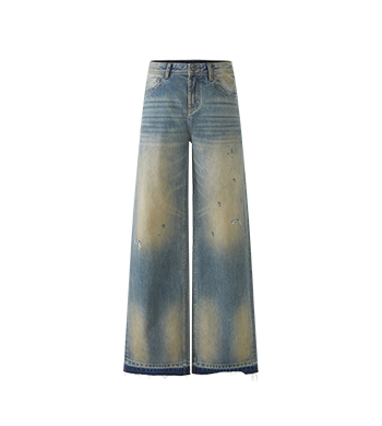 同时保持棉布的耐用性和立体感 水洗蓝 清新中带着做旧的复古韵味 采用低腰宽松直筒版型