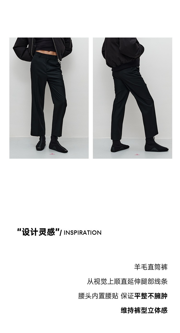 Filgood25 Autumn 100% Wool Black Cropped Dress Pants Straight Fit Slimming Item Fg04P15