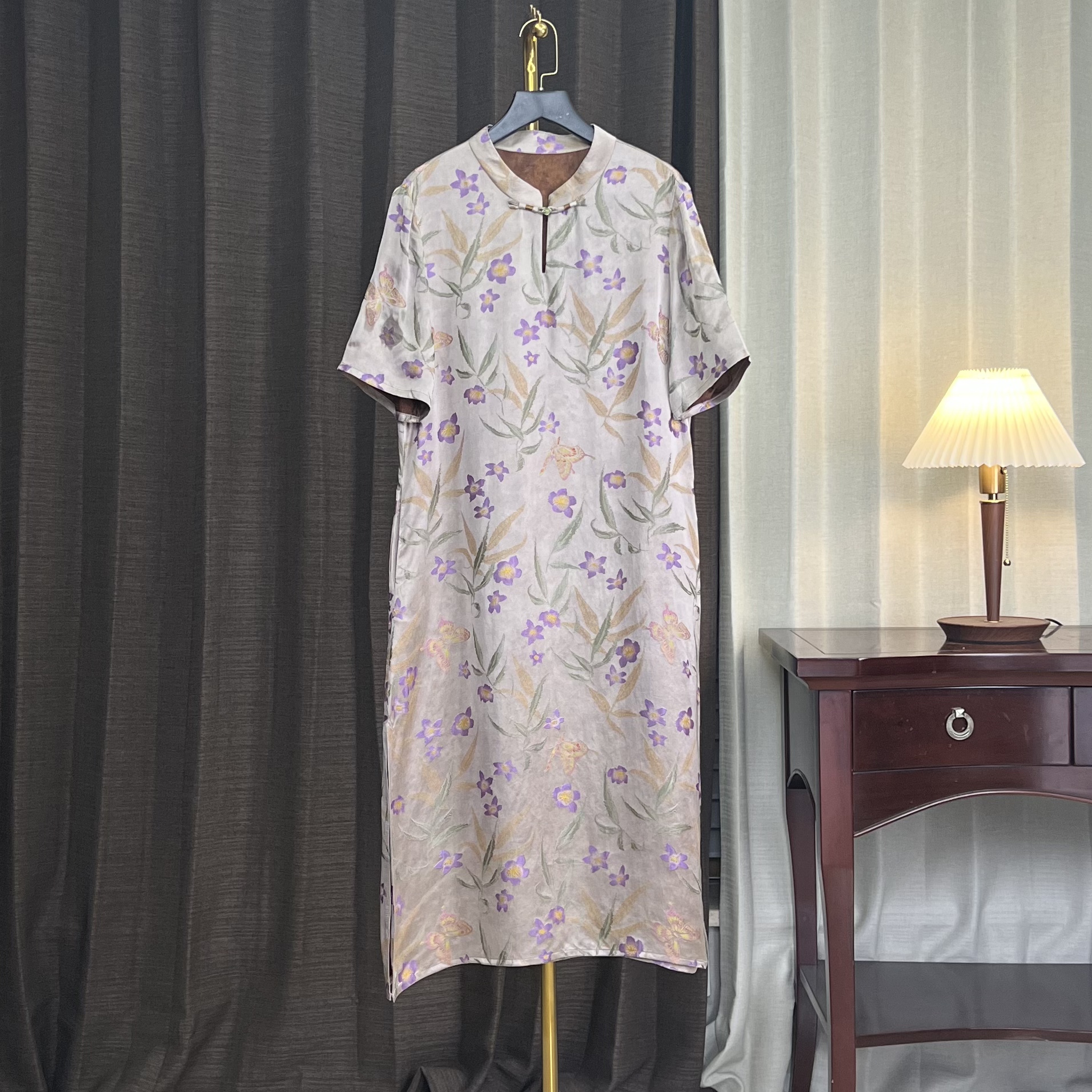 [2660] pink butterfly flower rhyme new Chinese Xiangyun yarn Butterfly Love flower pattern plate buckle Dress