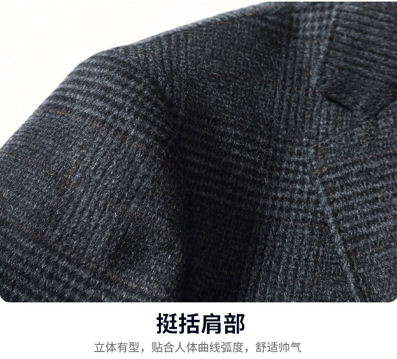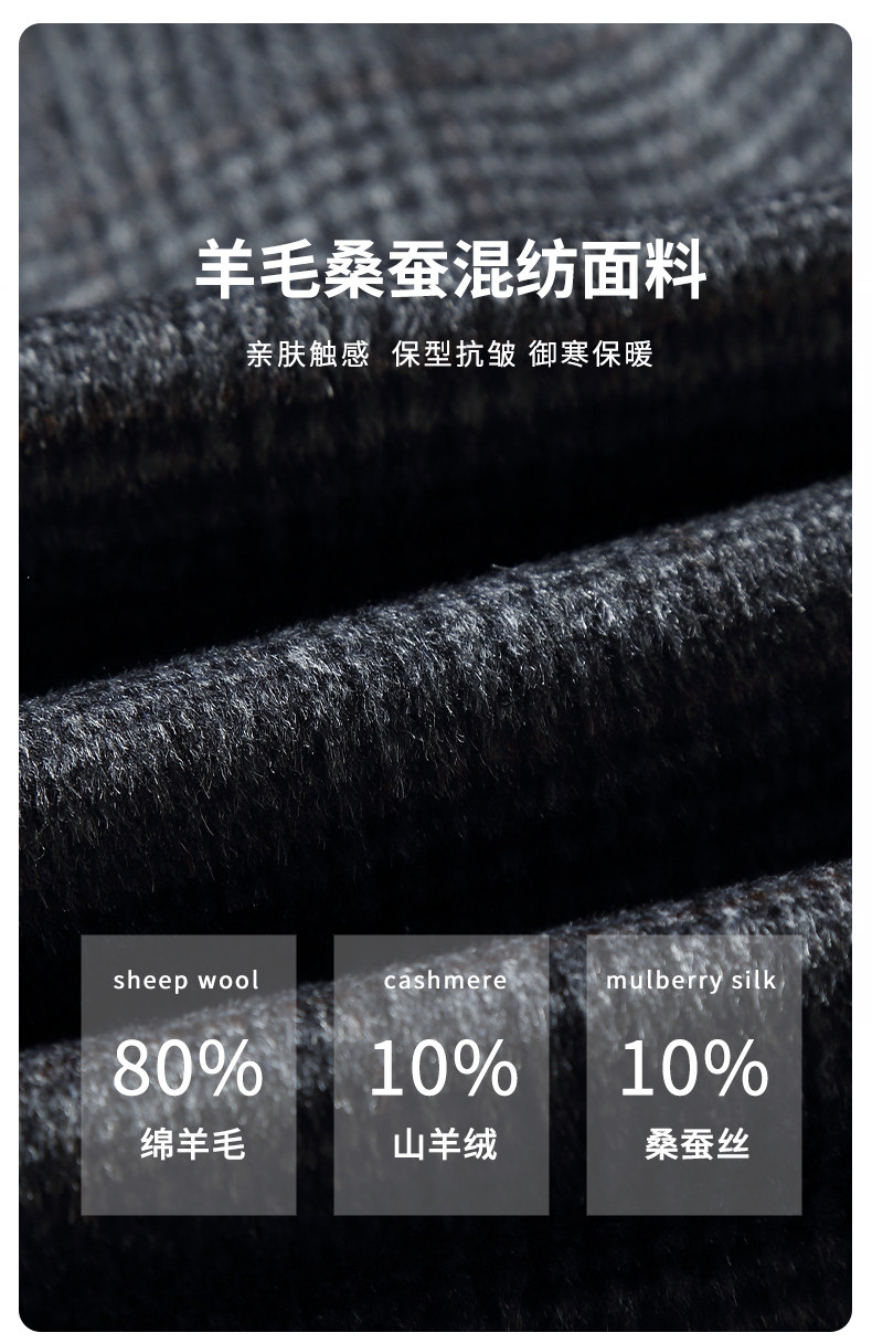 [Goat Cashmere + Mulberry Silk] High-End Cashmere Coat for Men, Mid-Length, Suit Collar, Plaid, Slim-Fit Wool Jacket