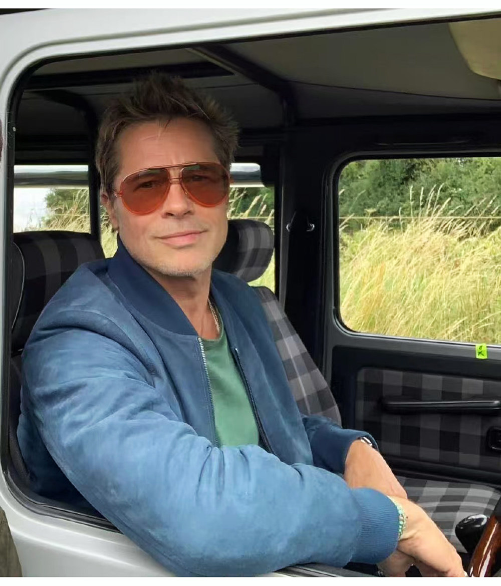 Brad Pitt Style Leather Jacket, Goatskin Suede Flight Jacket, Extreme Racing Suede Genuine Leather Baseball Jacket
