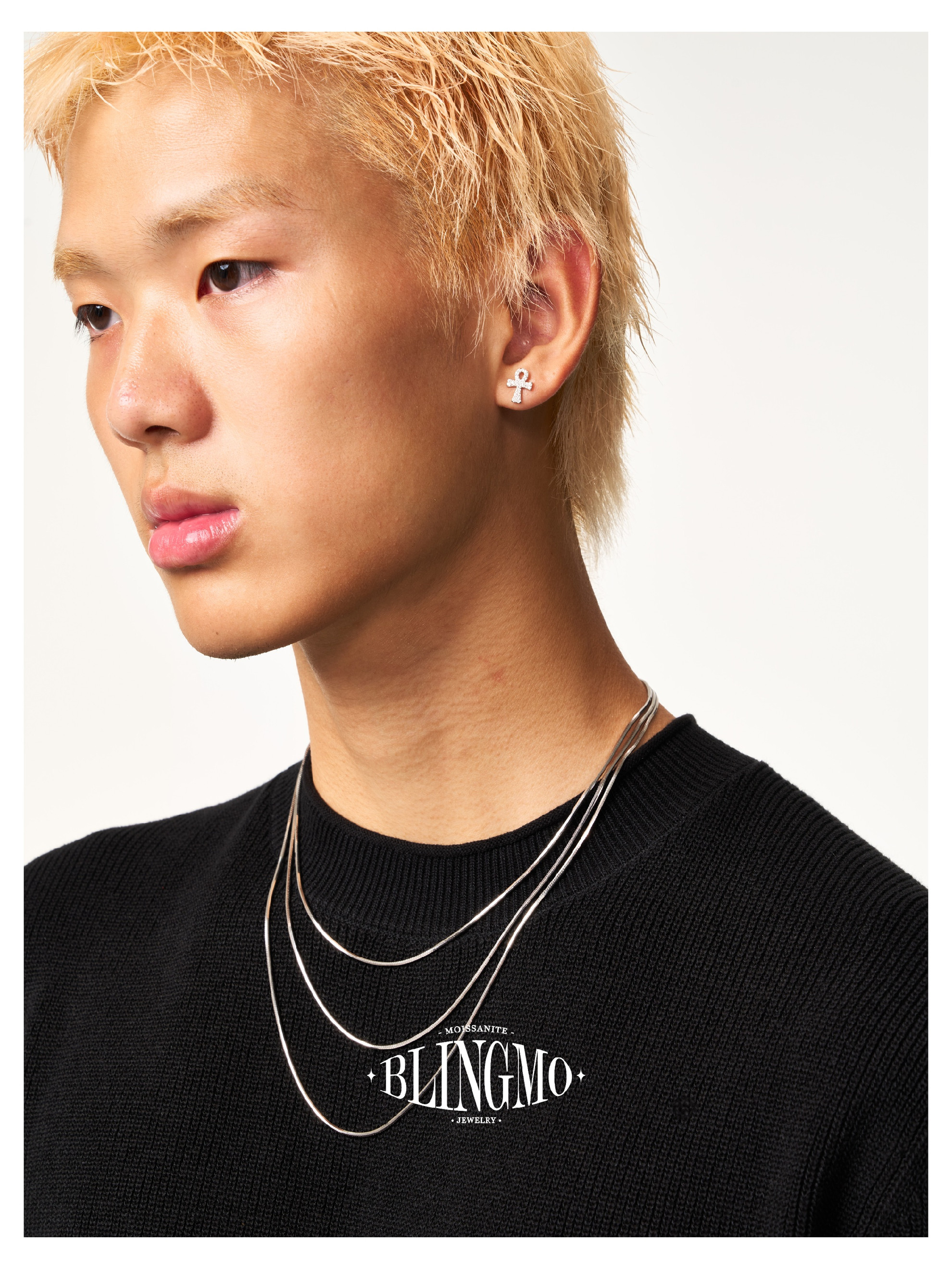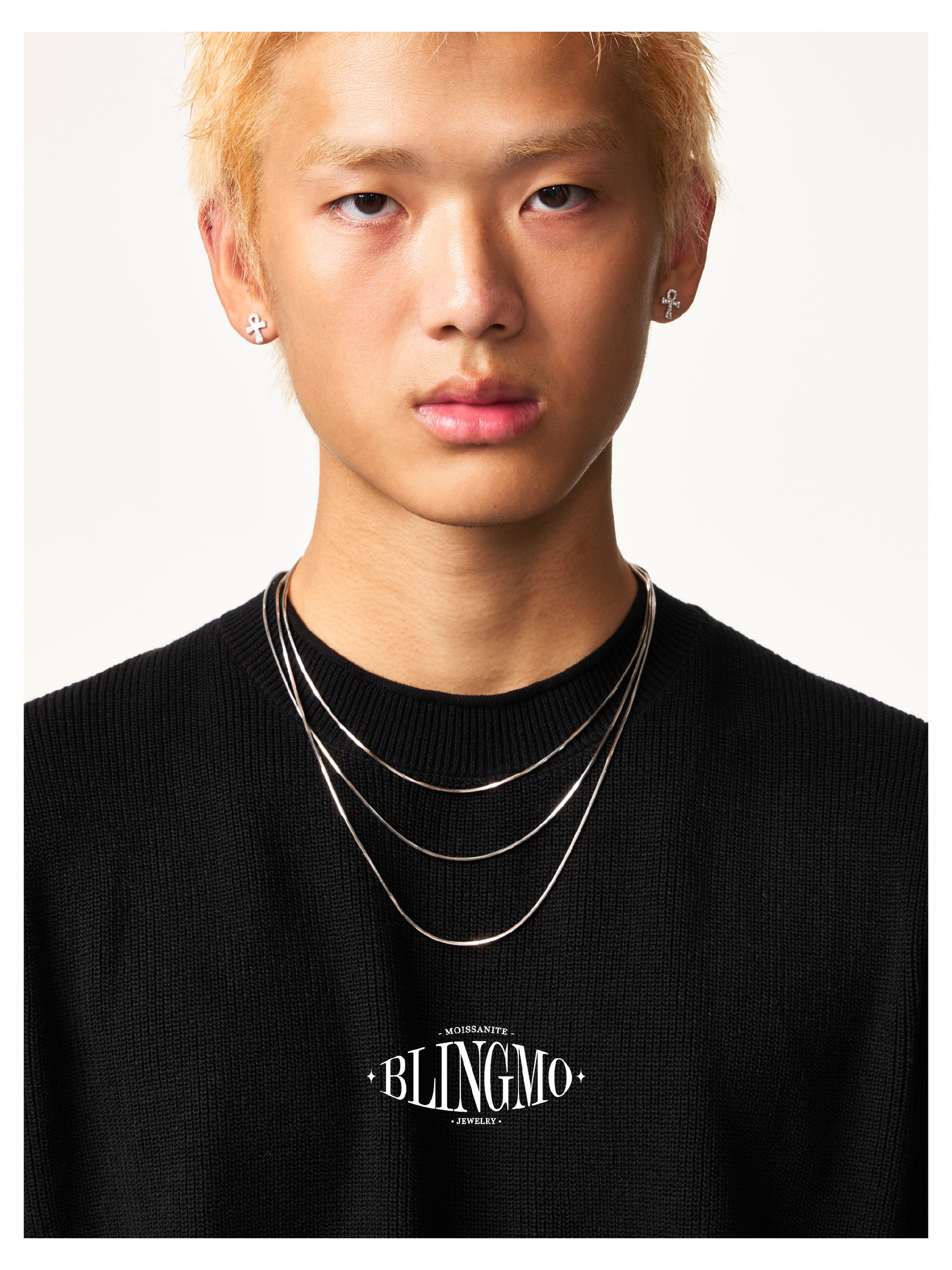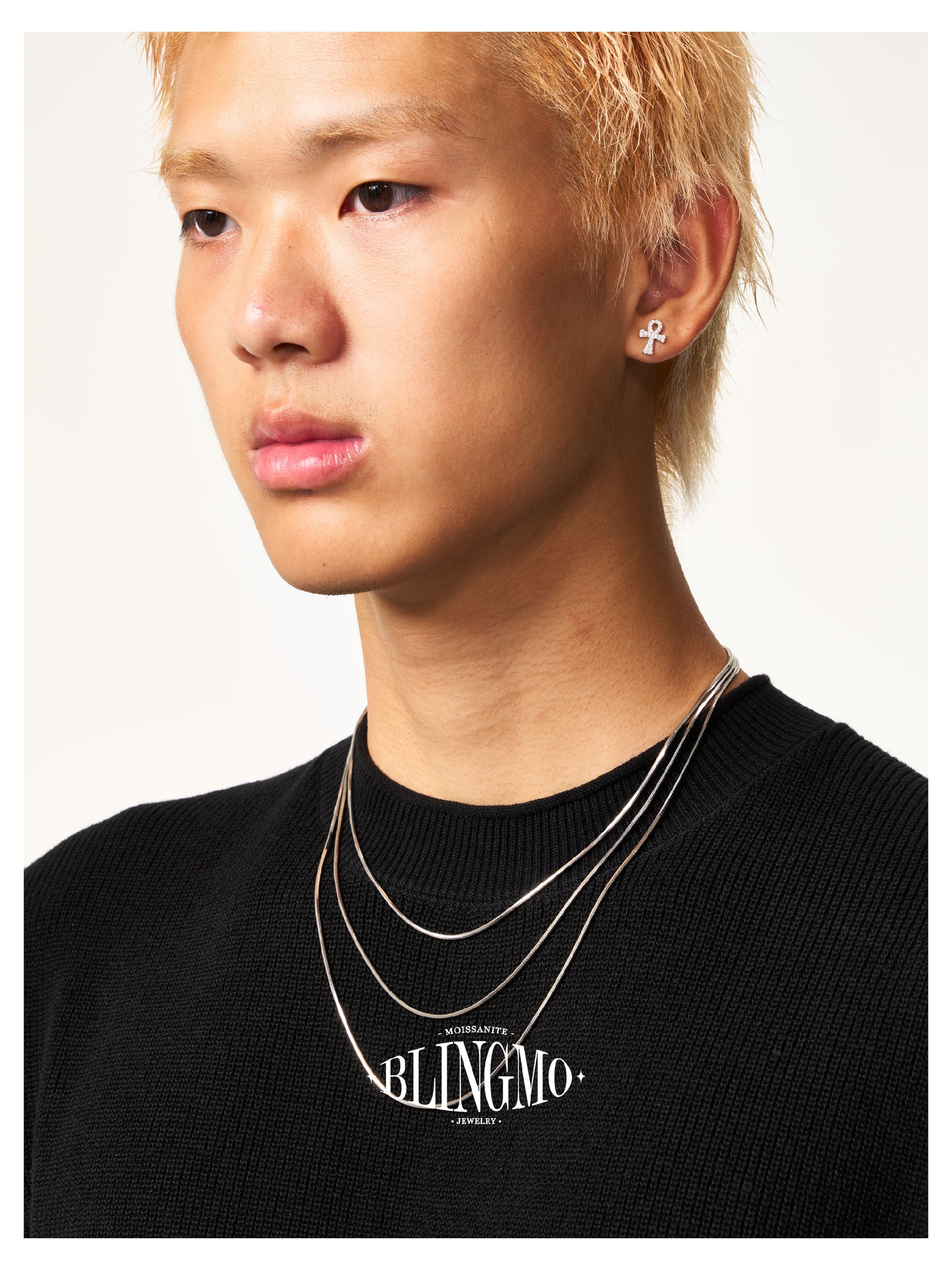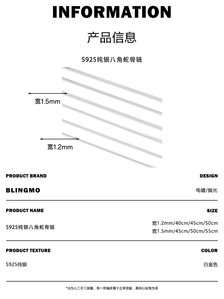 Blingmo S925 Sterling Silver Thick Octagonal Snake Bone Chain for Men and Women, Layered Sweater Chain, Men's Plain Chain with a High-End Feel