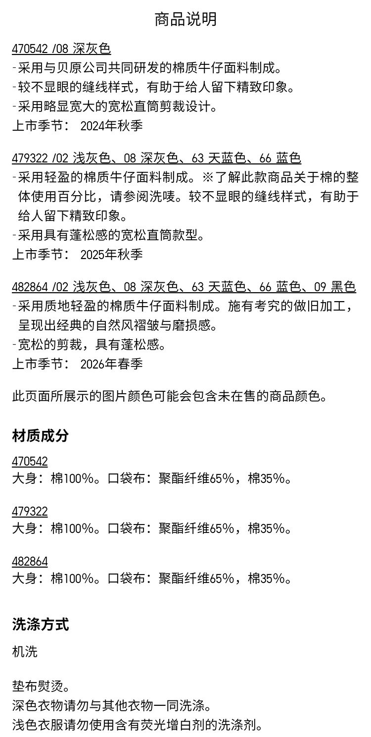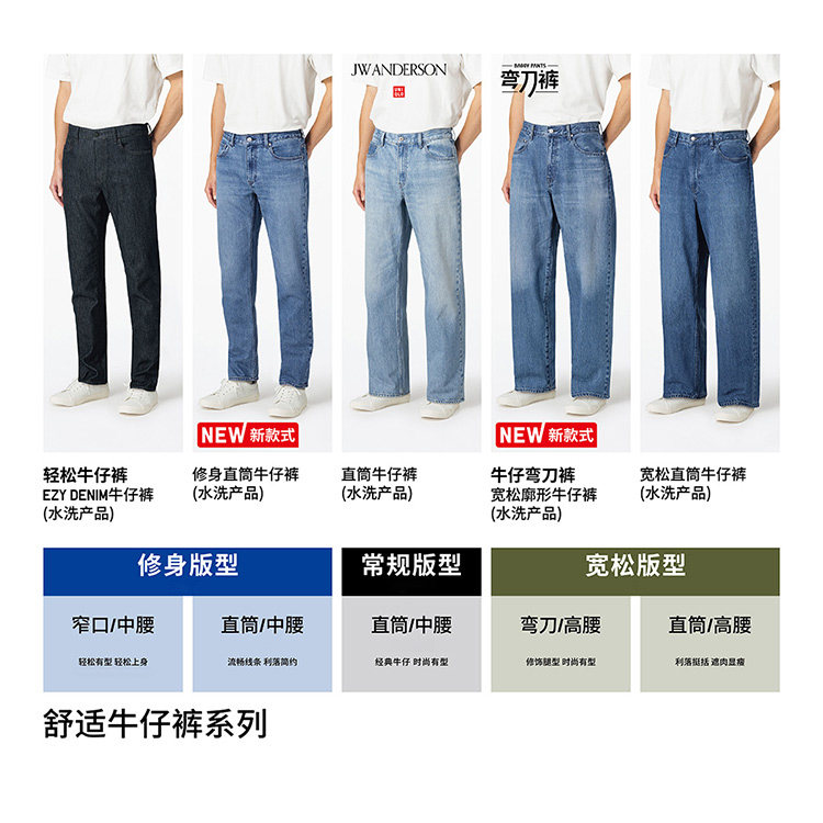 Uniqlo Men's and Women's Loose Straight Jeans/Washed Casual Denim Pants 482864 479322