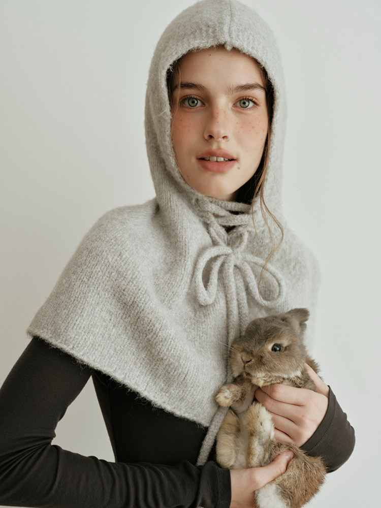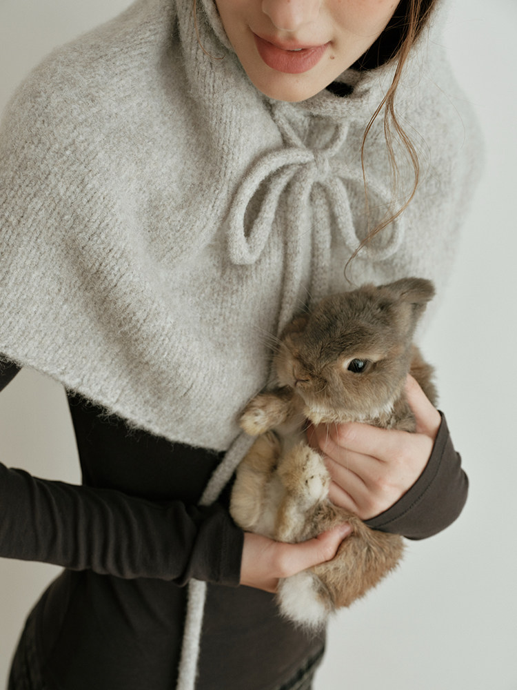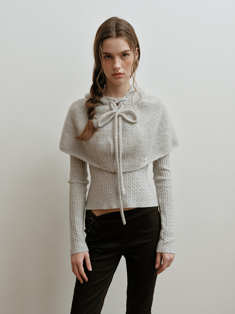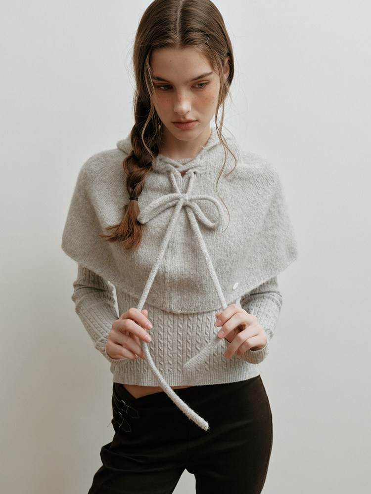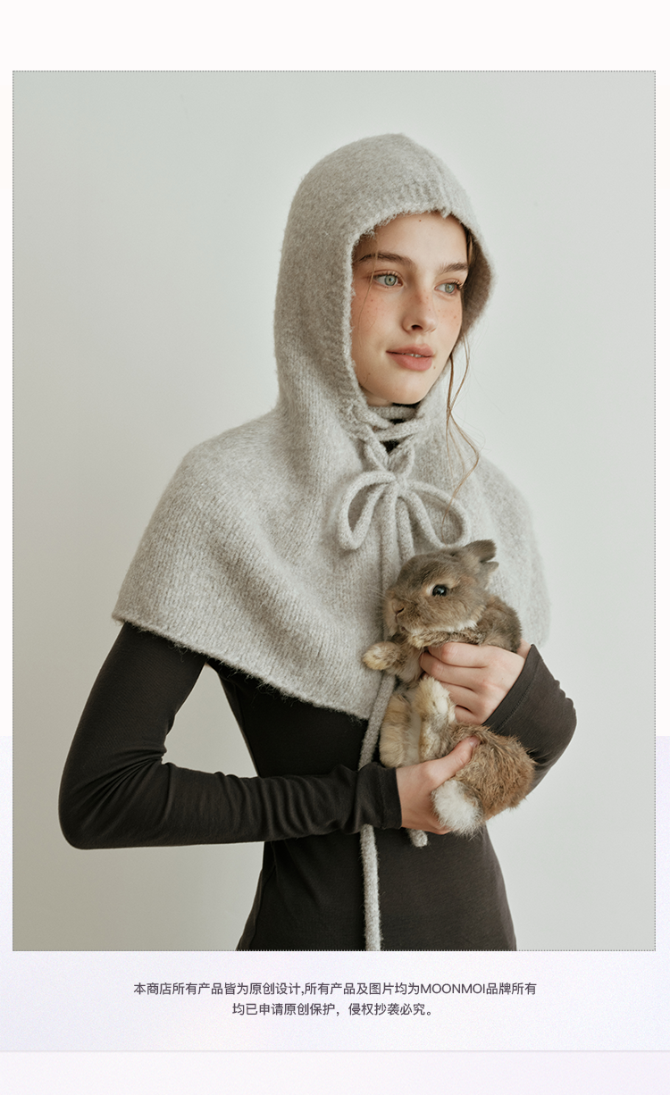 [Same Style as Zhao Lusi] Moonmoi | Atmospheric Layering, Wool-Blend Lazy Knit Tie-Up Cape