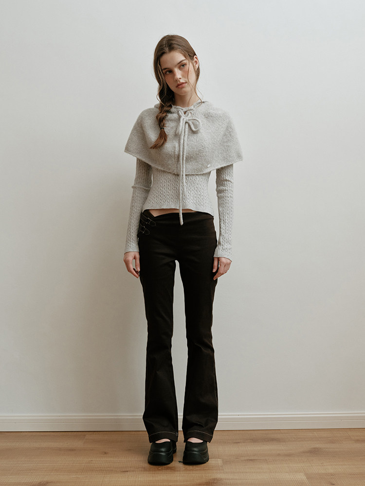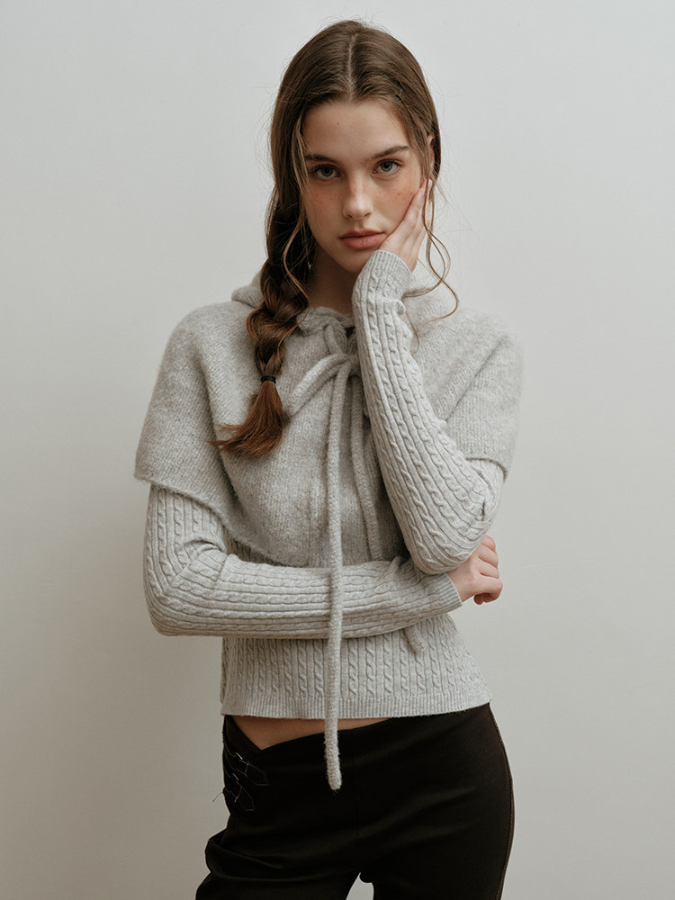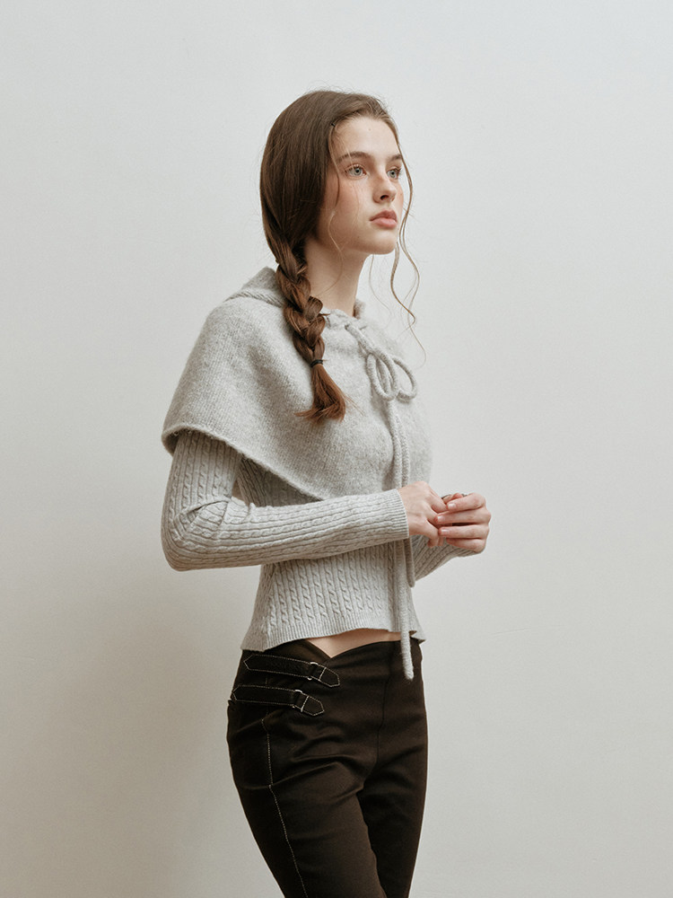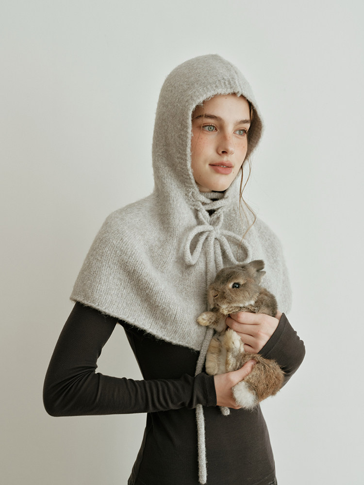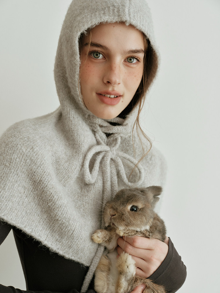 [Same Style as Zhao Lusi] Moonmoi | Atmospheric Layering, Wool-Blend Lazy Knit Tie-Up Cape