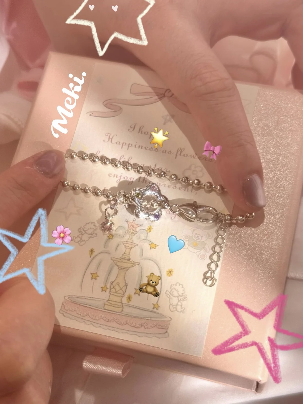 Meki Sterling Silver Bracelet Flower Language Women's Niche style Design diy Easiest for match Stacked Adjustable Sweet Elegant Fairy Style