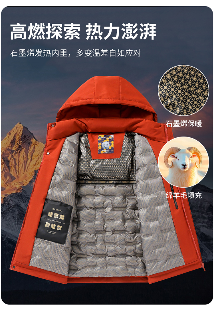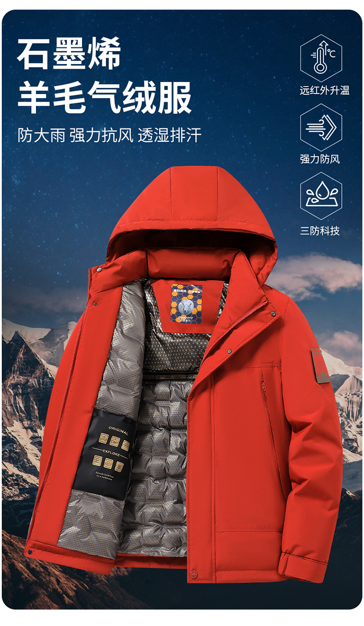 [Graphene thickened Extremely Cold Clothing] Men and Women with Wool Lock Temperature Five-prevention parka Outwear -2512