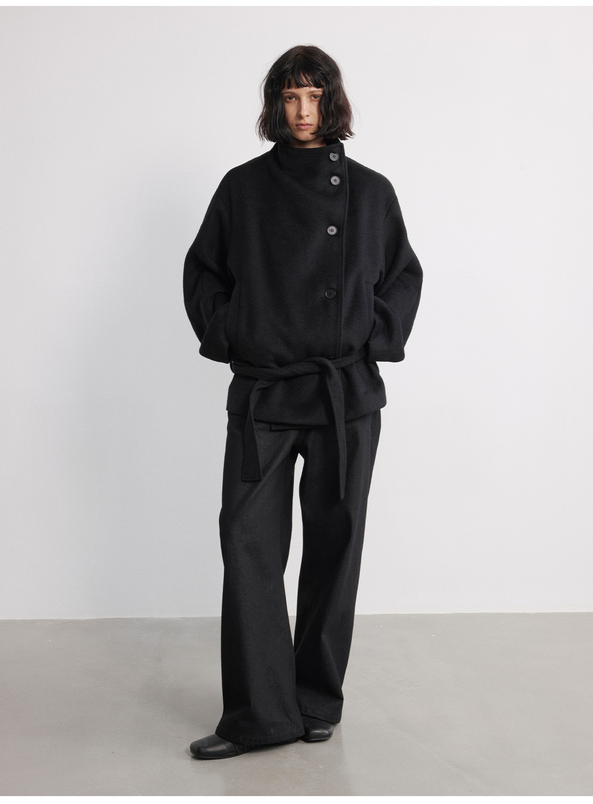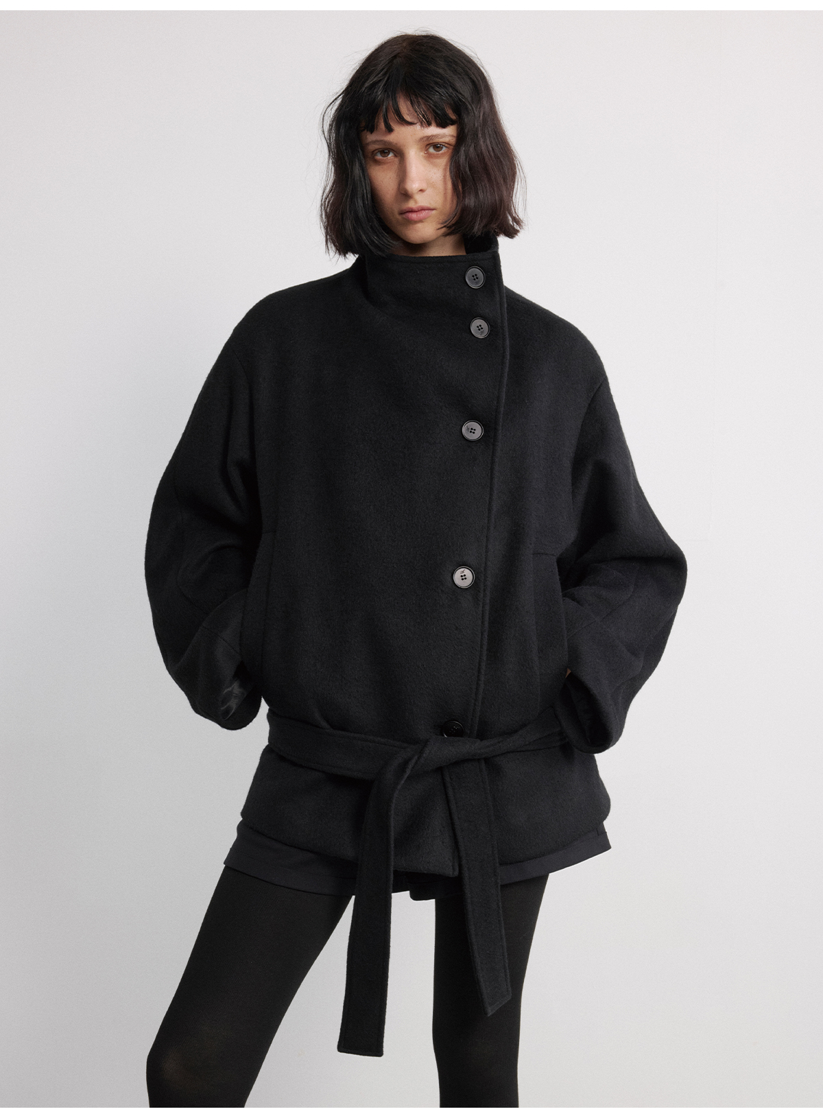 Jcaesar Women Lace-Up Short Woolen Coat with Detachable Shoulder Pads, Austrian Wool Blend Jacket