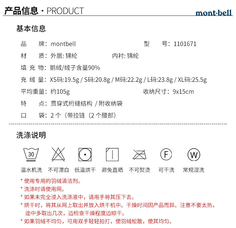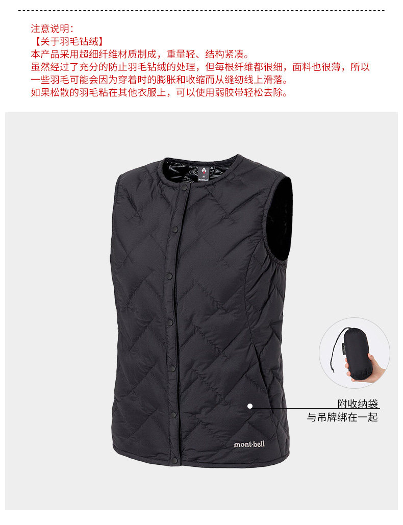 Montbel Japan 2025 Autumn/Winter New Outdoor Sports Casual Warm Women's down Vest