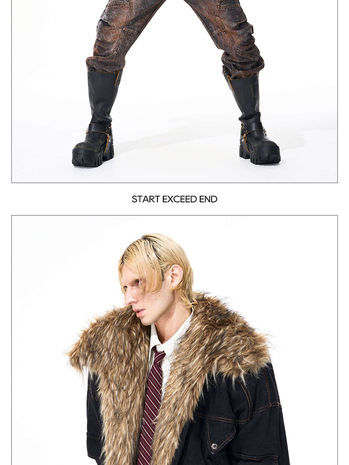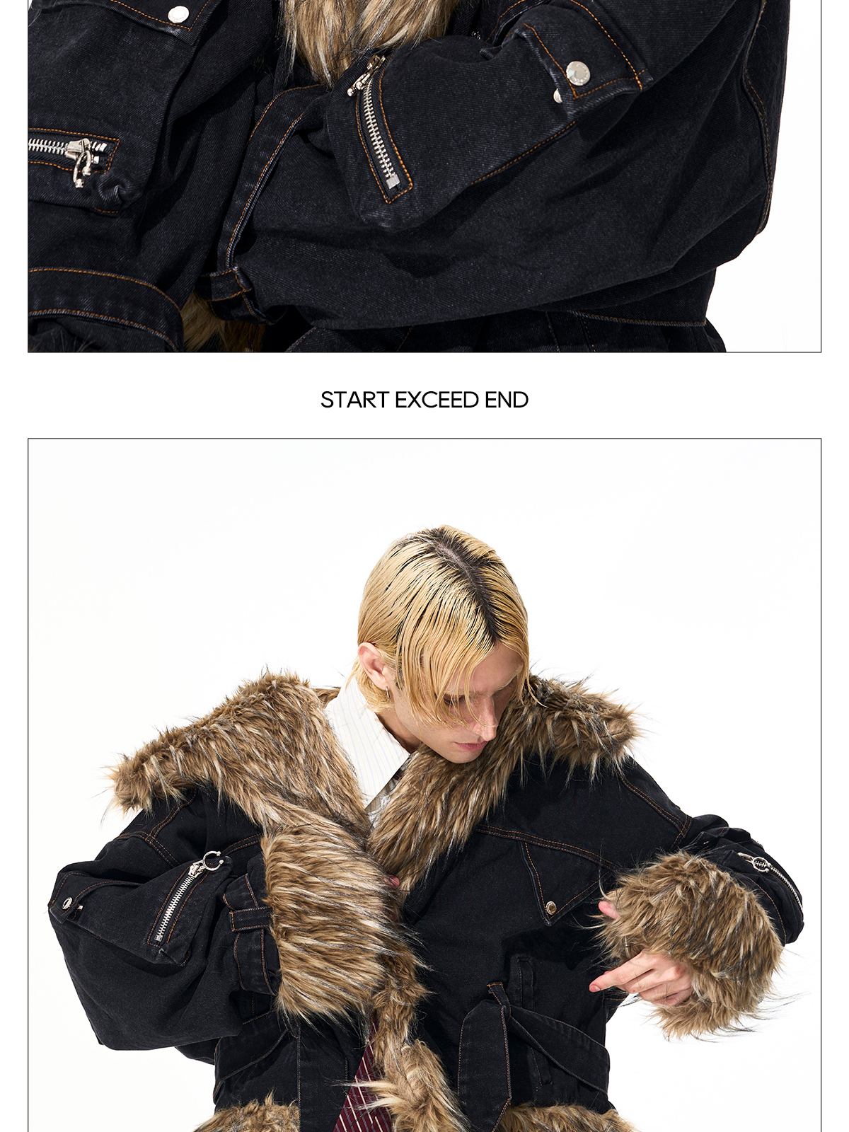 Startexceedend High-End Quilted Fur Patchwork Denim Jacket Men's Winter Silhouette Batwing Sleeve Jacket